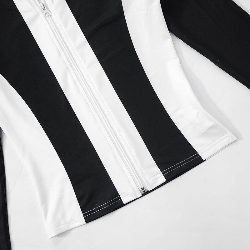 BKQU 2 Piece Tracksuit Casual Outfits Women Contrast Patchwork Long Sleeve Zip Crop Tops Legging Pants Sporty Matching Set 2025