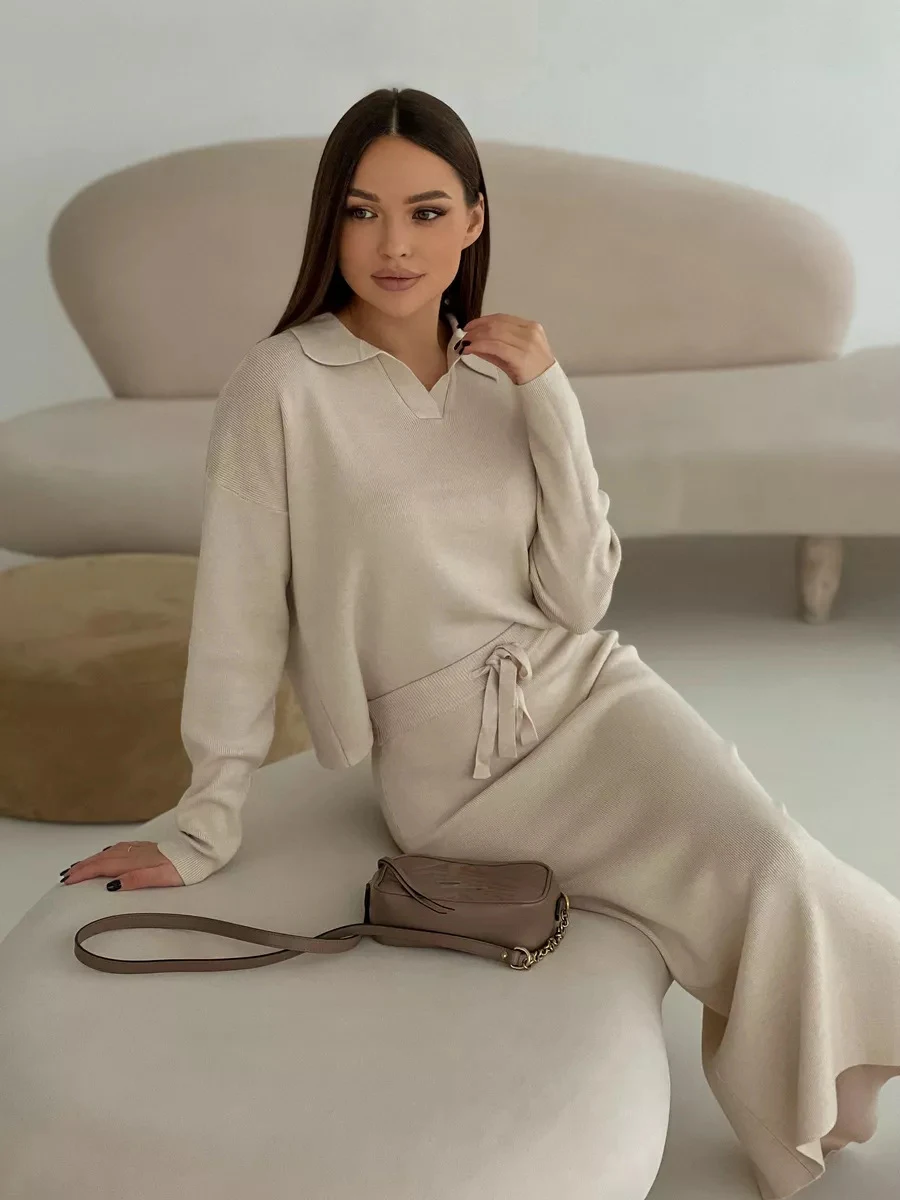 BKQU 2 Pieces Lapel Pullover Sweaters Long Skirt Suit Elegant Solid Knitted Sets For Women Bodycon Autumn Winter Party Outfits