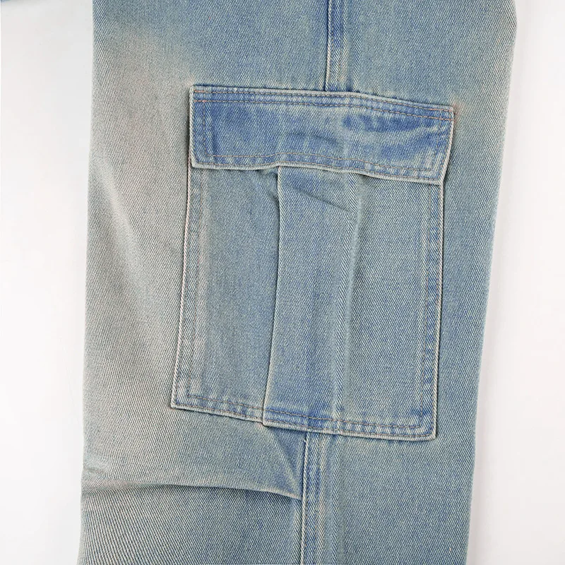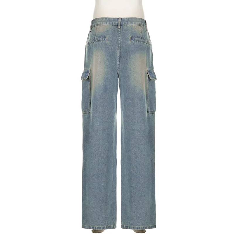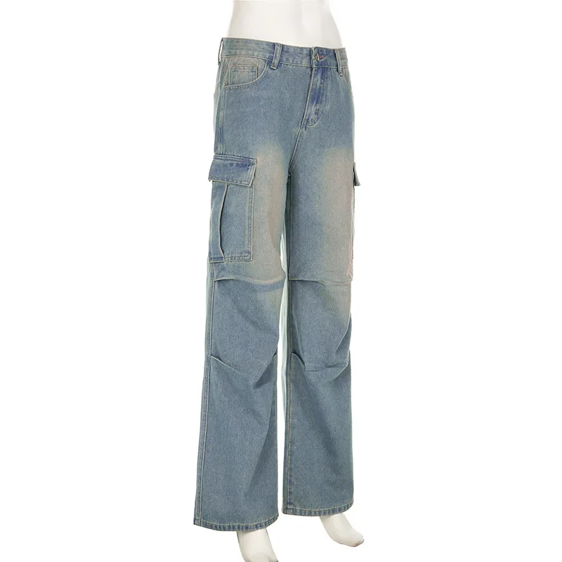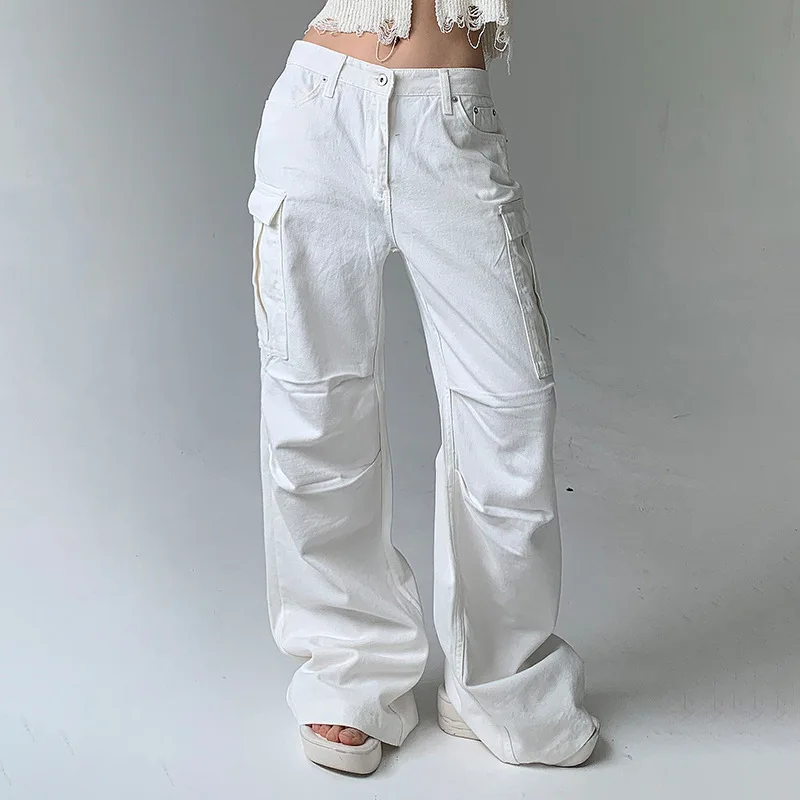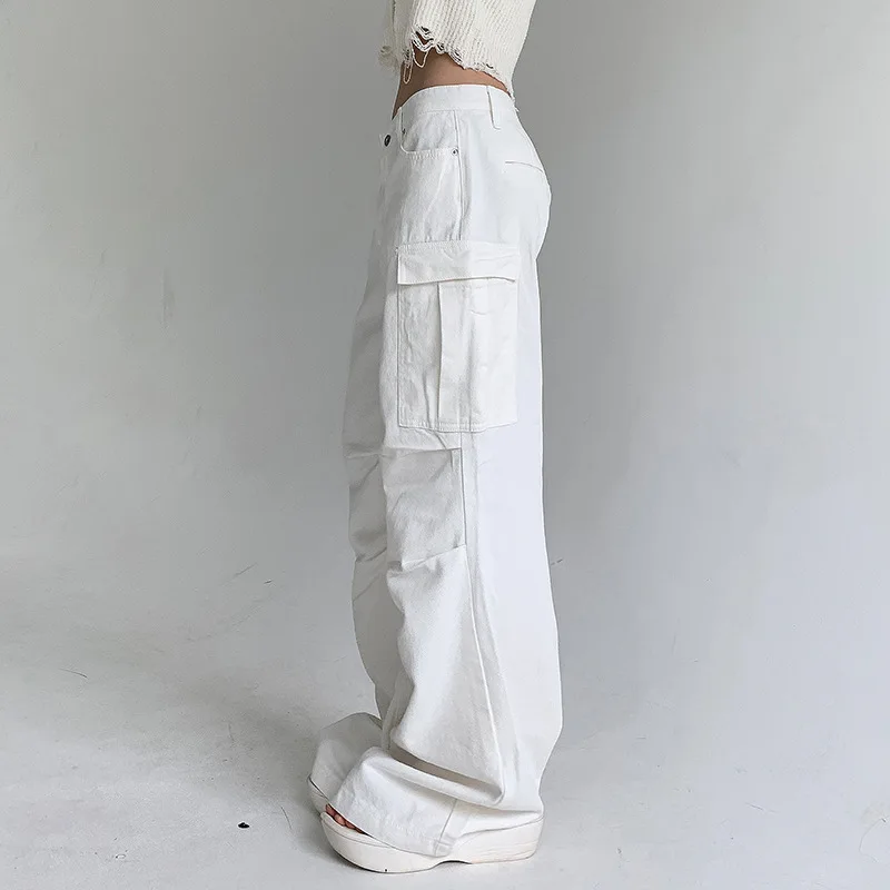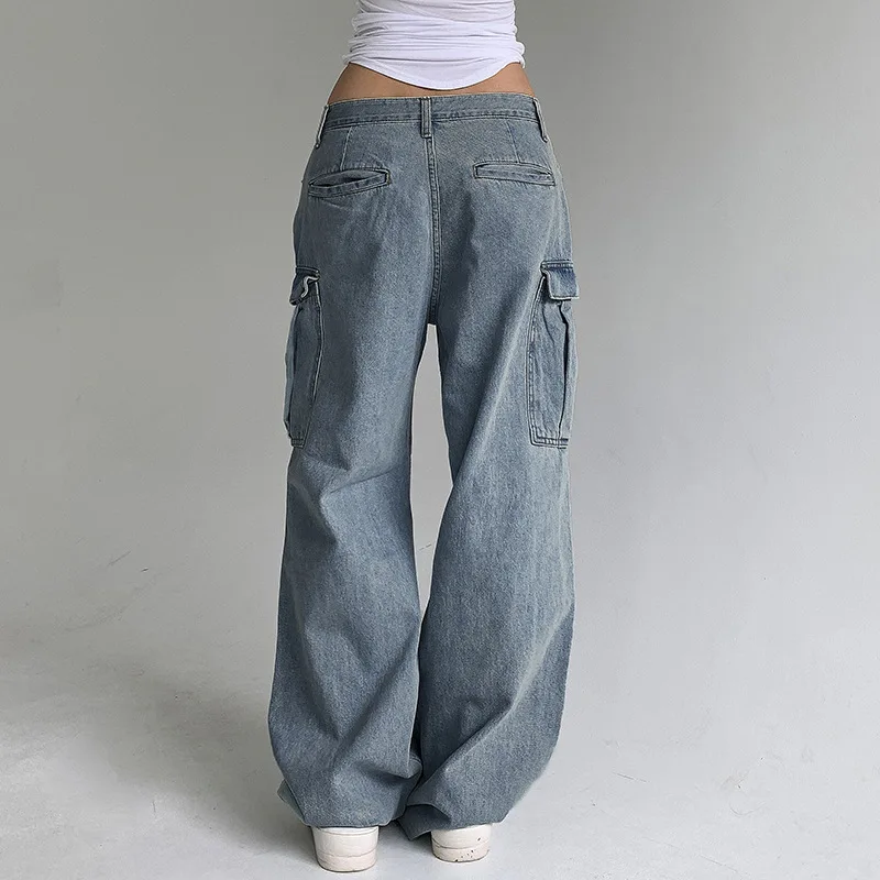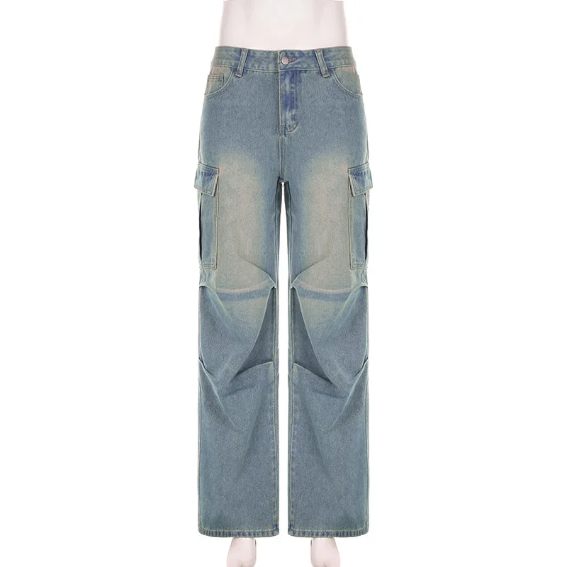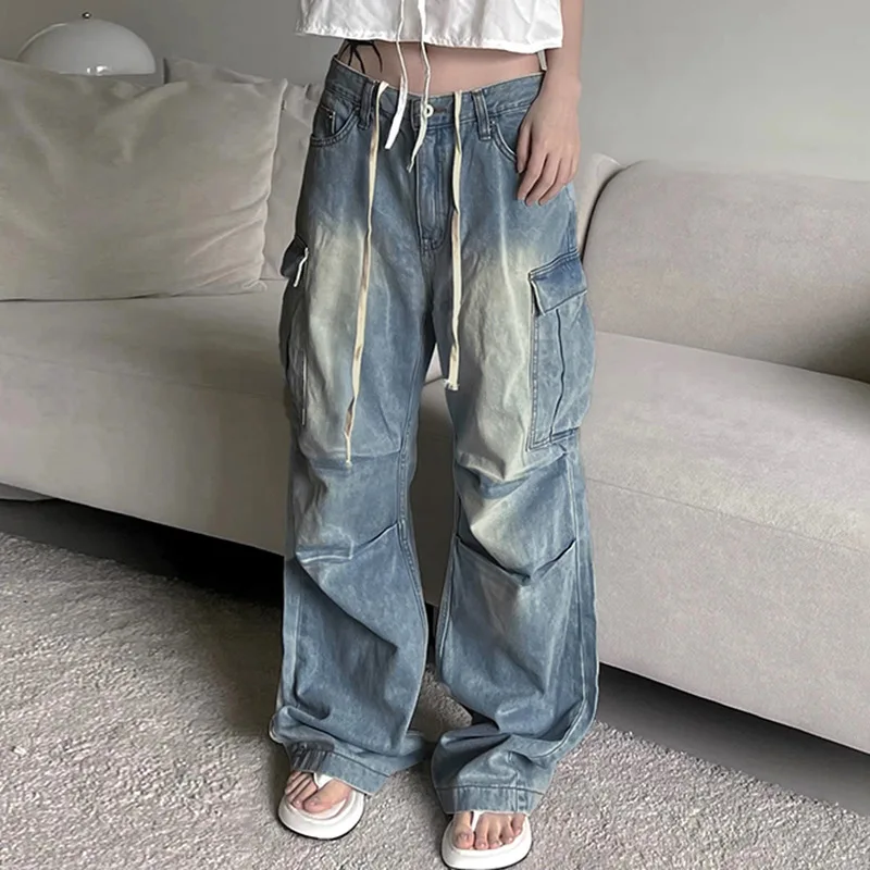 BKQU 2023 Baggy Wide Leg Cargo Pants Women Casual Oversized Pockets Low Waist Straight Jeans Streetwear Hippie Joggers Trousers