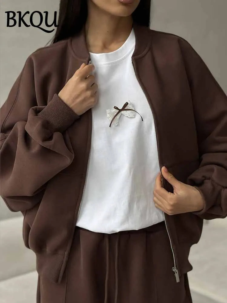 BKQU 2025 Summer Oversize T-shirt Women Bow Three-dimensional Decorative Loose Fashion O Neck Tees Casual Y2K Female Street Tops