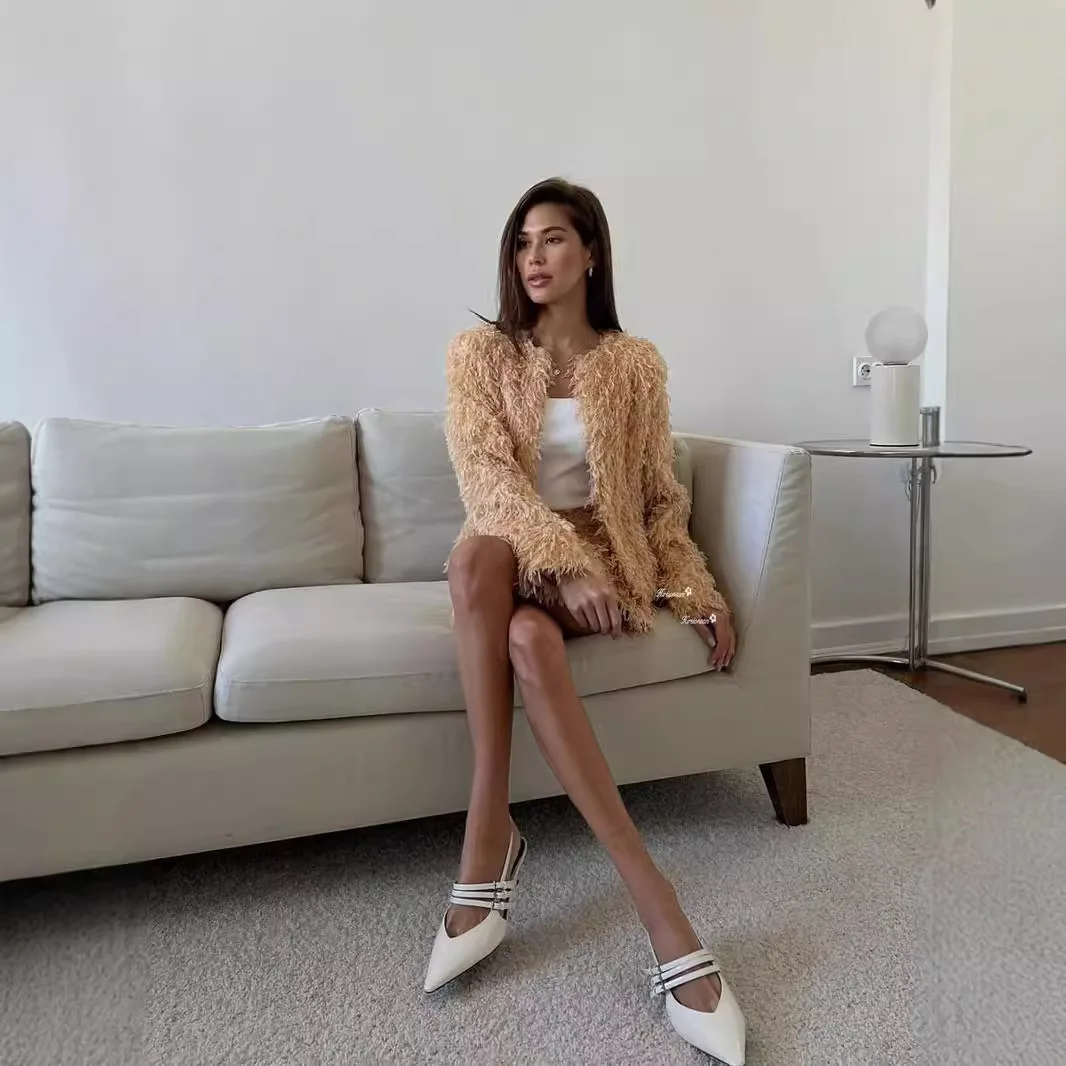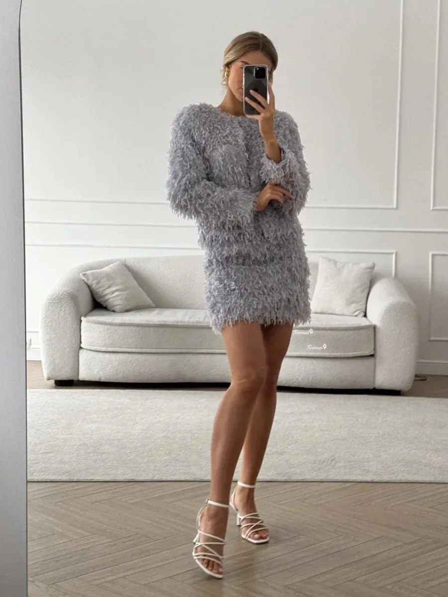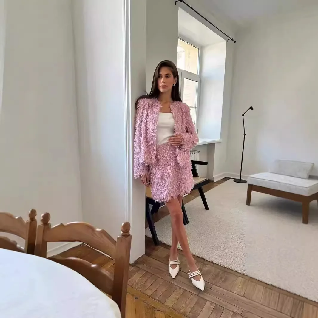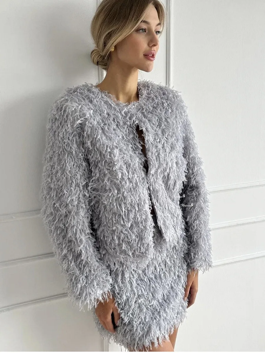 BKQU Autumn Skirt Two Piece Sets Women Long Sleeve Cardigan Coats and Straight Mini Skirts 2024 Winter Elegant Party Outfits