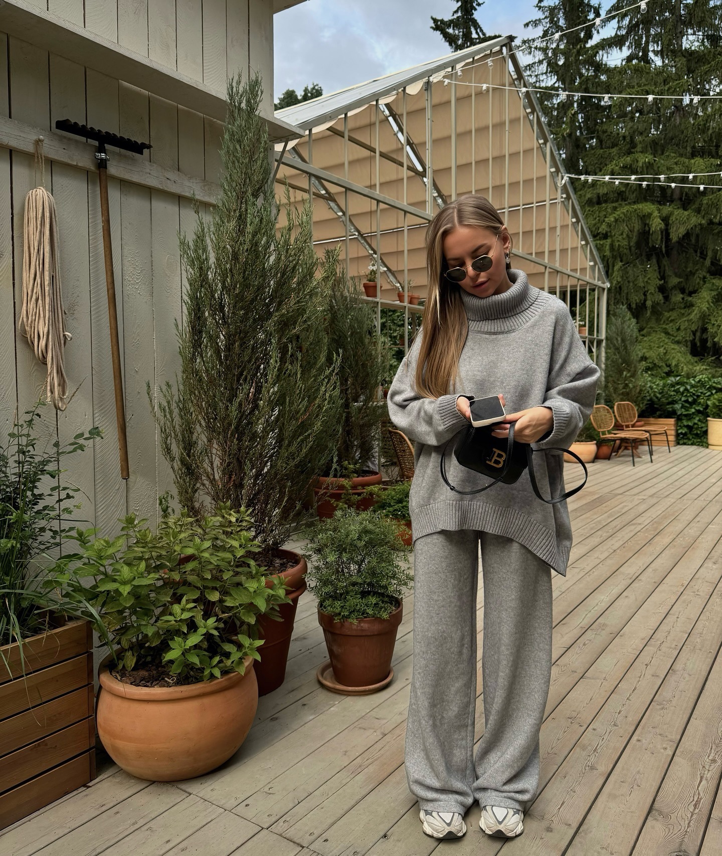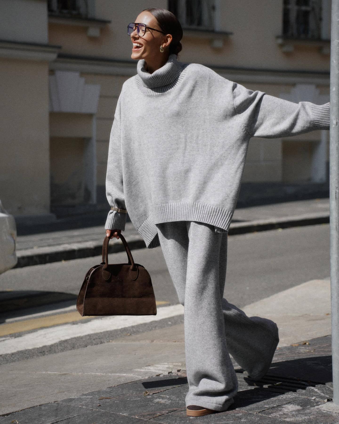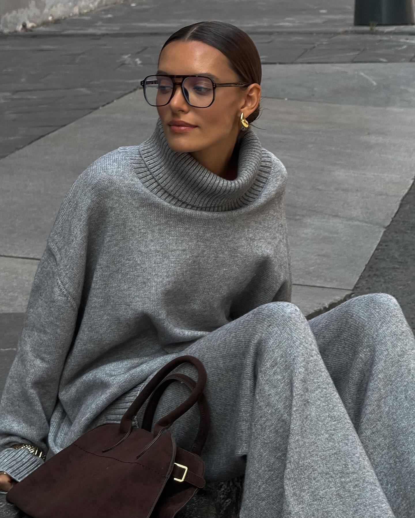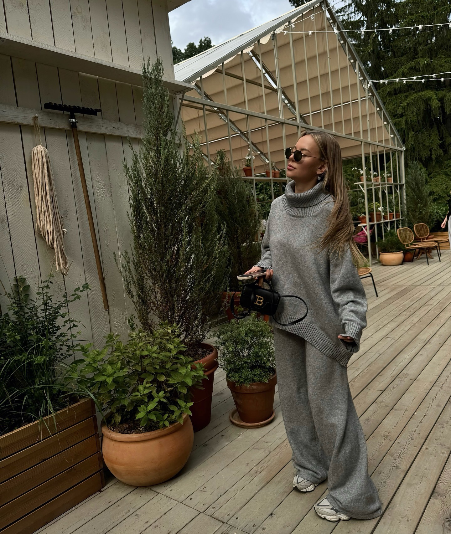 BKQU Autumn Winter Knitted 2 Pieces Women Sets Turtleneck Sweater Wide Leg Pants Suit Commute Street Lady Warm Tracksuit Outfits