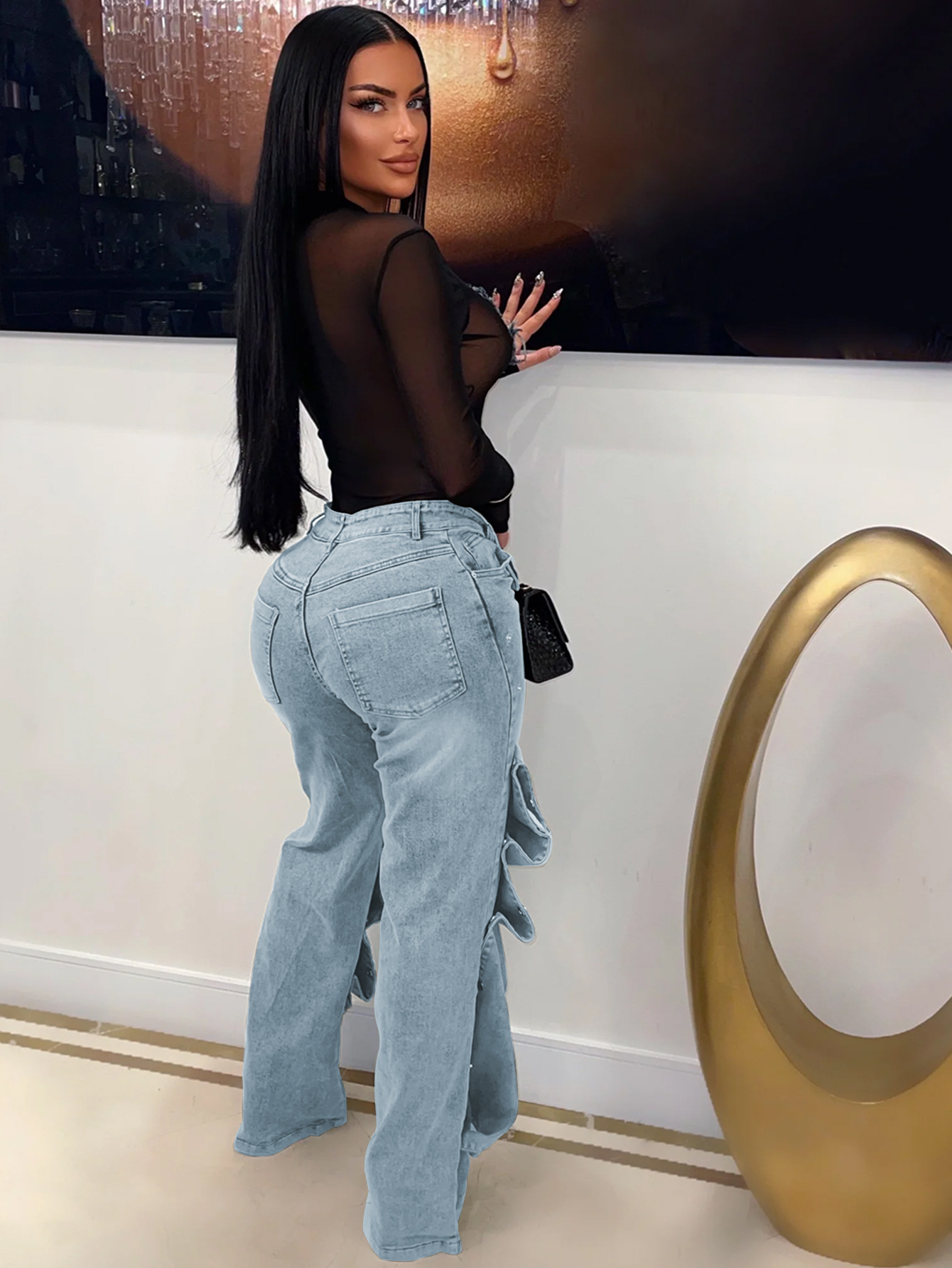 BKQU Cargo Detachable Buttons Straight Denim Pants Women Fashion Retro High Waist Streetwear Elastic Wide Leg Jeans Trouser 2025