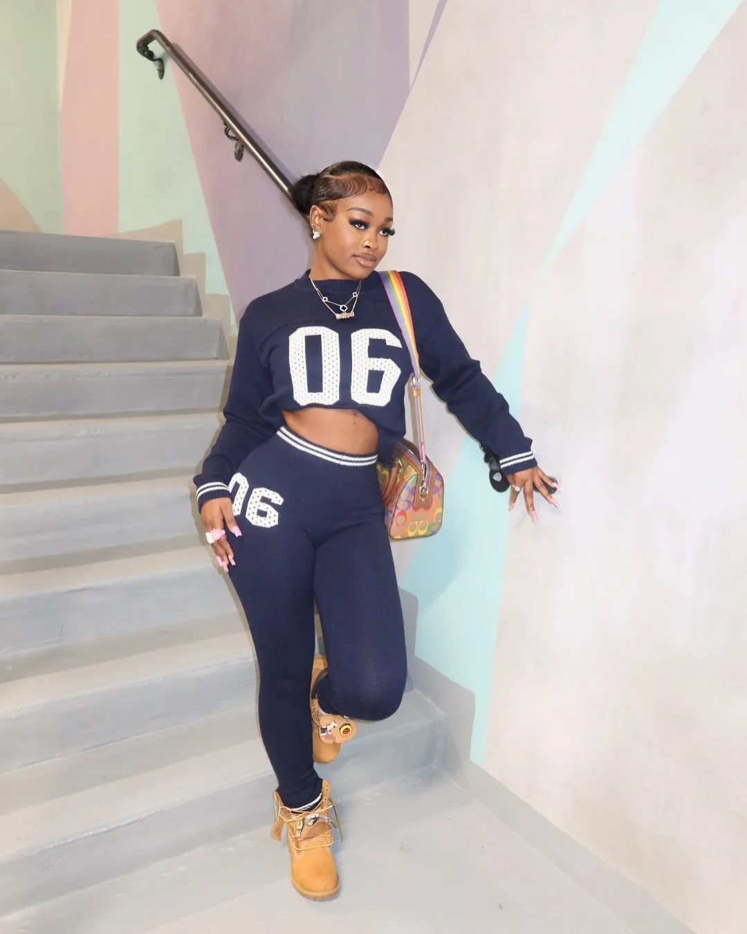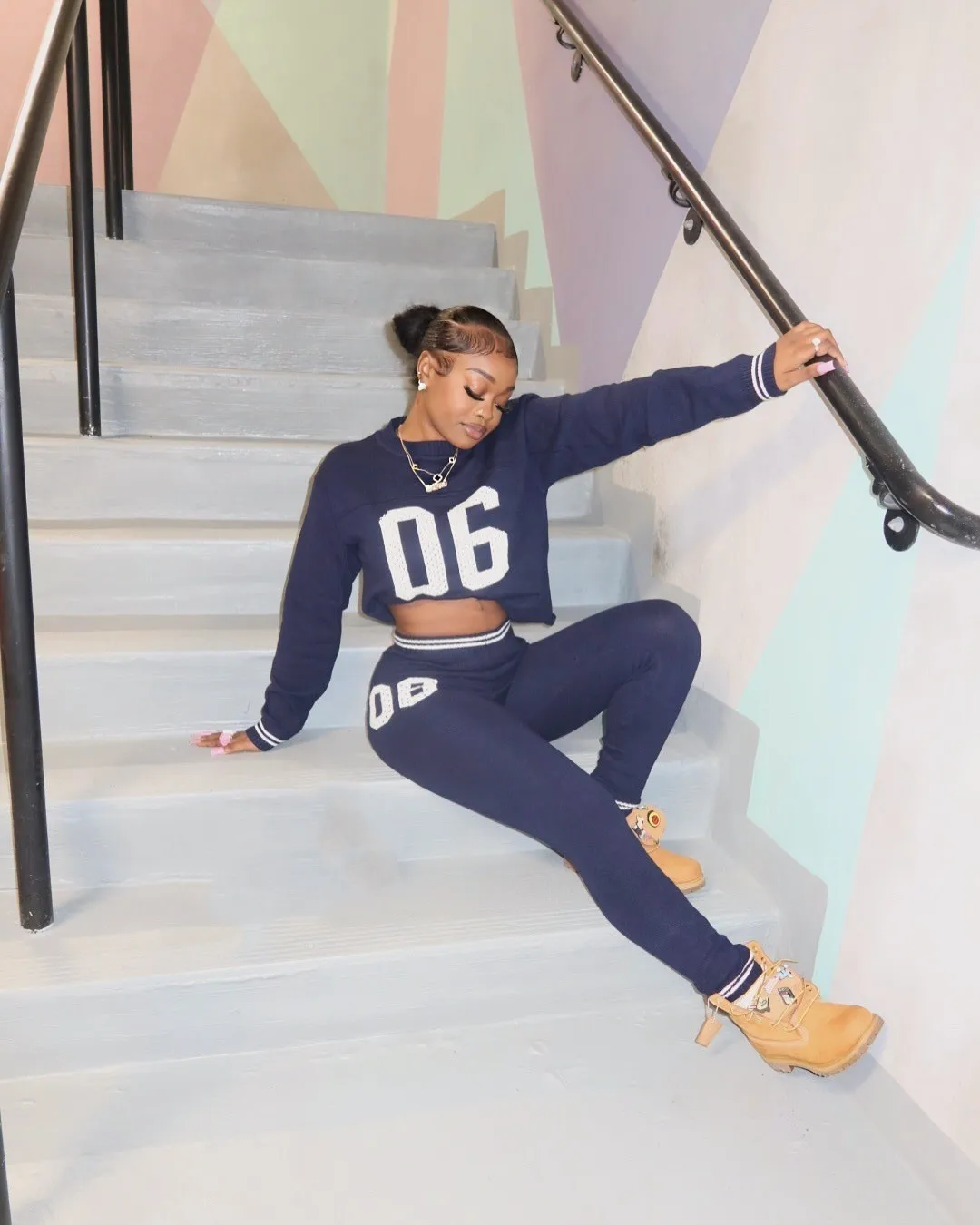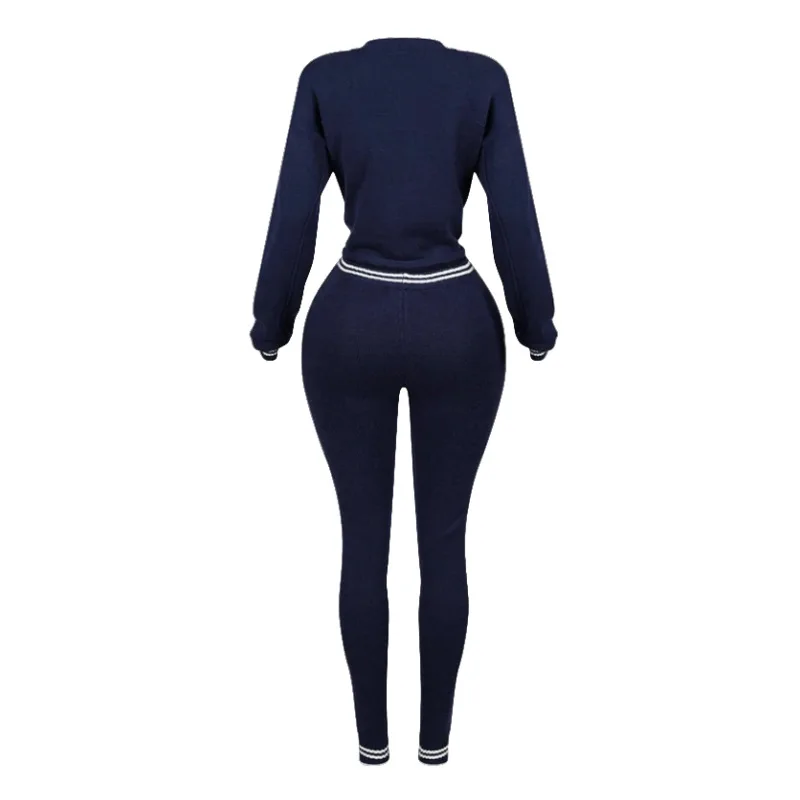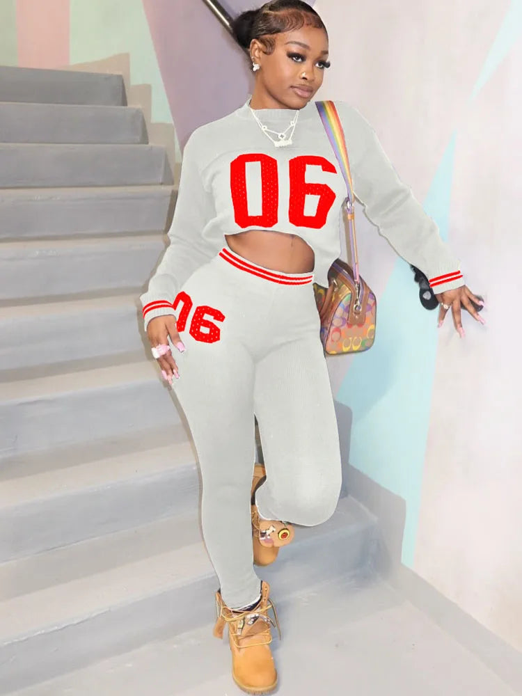 BKQU Casual Knitted Pants Set Women's Number Print O-Neck Long Sleeve Crop Sweater+Skinny Pants Stretch 2 Piece Sets Tracksuits