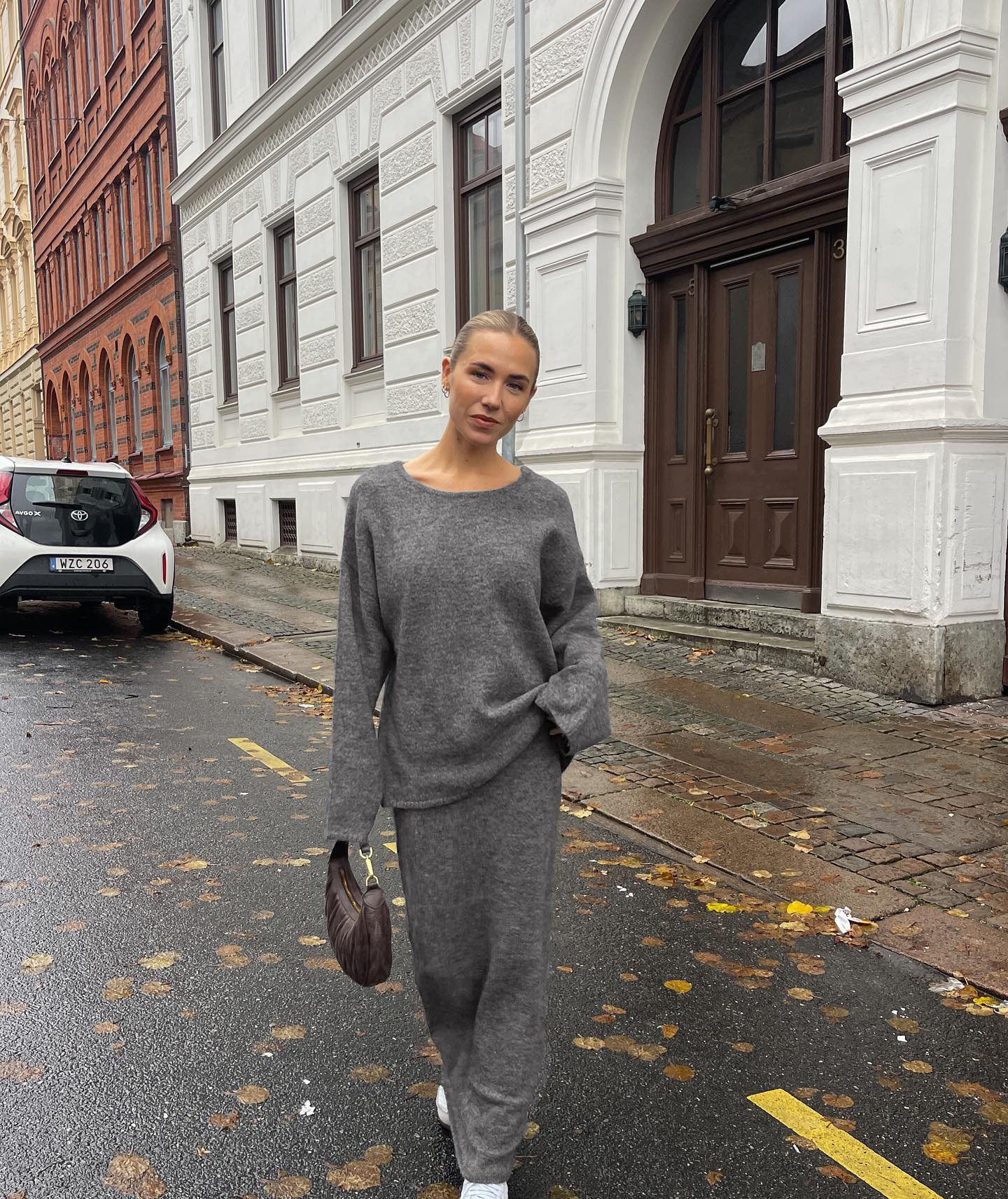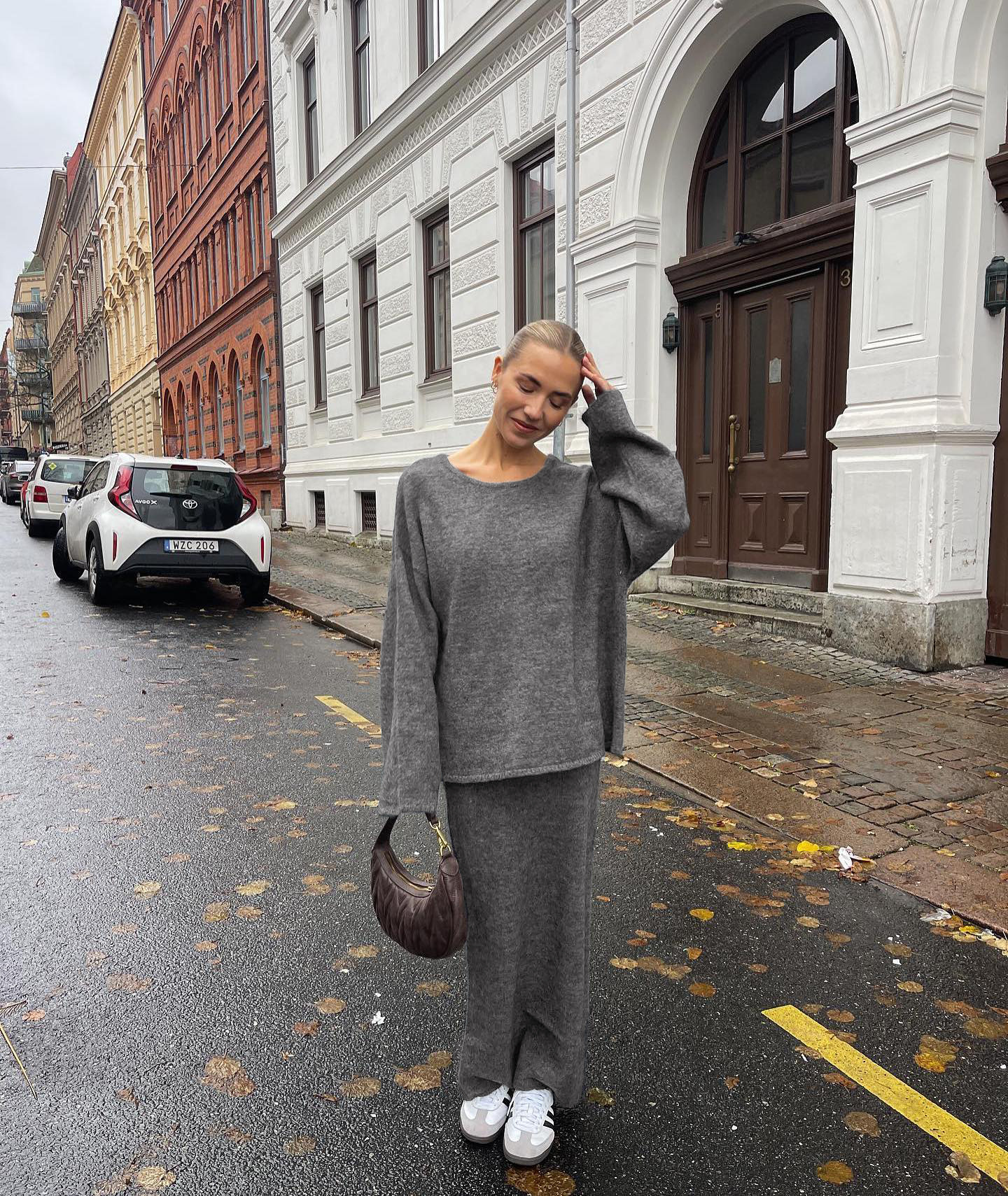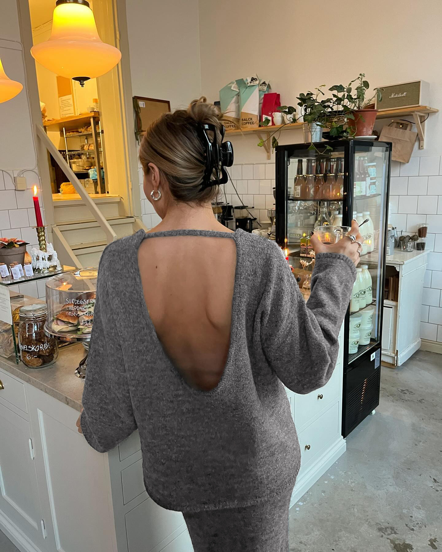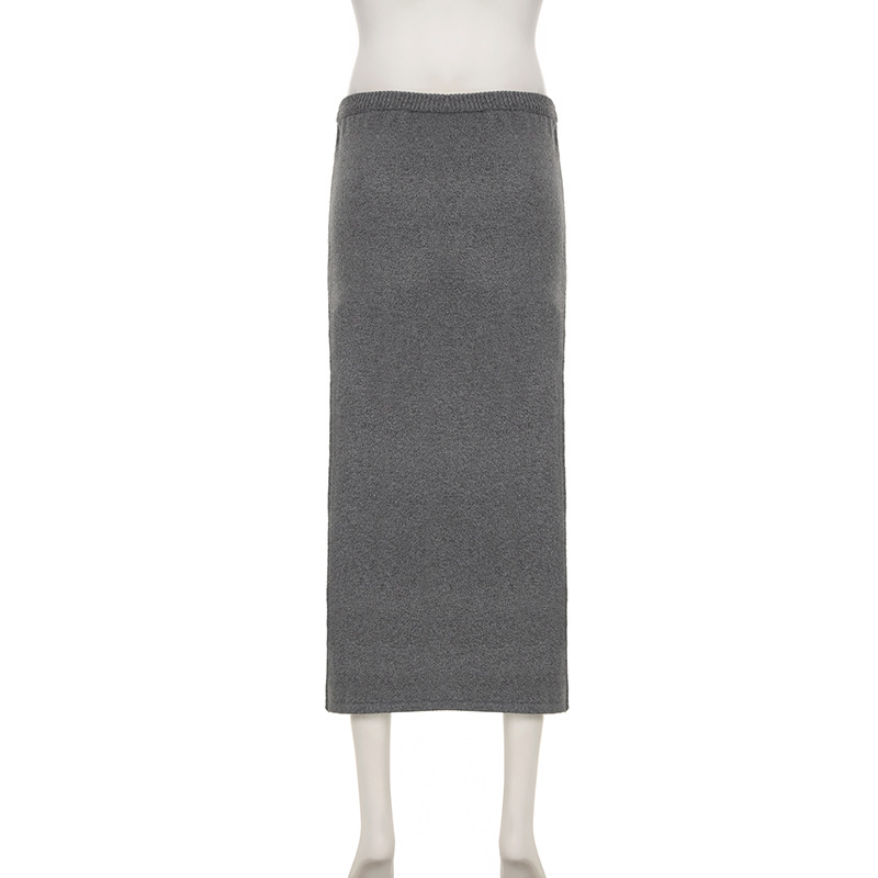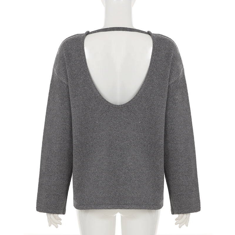 BKQU Casual Knitted Women's Two Piece Sets Long Sleeve Backless Pullover Sweater Elastic Slim Maxi Skirts 2024 Winter Lazy Suits
