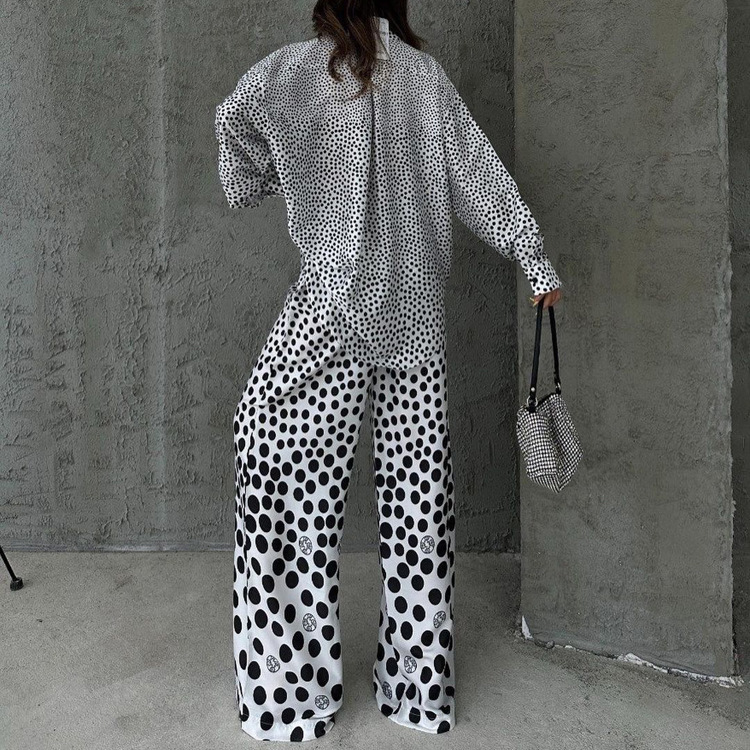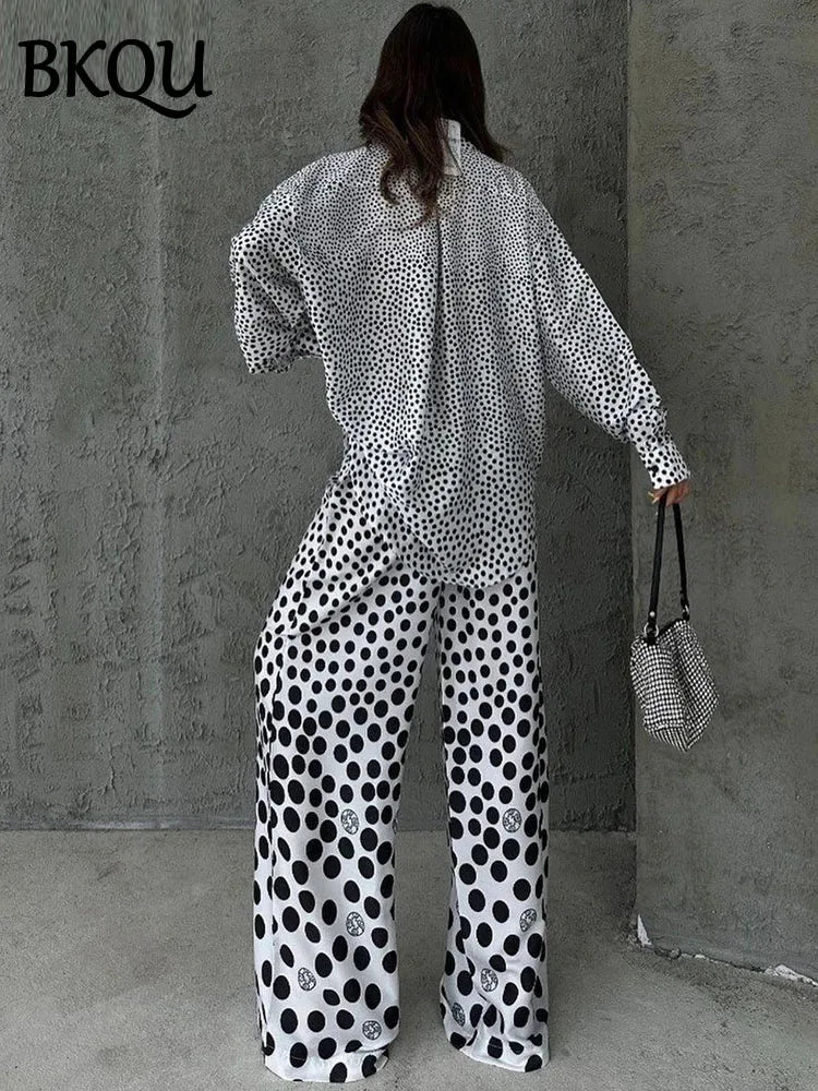 BKQU Casual Loose Print 2 Piece Sets Women Long Sleeve Button Shirts And High Waist Wide Leg Pants Matching Suit Chic Streetwear