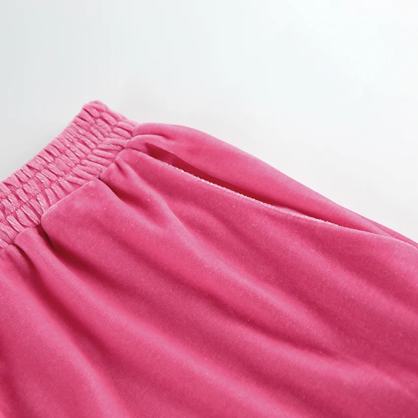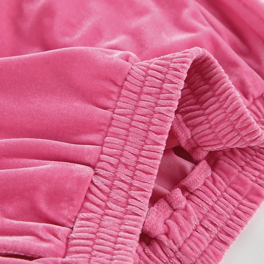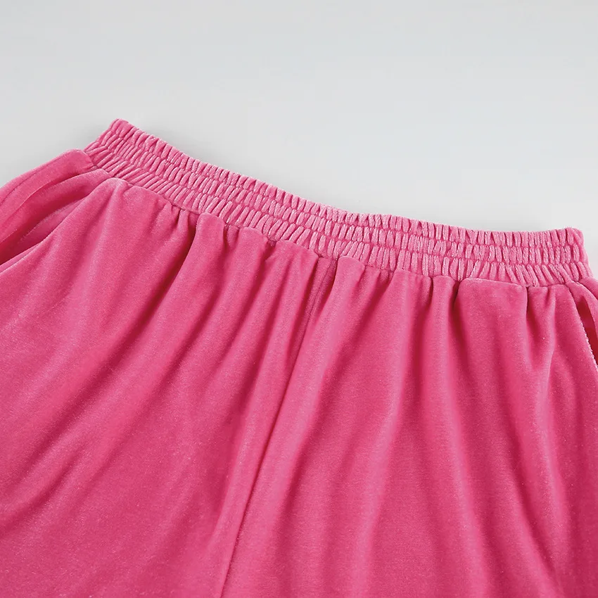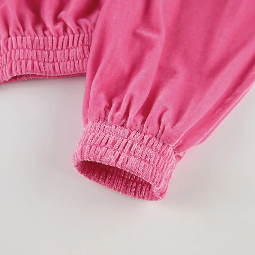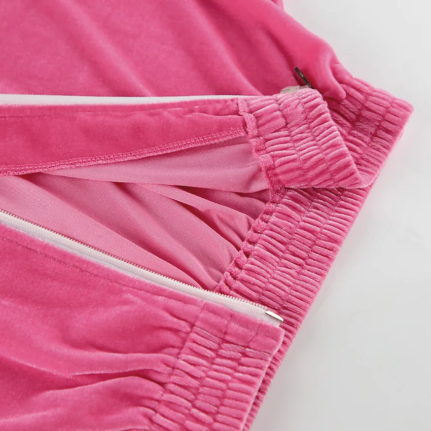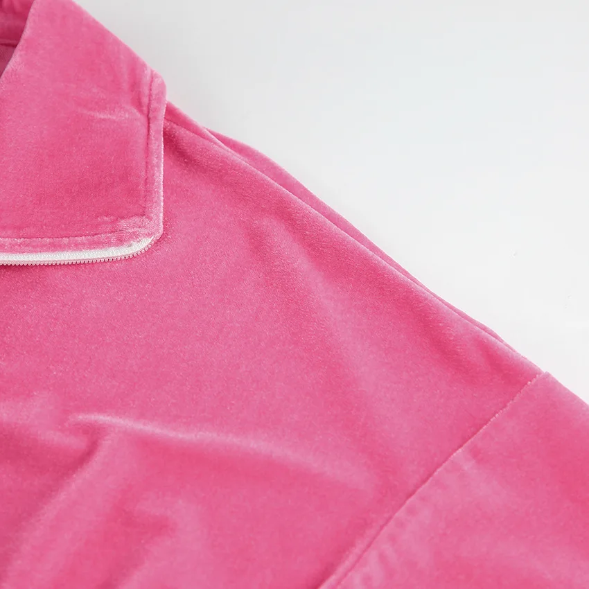 BKQU Casual Solid Velvet Pants Set Women Tracksuit Turn-down Collar Zipper Crop Coat and Wide Leg Pants Two Piece Set 2024