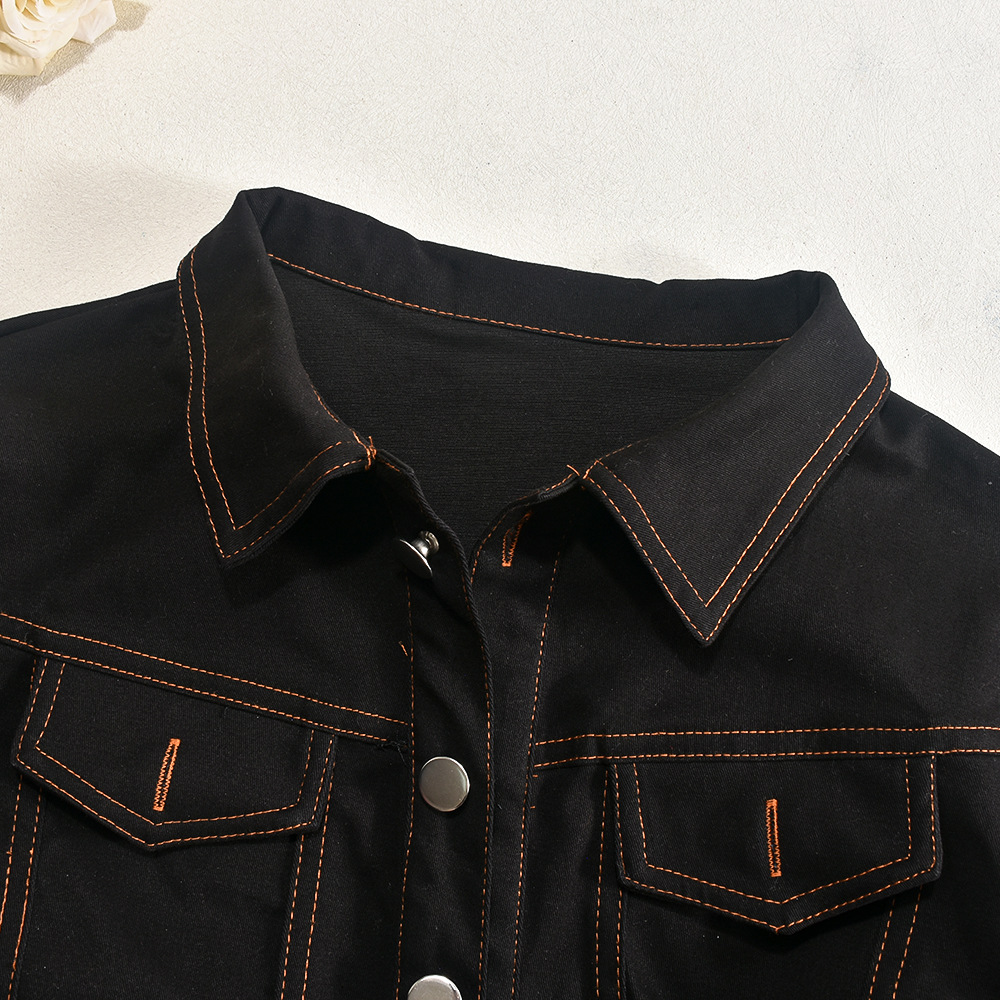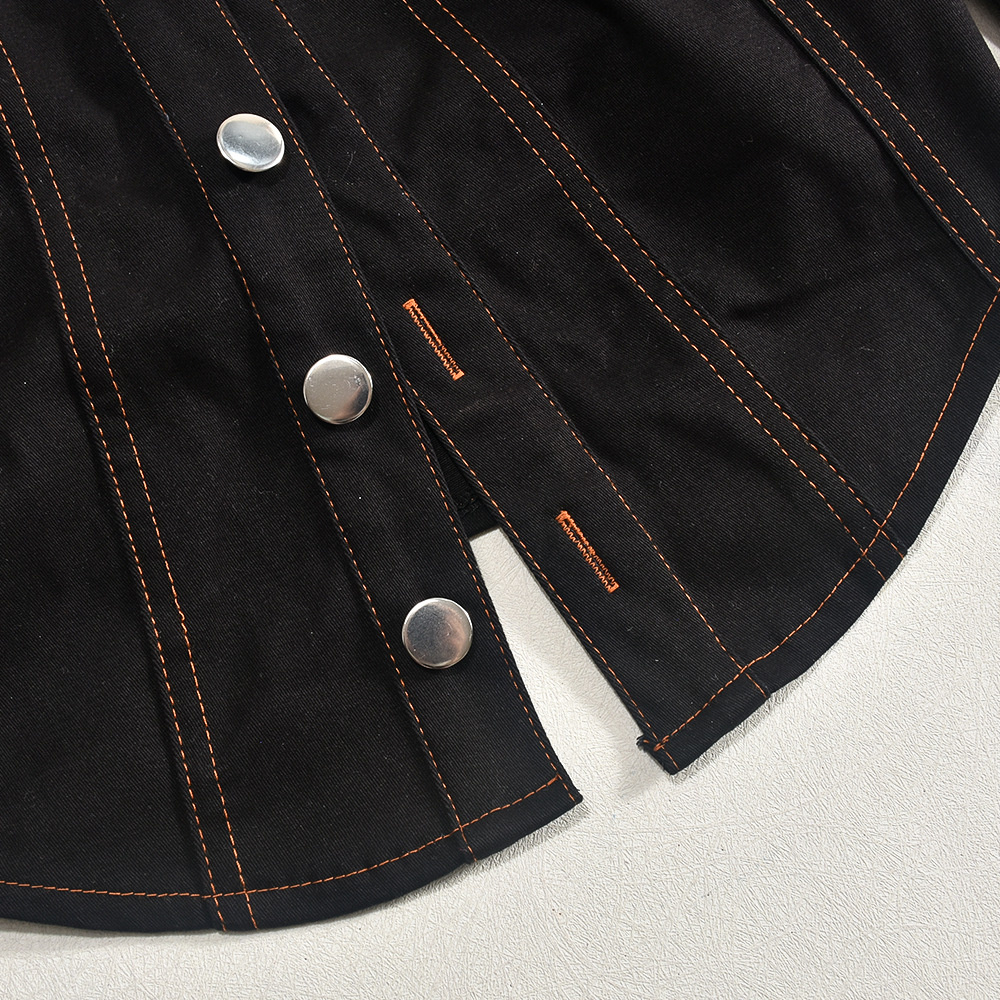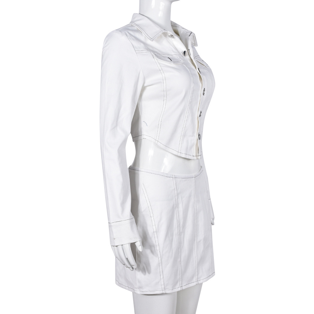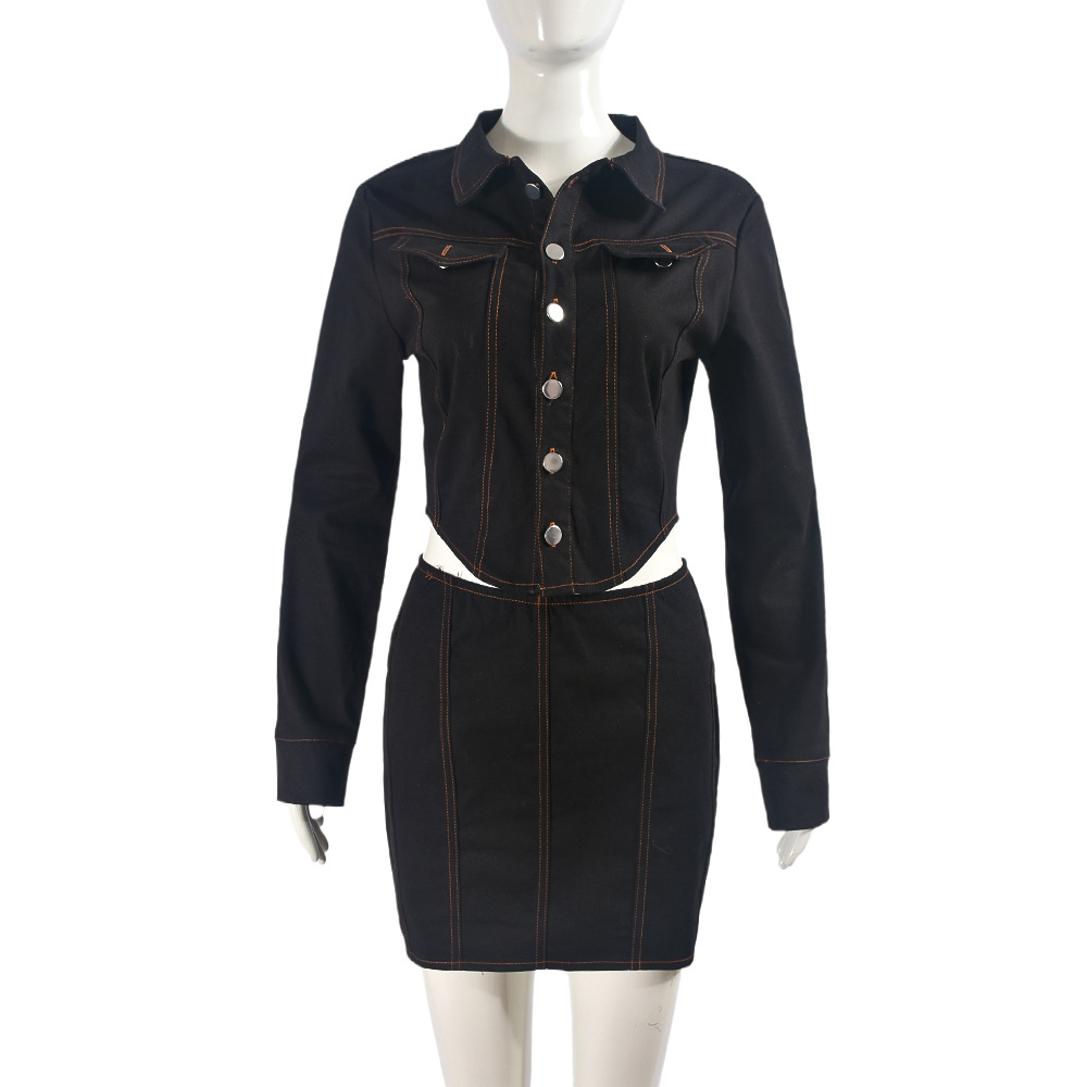 BKQU Denim Cargo Style 2 Piece Set Women Long Sleeve Single-Breasted Jacket Striped Mini Skirt Casual Matching Set 2025 Street