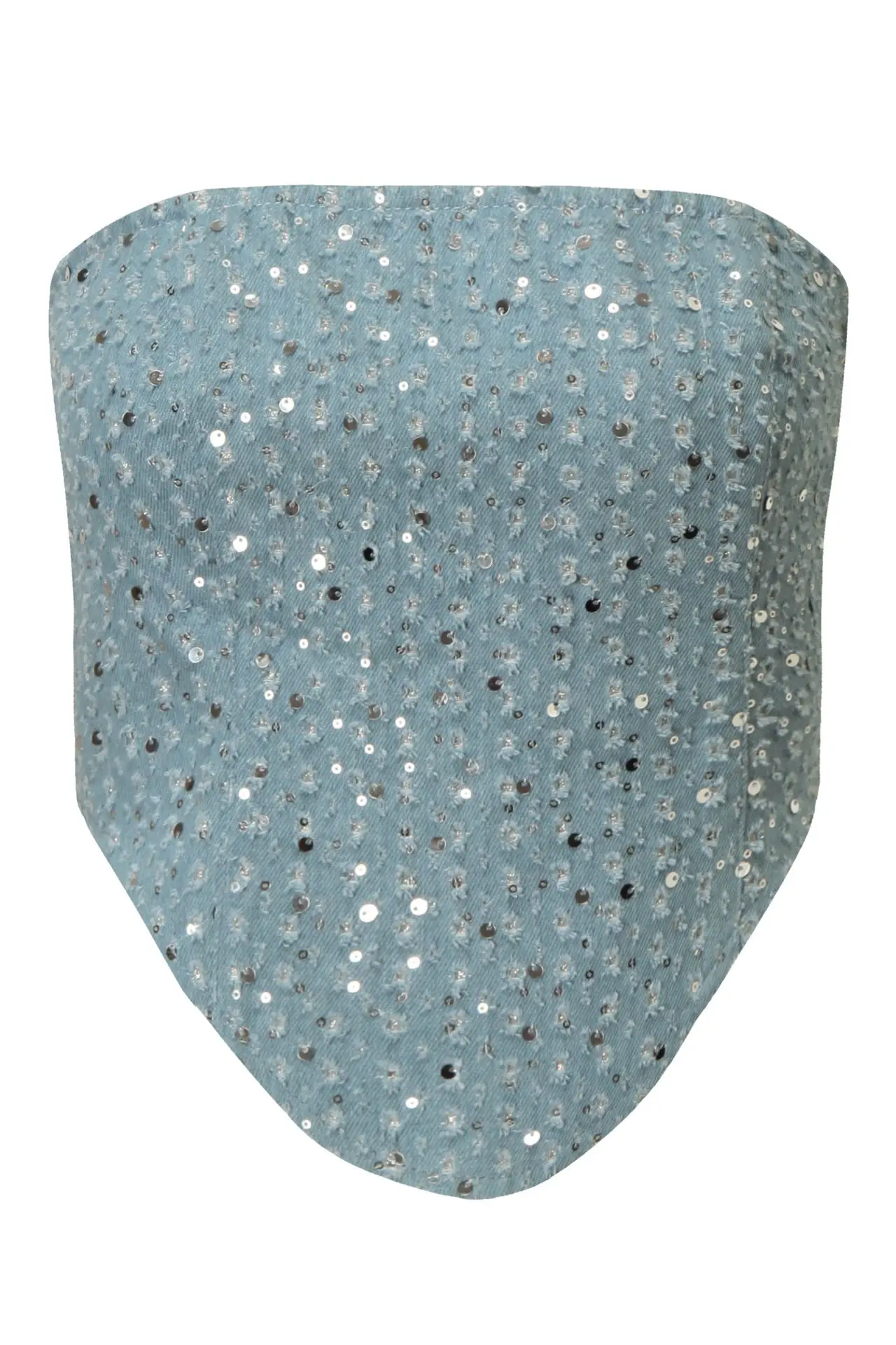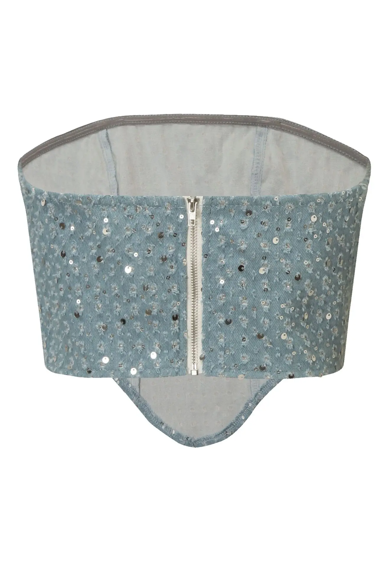 BKQU Denim Long Pant Set Women Sequins Outfits 2024 Elegant Wide Leg Jeans and Sleeveless Zipper Corset Vest Party Club Clothes