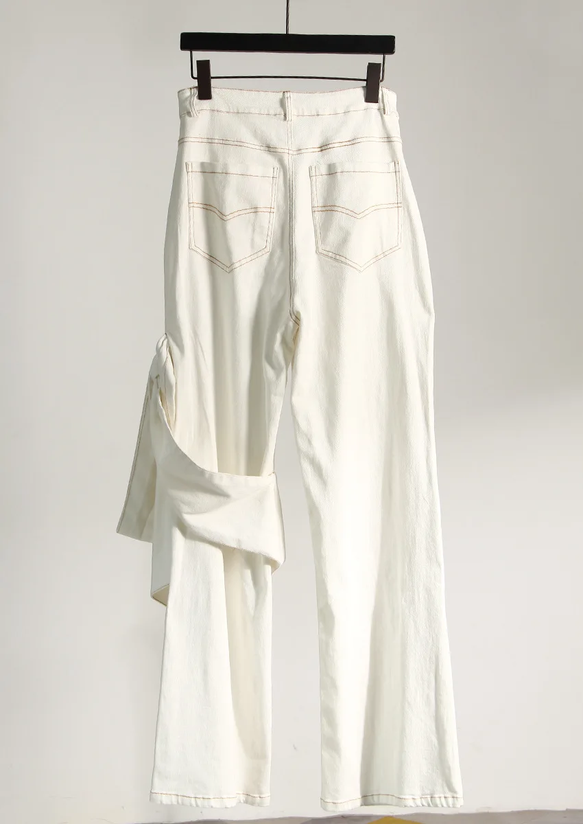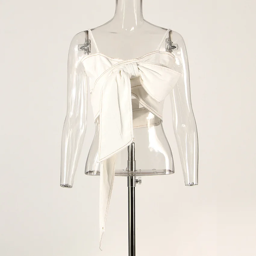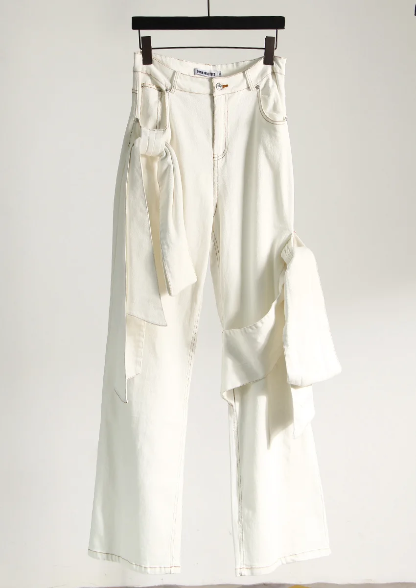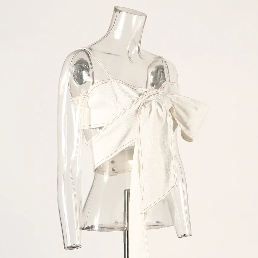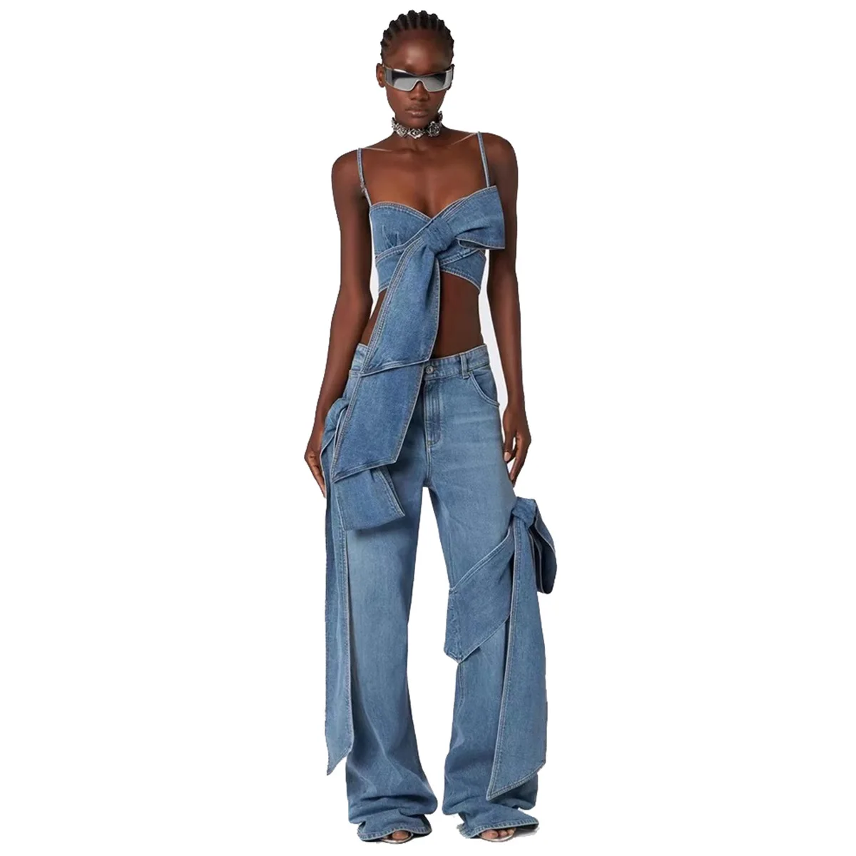 BKQU Denim Pants Set Women 2024 Designer Outfits Bows Spaghetti Straps Corset Tank Tops and Wide Leg Straight Jeans 2 Piece Sets