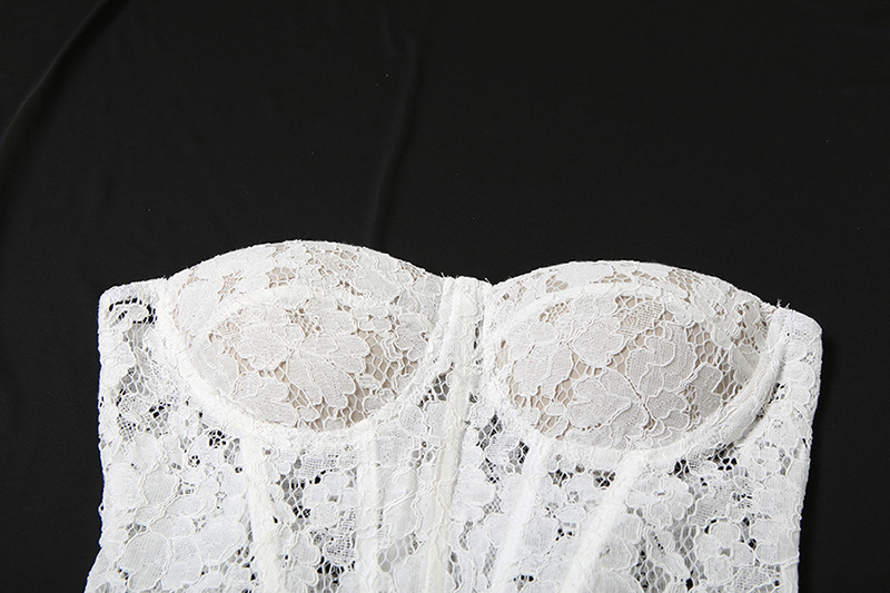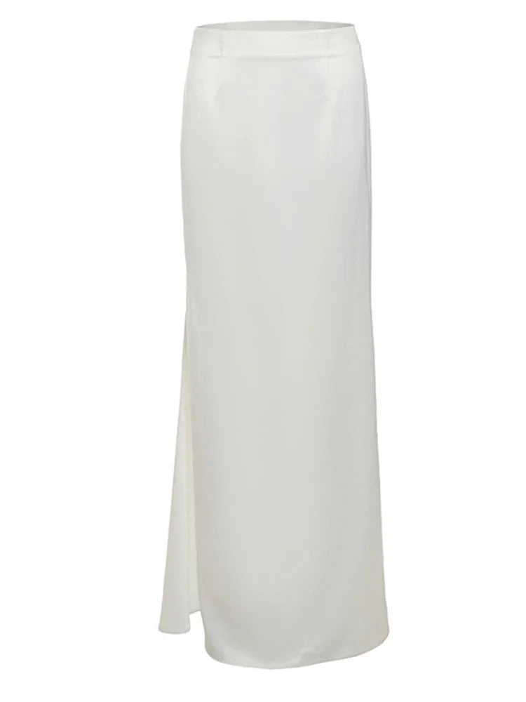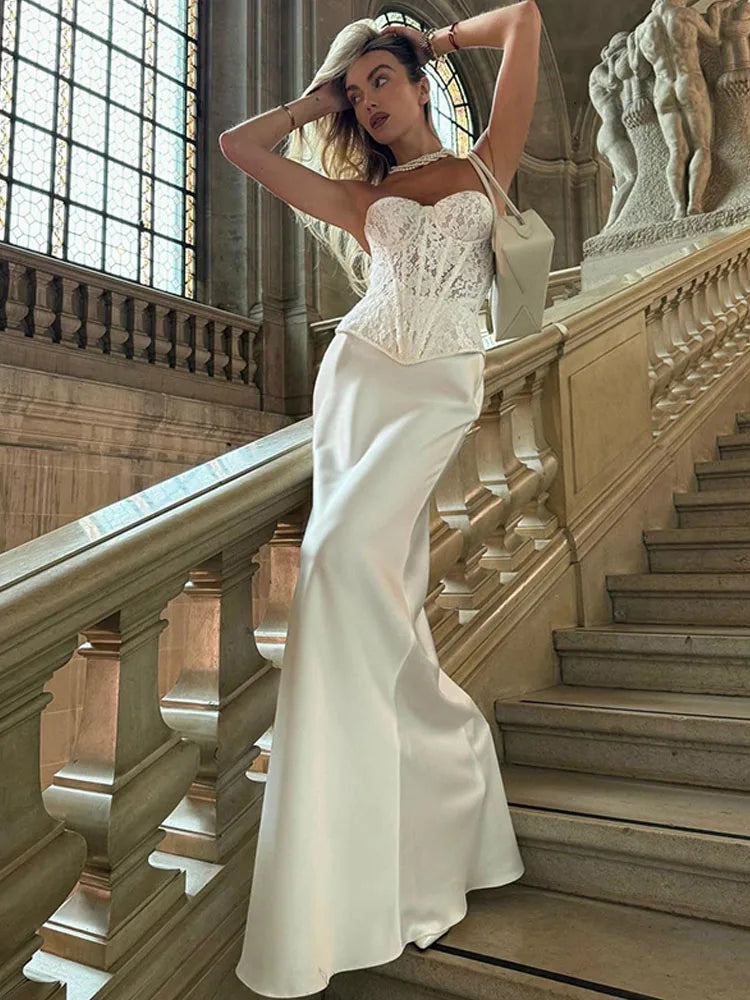 BKQU Elegant Ladies Two Piece Set White Lace Corset Tube Vest High Waist Satin Maxi Skirt Suits 2025 Luxury Party Womens Outfits