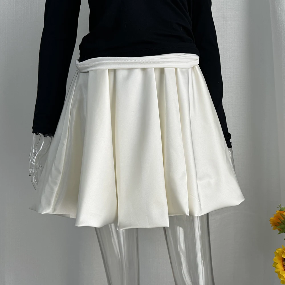 BKQU Elegant Satin A-Line Skirt Women Ball Gown 2025 Spring Summer Casual Pleated High Waist Female Solid Y2k Party Mini Skirts