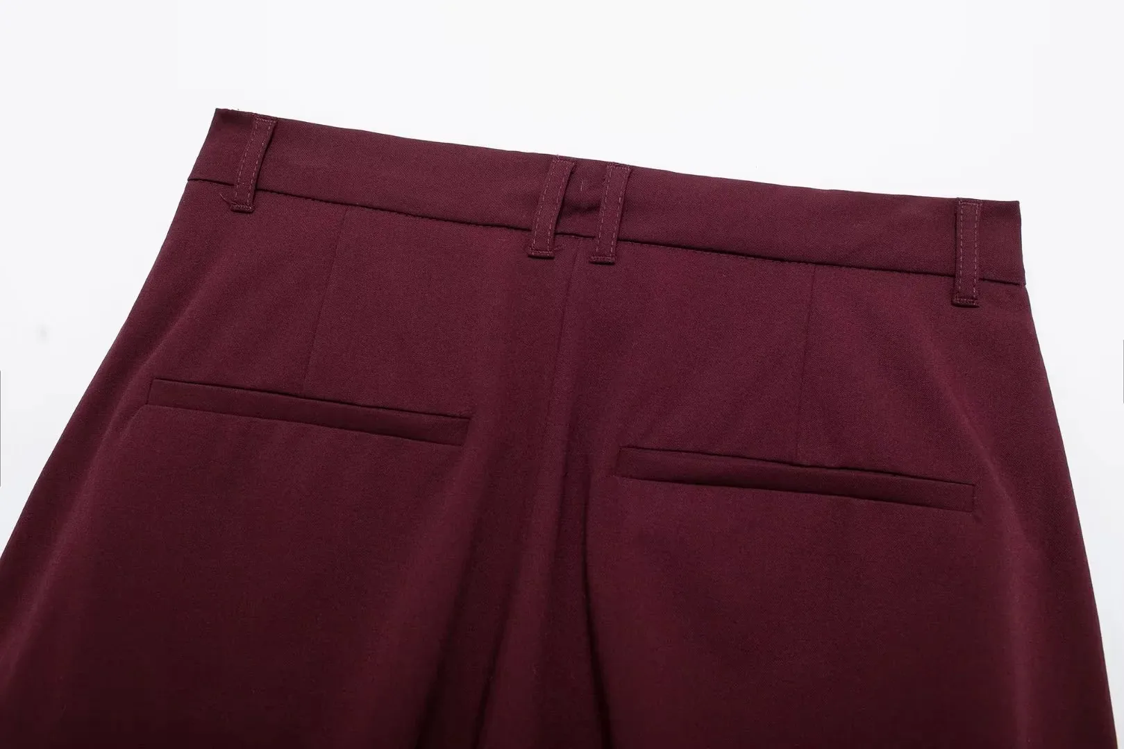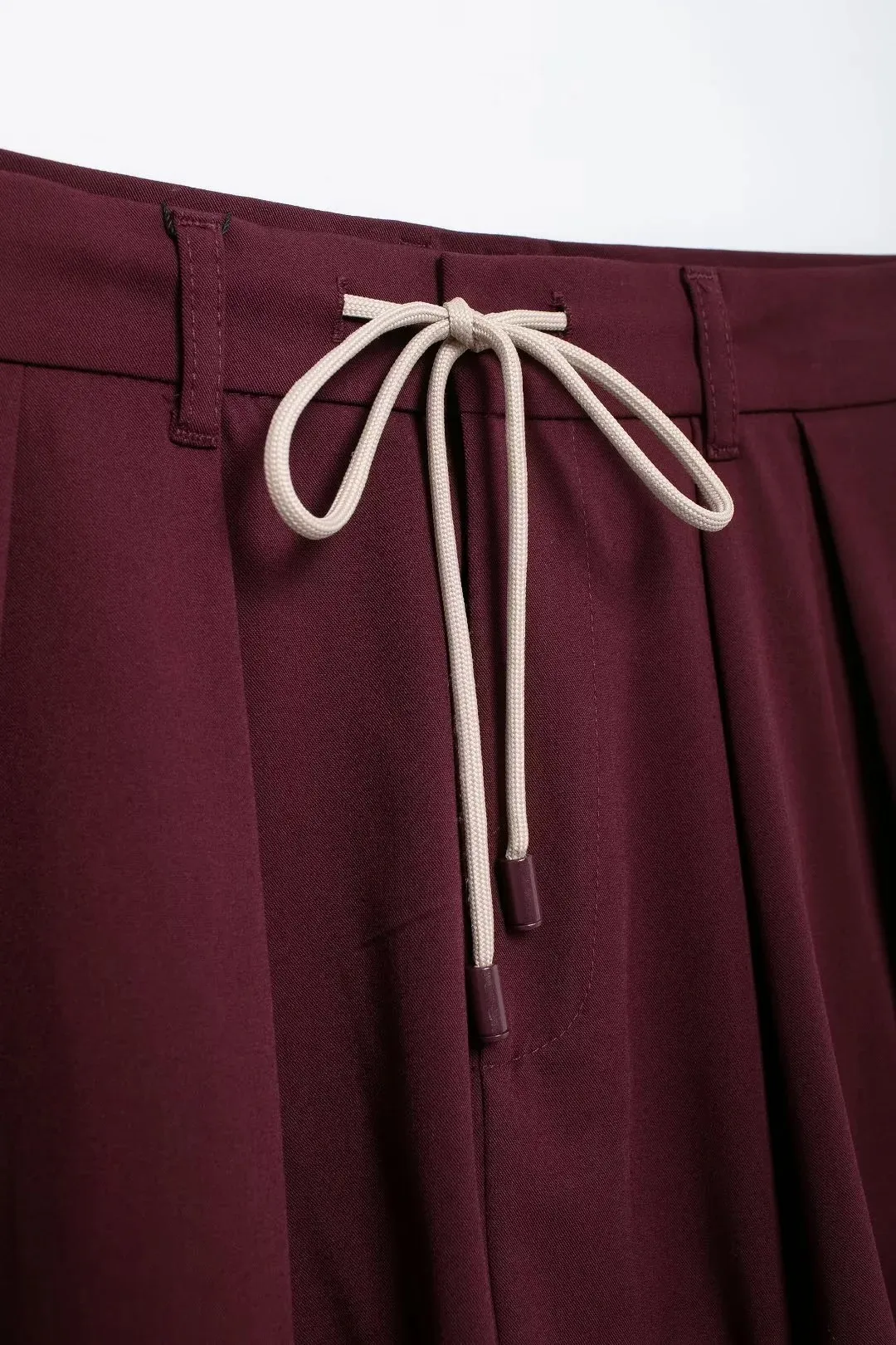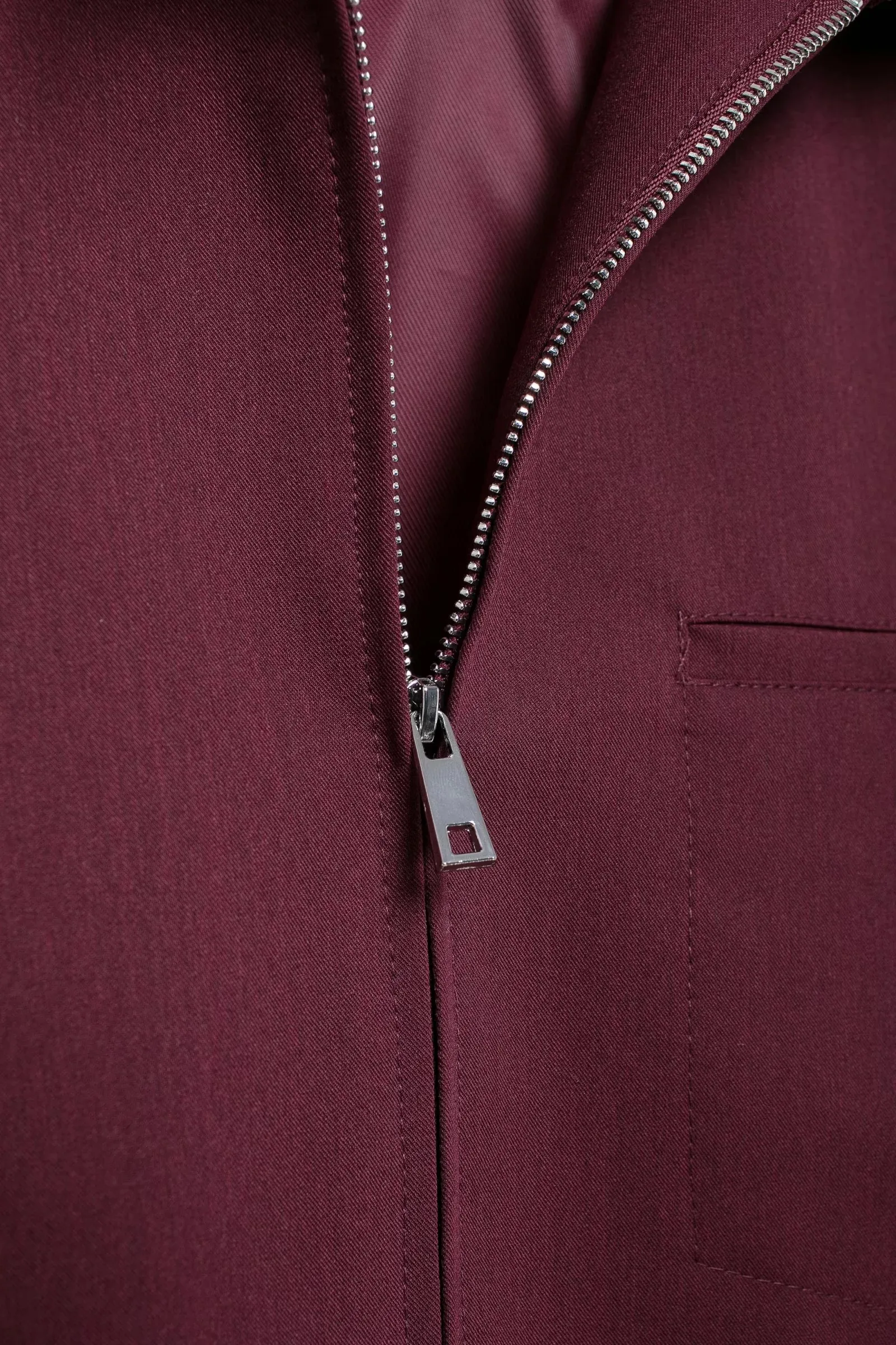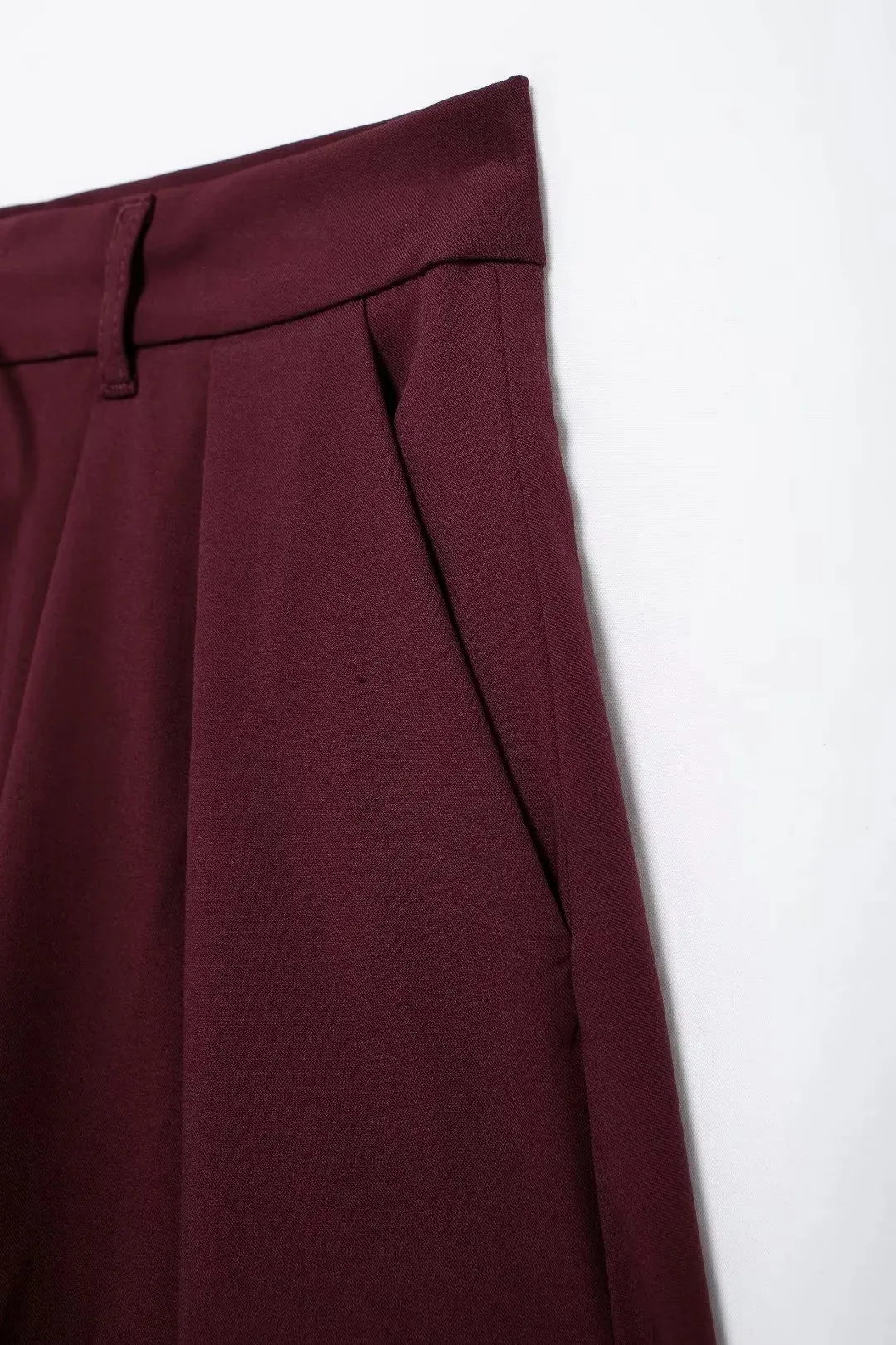 BKQU Fashion Two Piece Sets Women Long Sleeves Zipper Jackets and Tied Lantern Mini Skirt Wine Red Casual Street 2 Piece Outfits