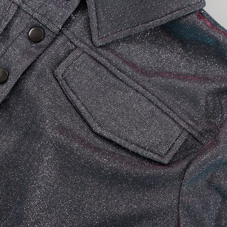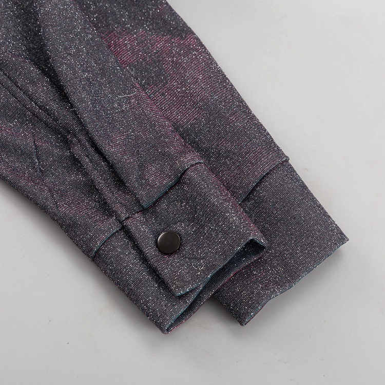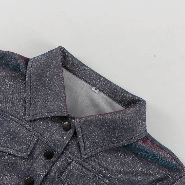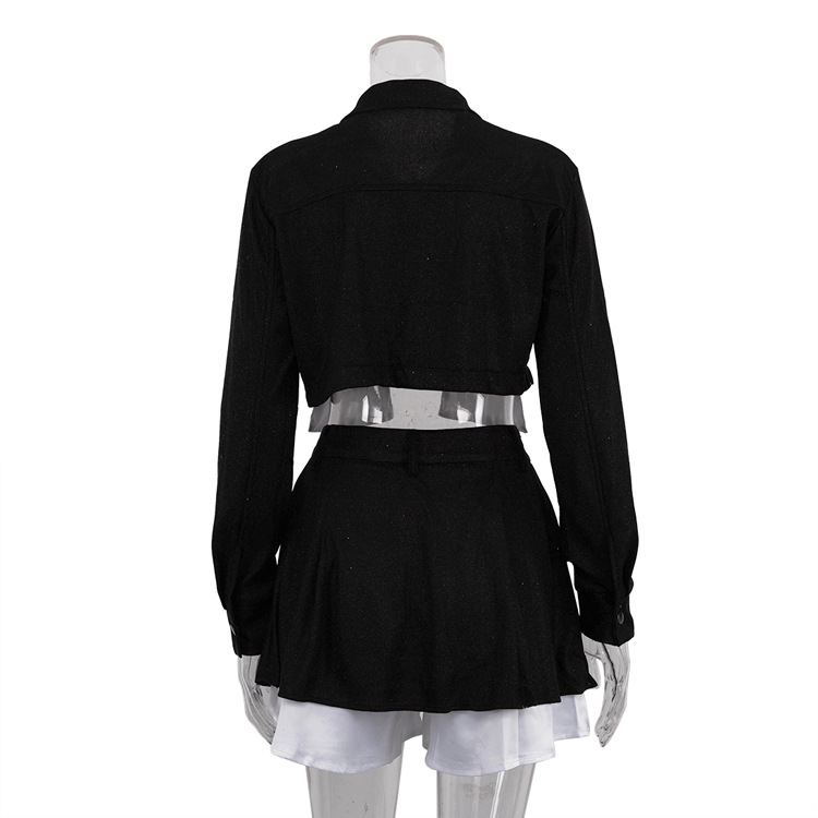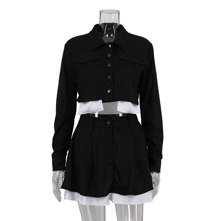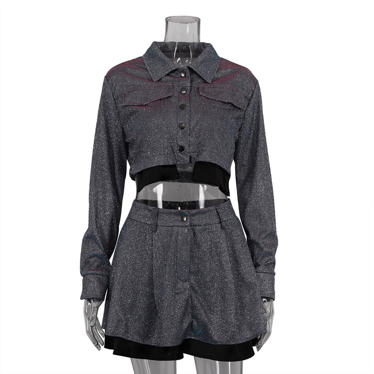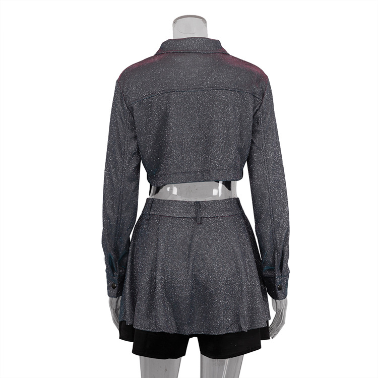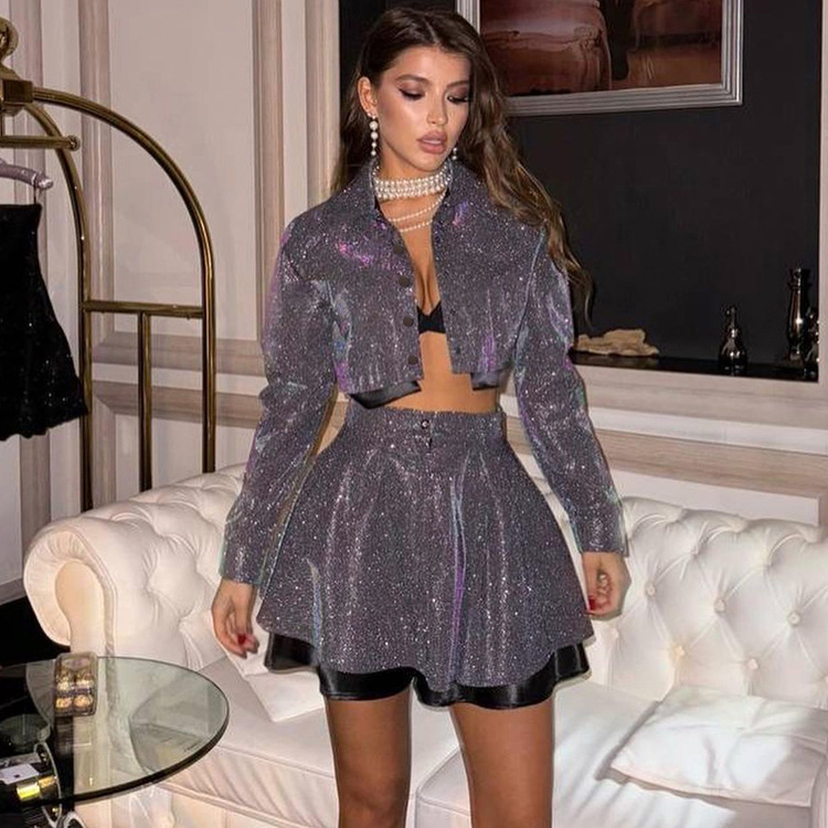 BKQU Glitter Party Women Two Piece Set Long Sleeve Single Breasted Crop Jacket High Waist A-Line Mini Skirts Female Chic Outfits