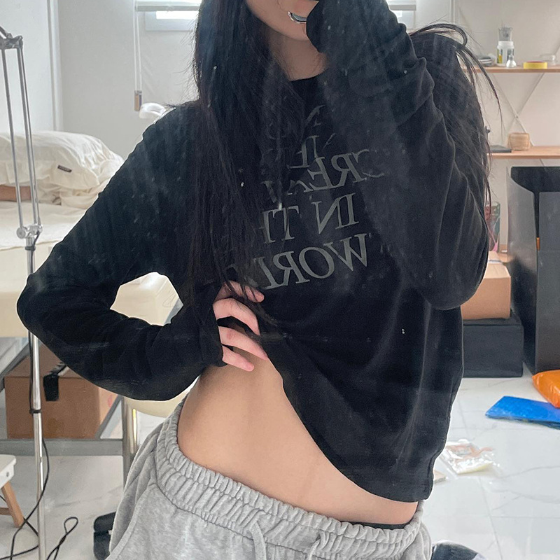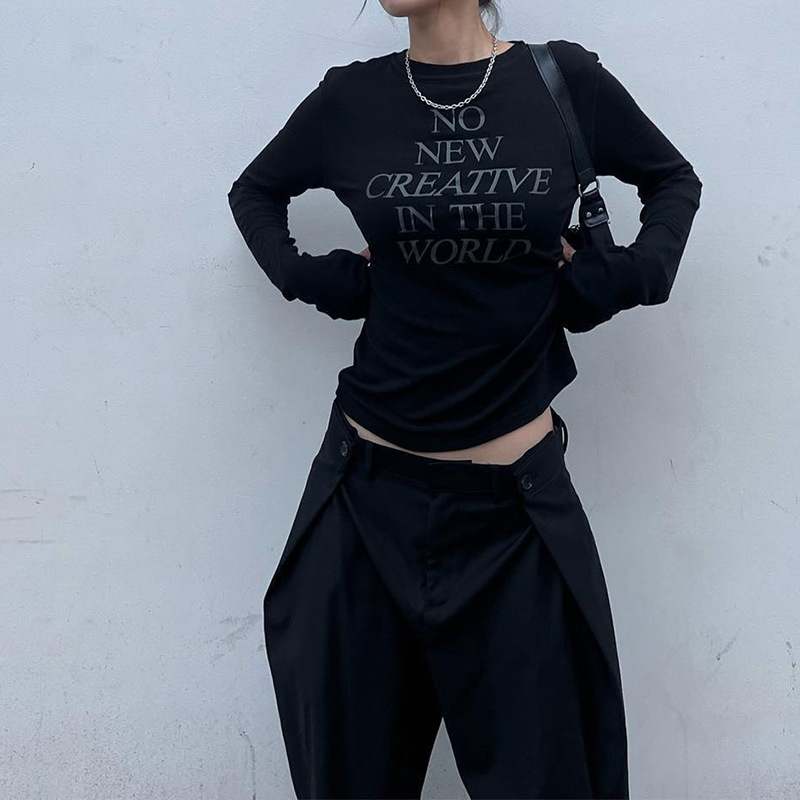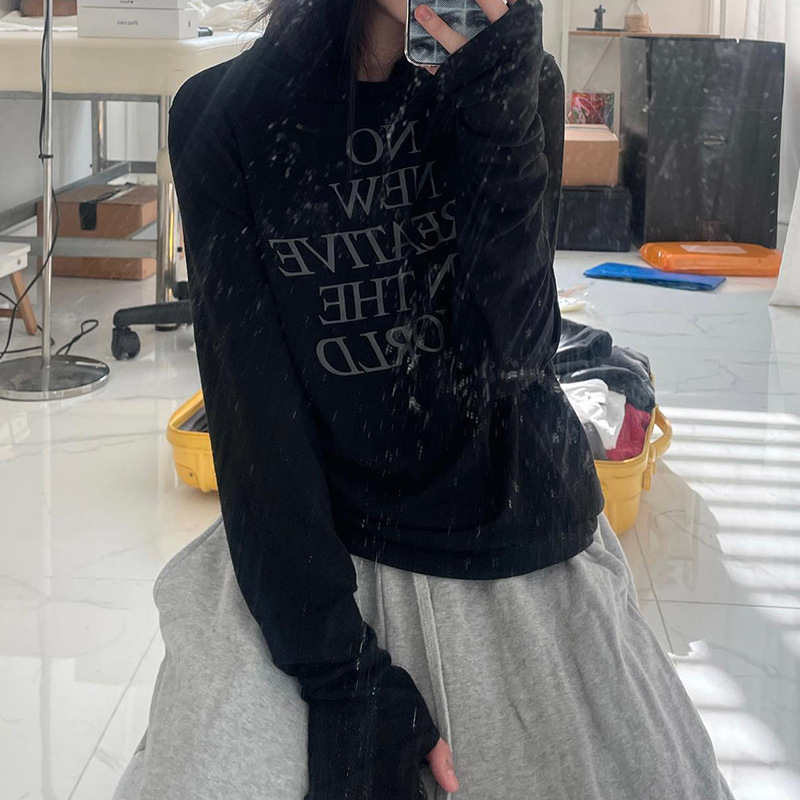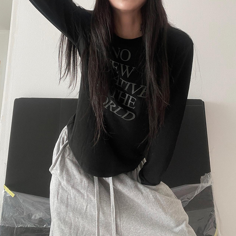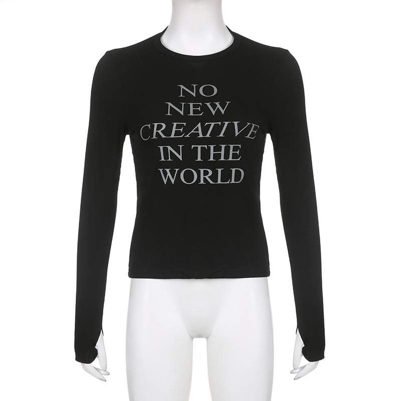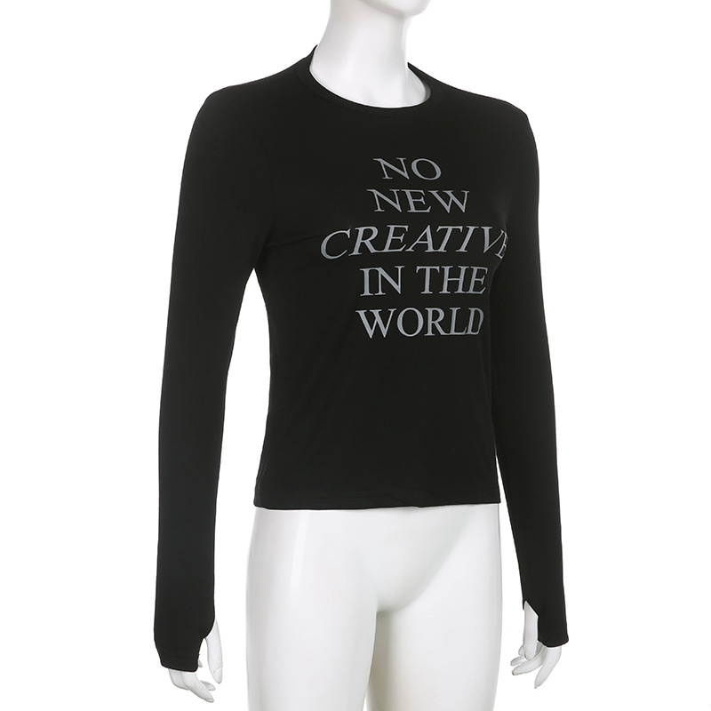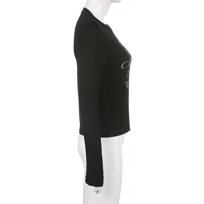 BKQU Harajuku Y2k Letter Print Black T-shirt Women 2025 Spring Long Sleeve Cotton Tops Femme Casual All Match Loose Streetwear