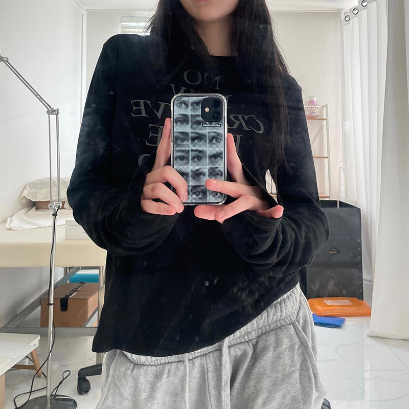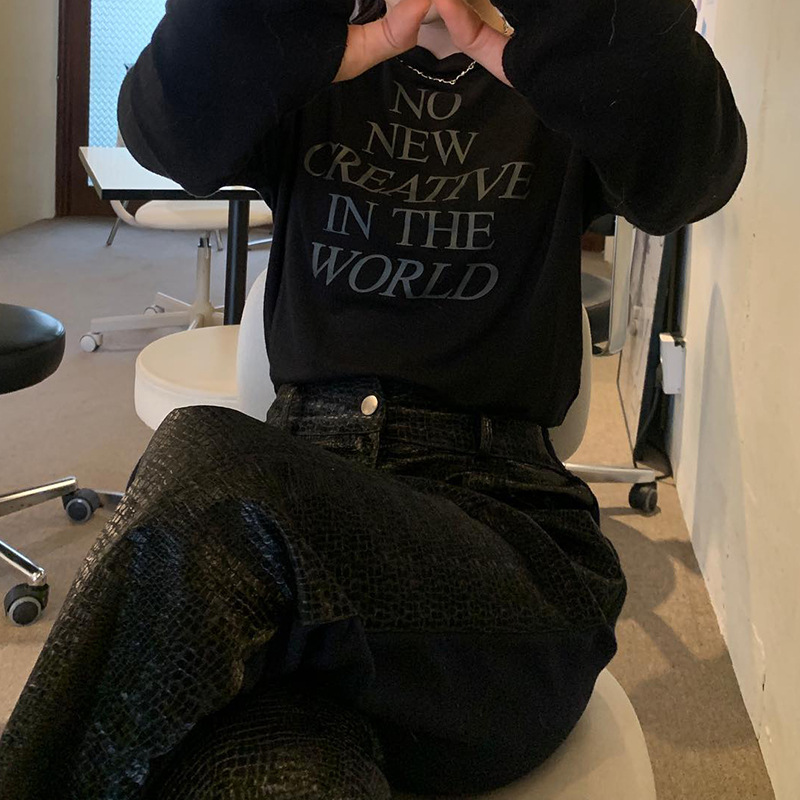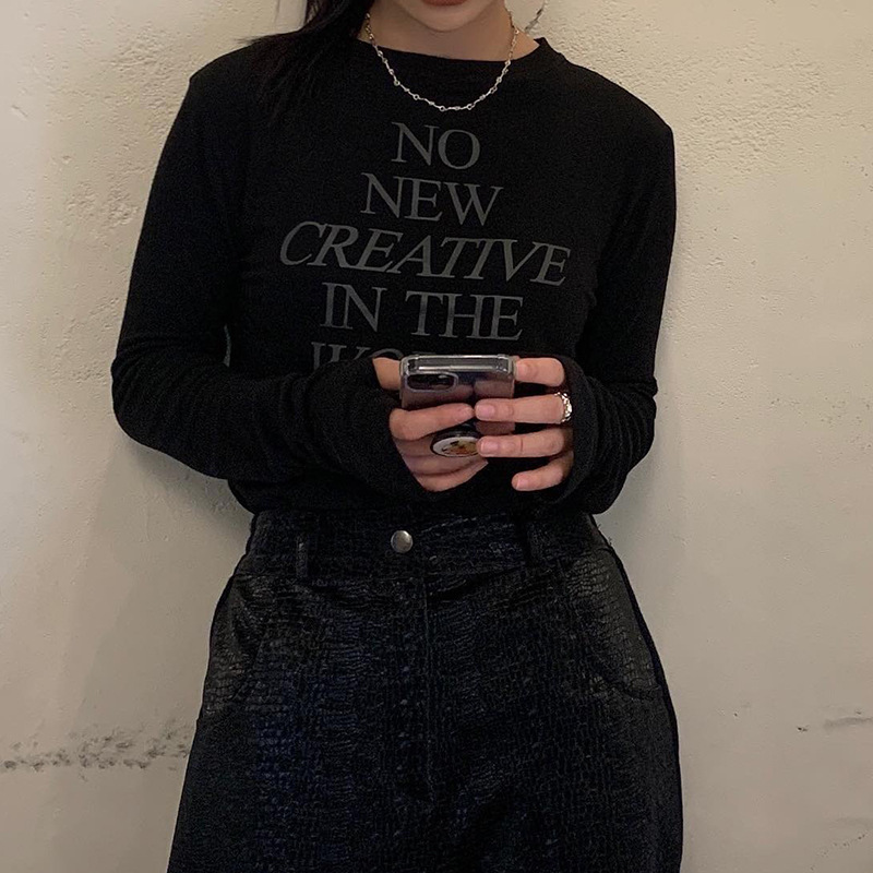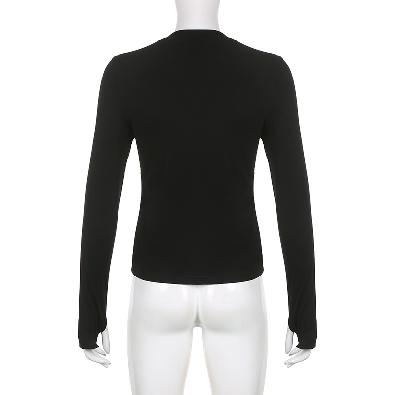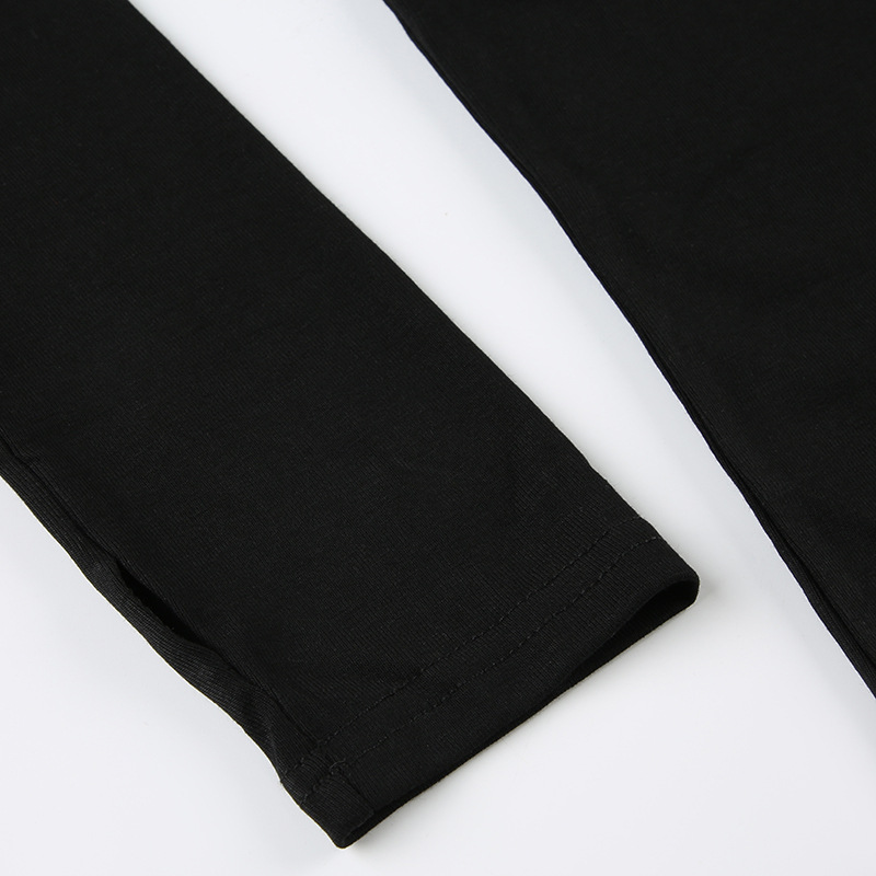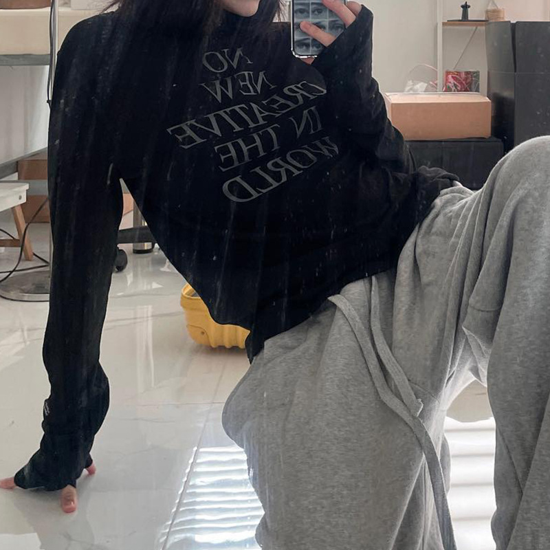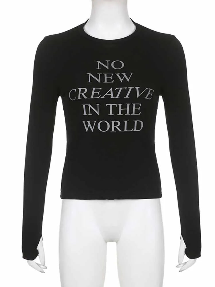 BKQU Harajuku Y2k Letter Print Black T-shirt Women 2025 Spring Long Sleeve Cotton Tops Femme Casual All Match Loose Streetwear