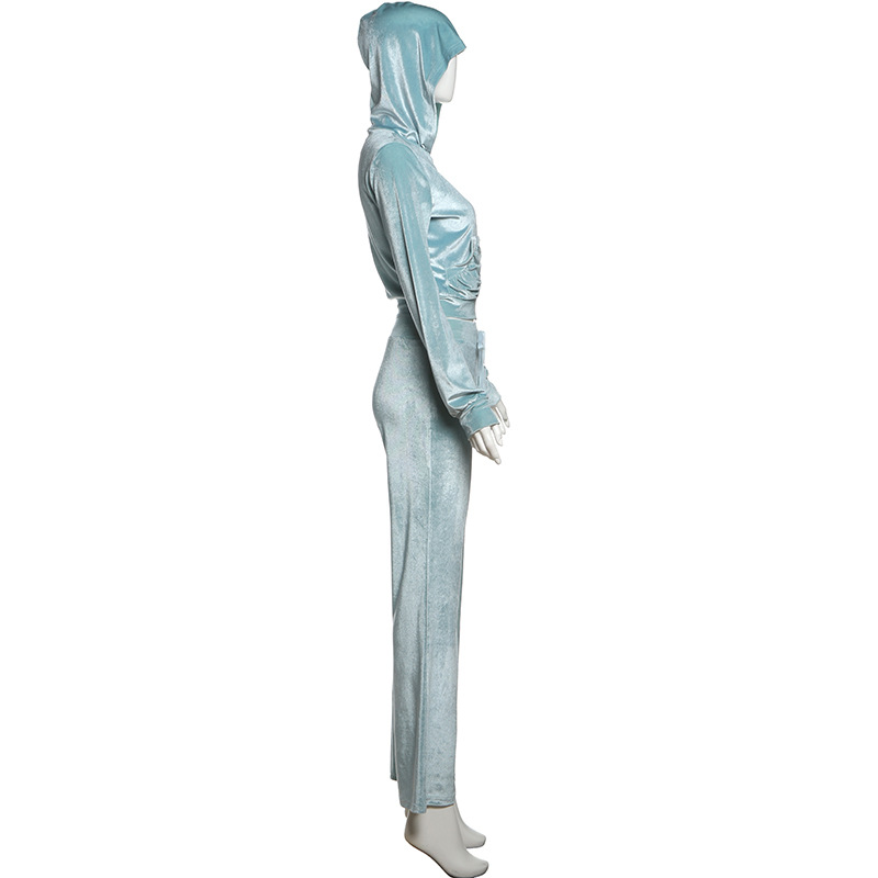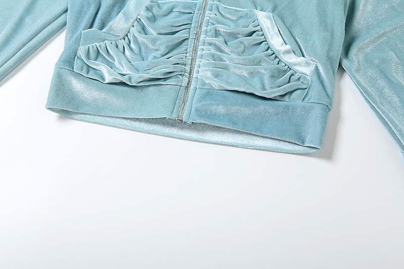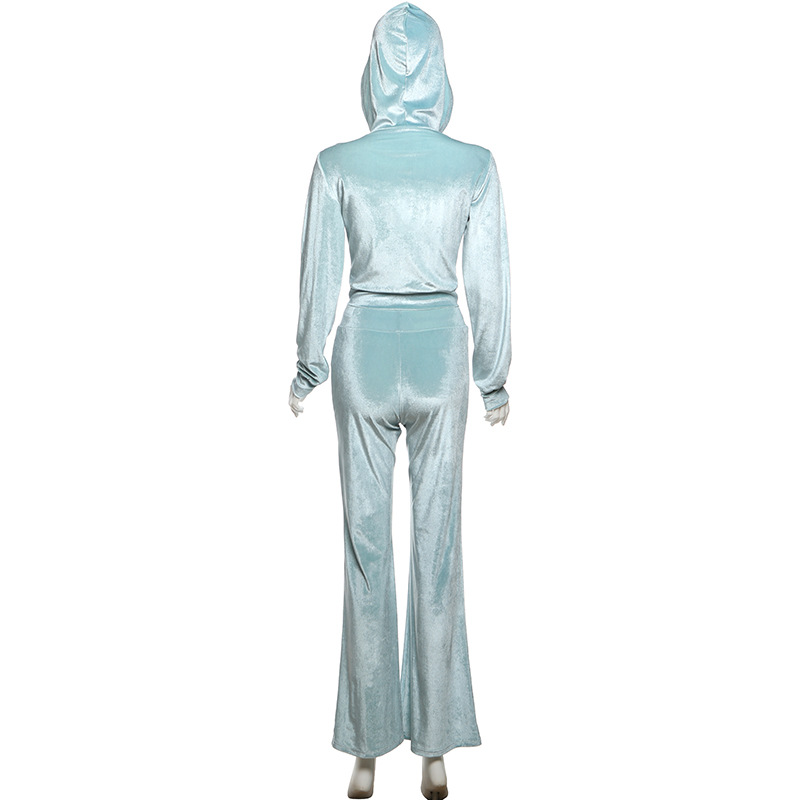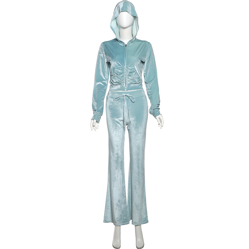 BKQU Hoodie Velvet Tracksuit 2 Piece Sets Women Casual Zip Up Ruched Pocket Jacket+Drawstring Flare Pants Streetwear Y2k Outfits