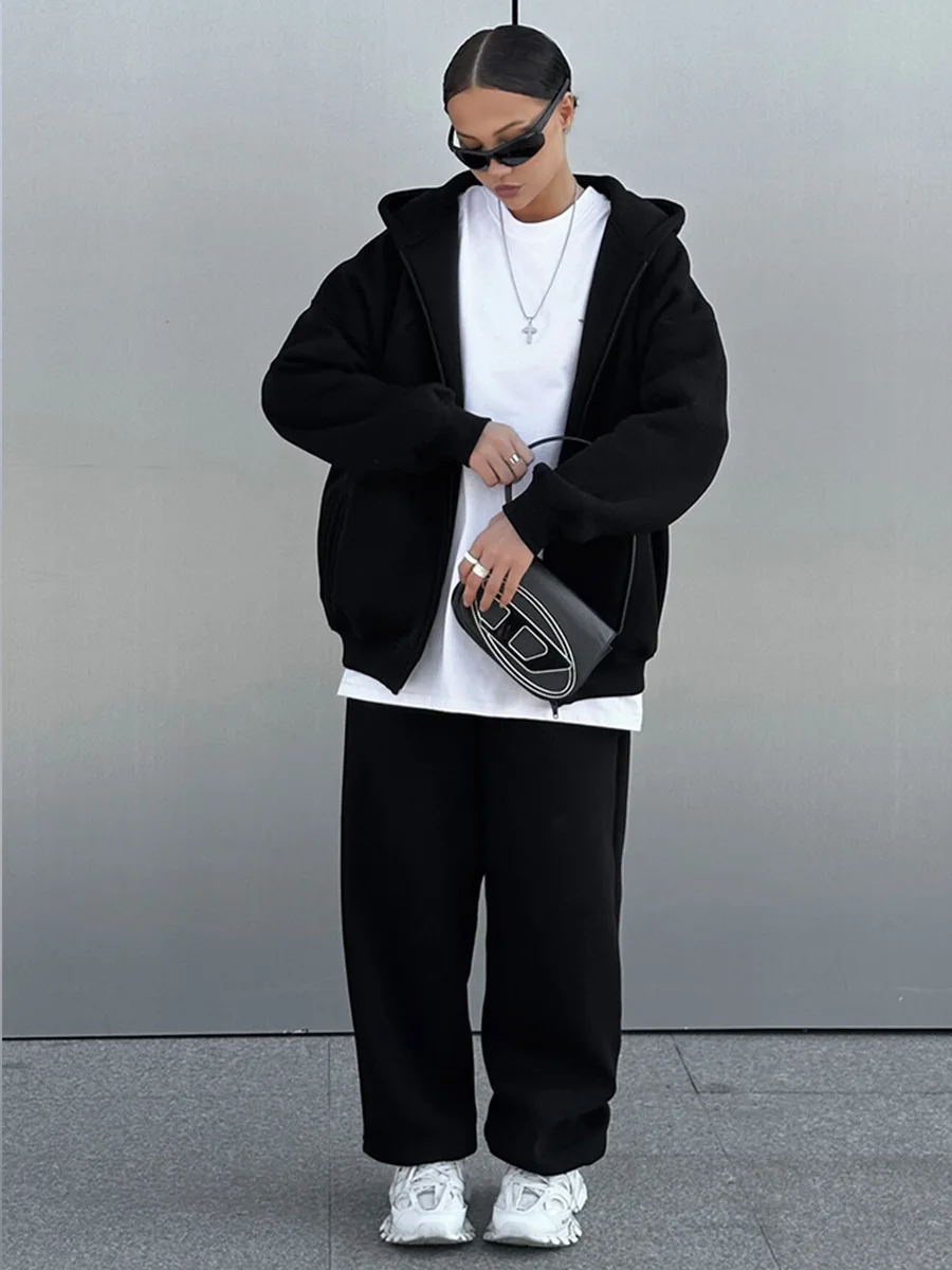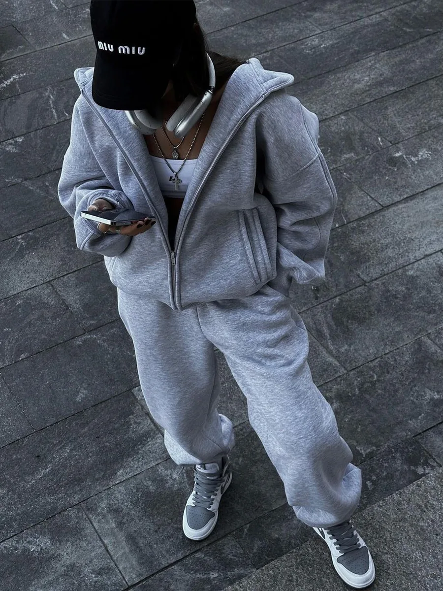 BKQU Hoodies Tracksuits Women 2024 Casual Zipper Long Sleeve Hooded Sweatshirts and Sports Pants Matching Set Autumn Winter