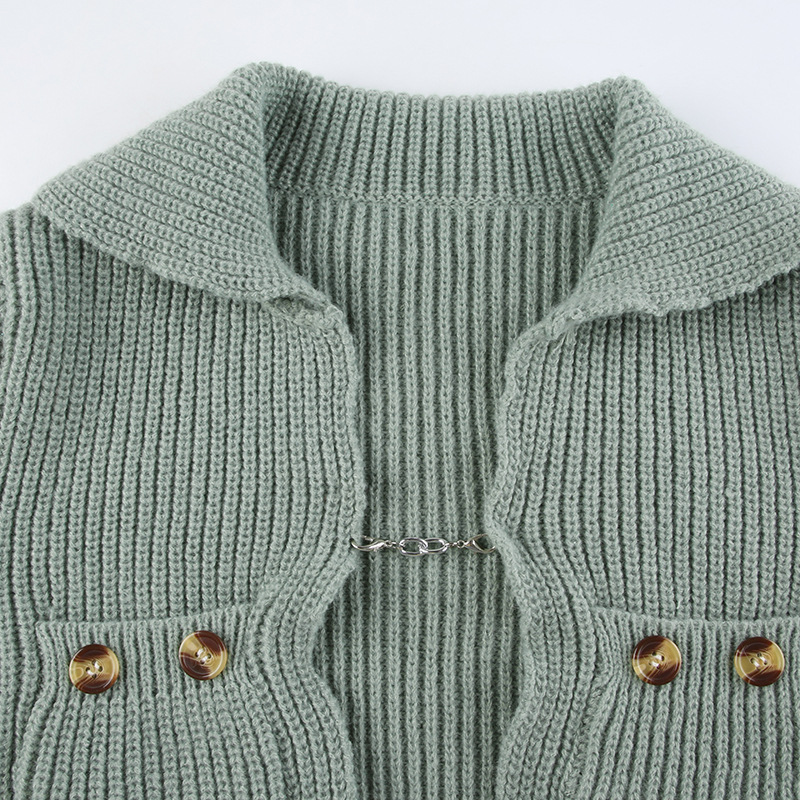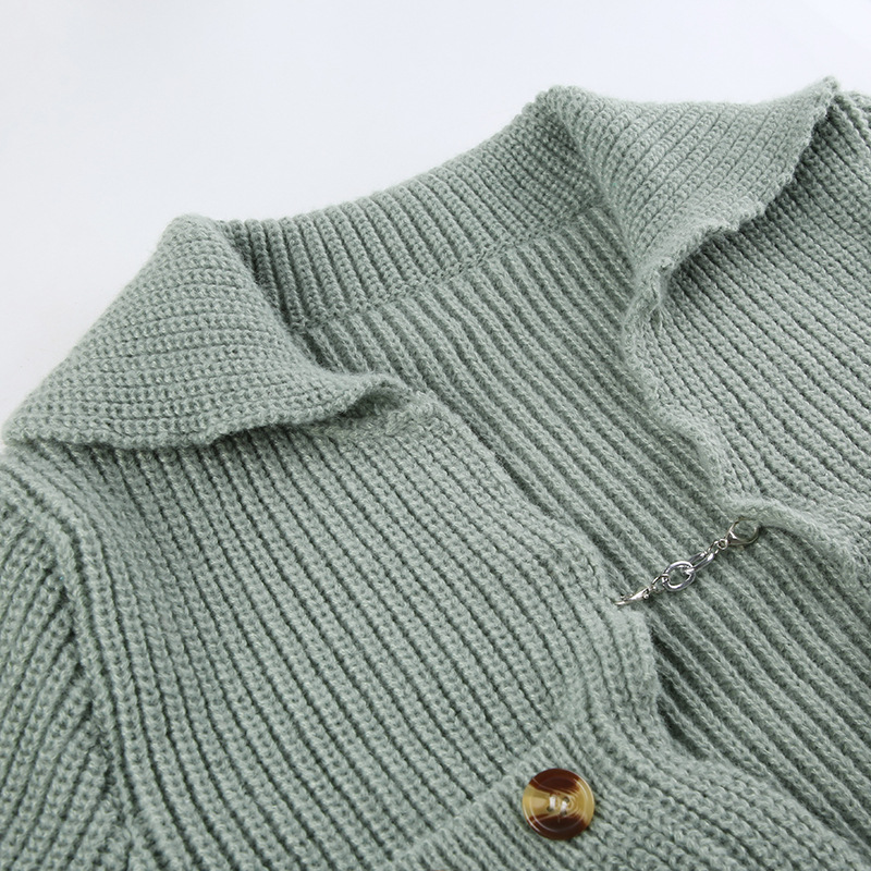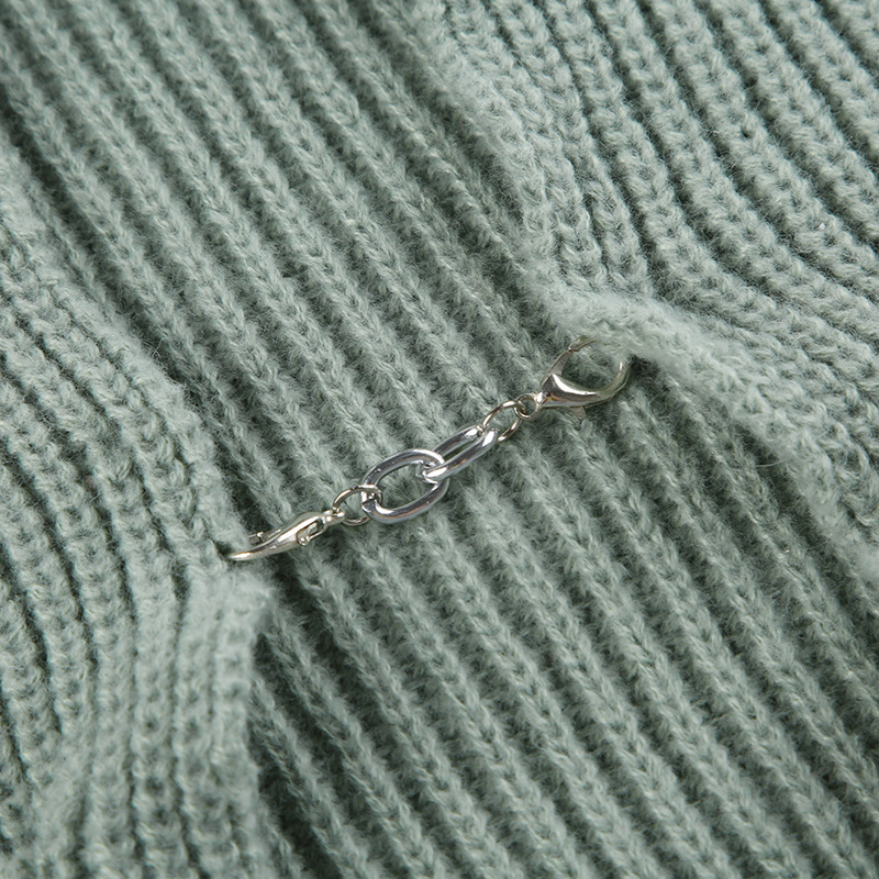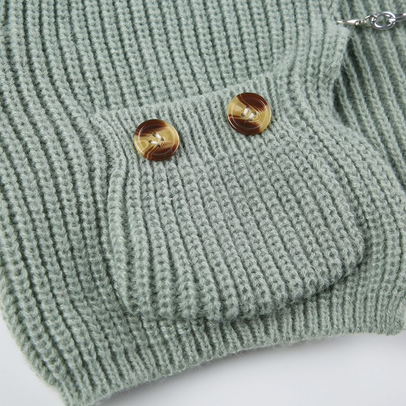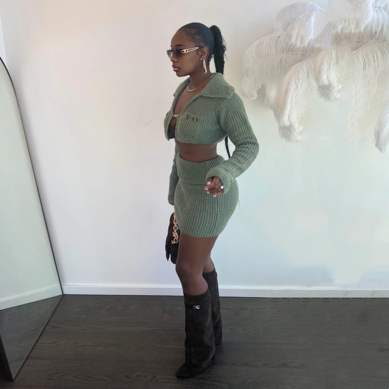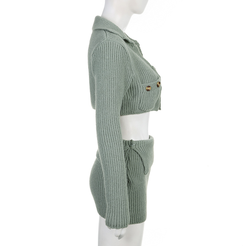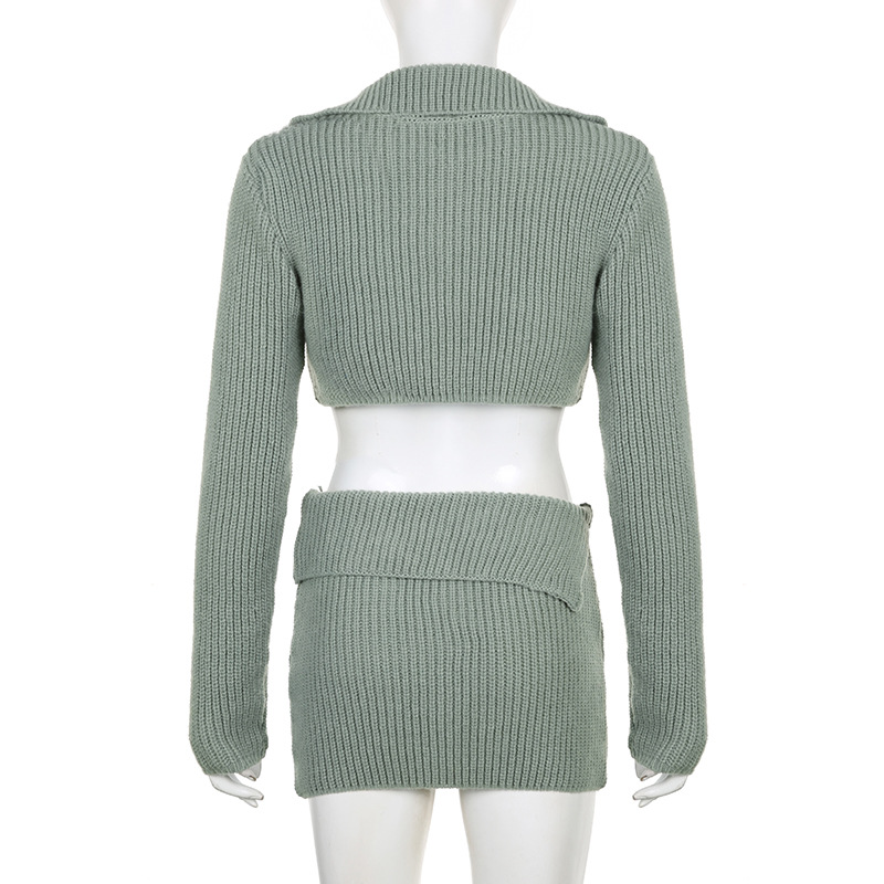 BKQU Knit Bodycon Mini Skirt 2 Piece Sets Women Sexy Chain Button Long Sleeve Cardigan Winter Elegant Party Sweater Skirt Suits