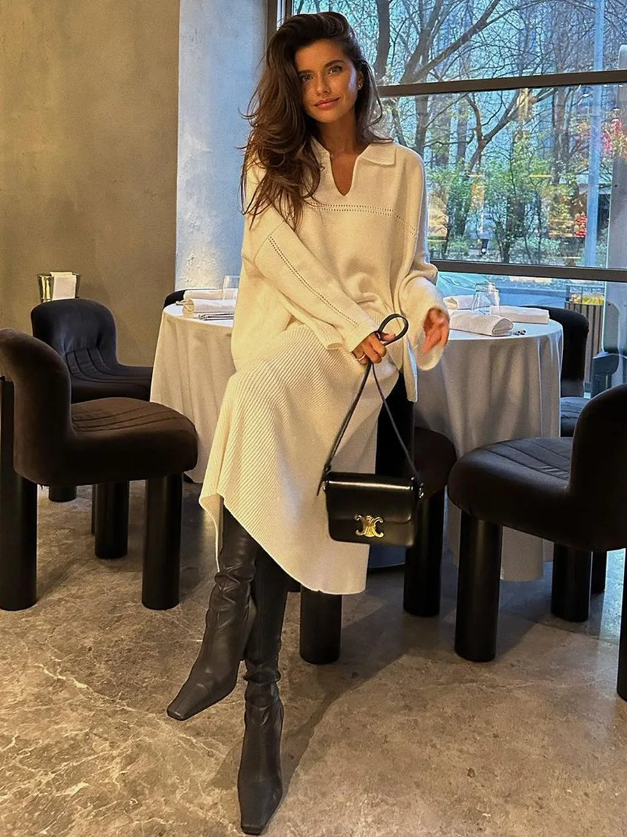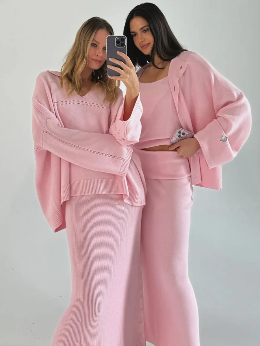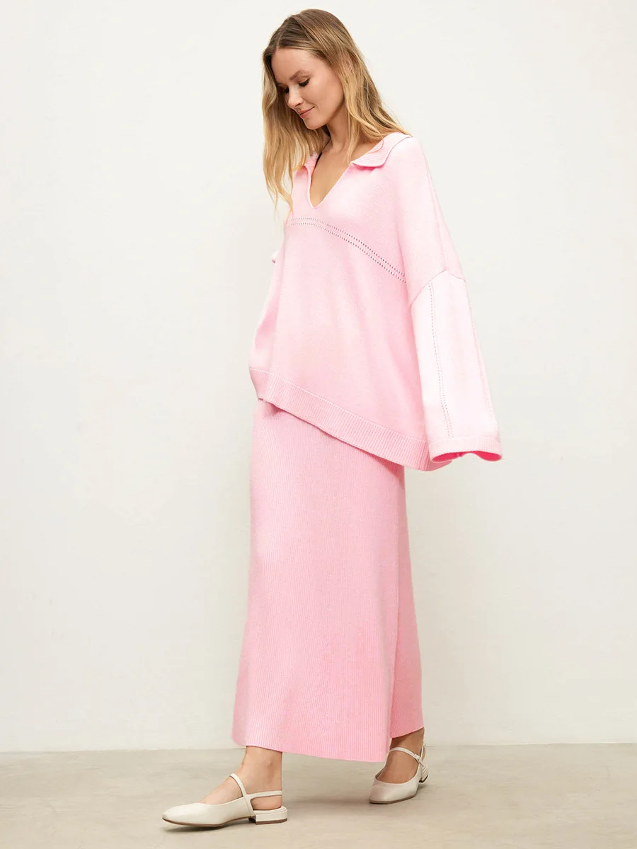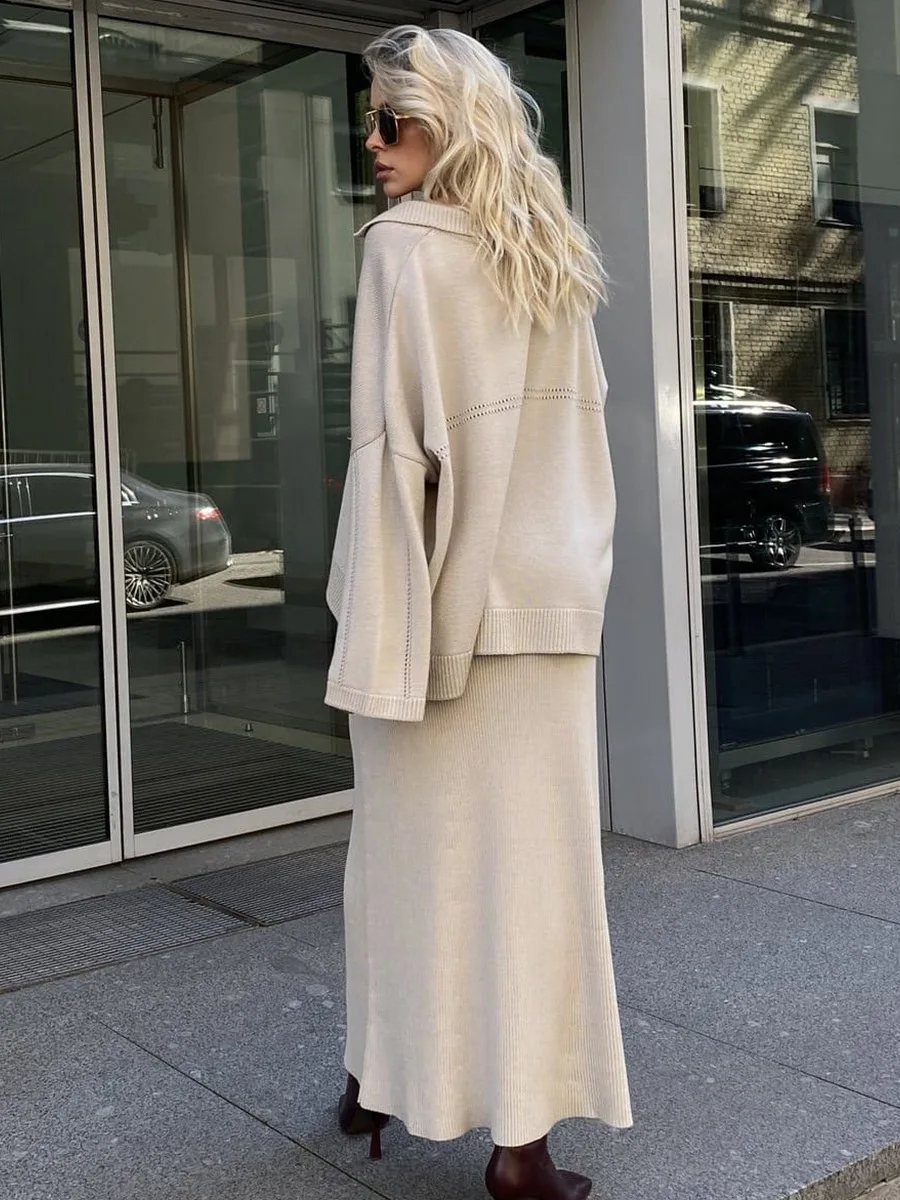BKQU Knitted Sweater Skirt Two Pieces Set Women Autumn Winter V-neck Loose Pullover Sexy Long Skirts Suits Elegant Party Outfits