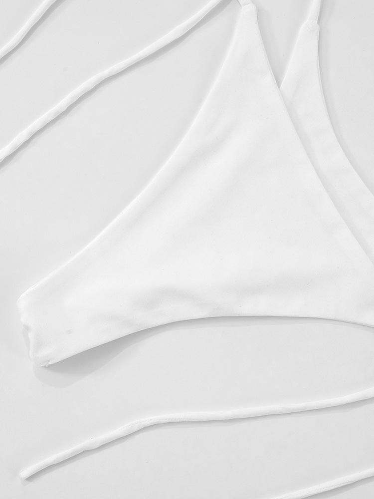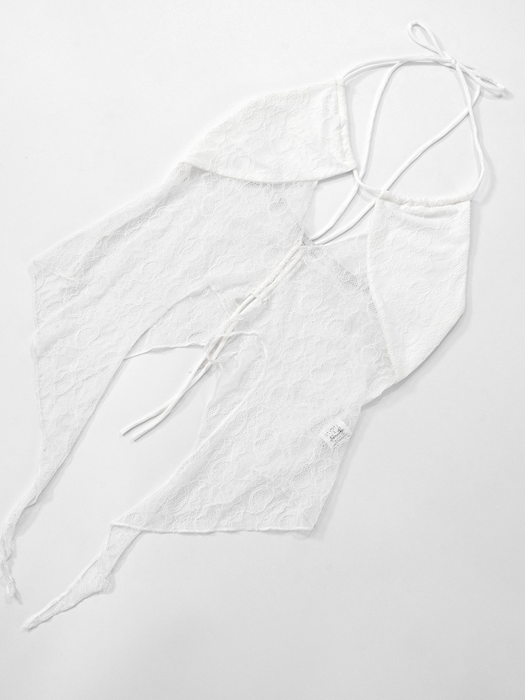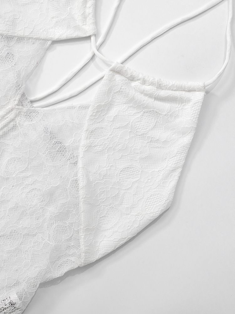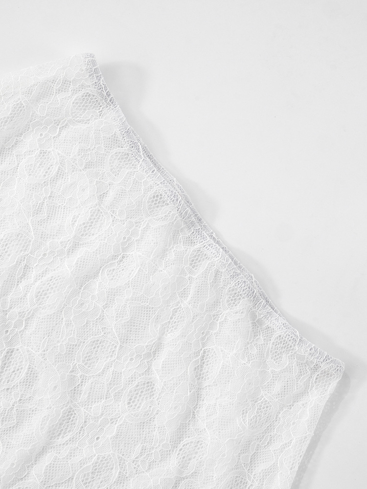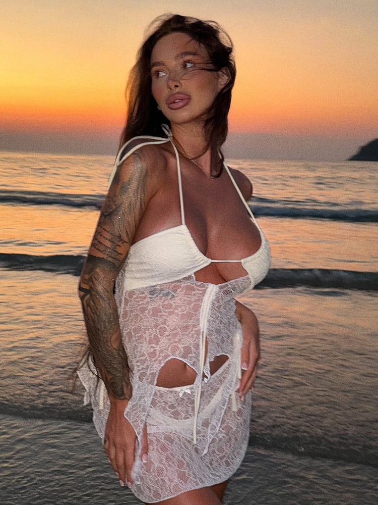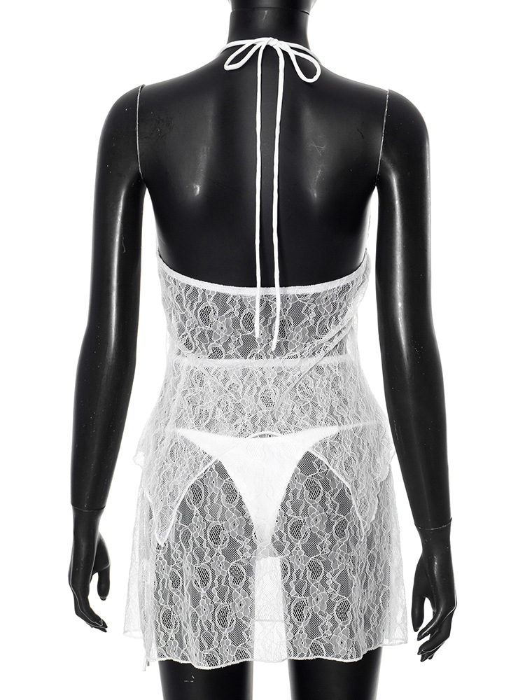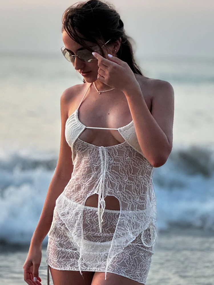 BKQU Lace See-Through 3 Piece Set Women Sexy Hollow Out Beach Outfits Lace-Up Backless Irregular Top And Mini Skirt Vacation Set