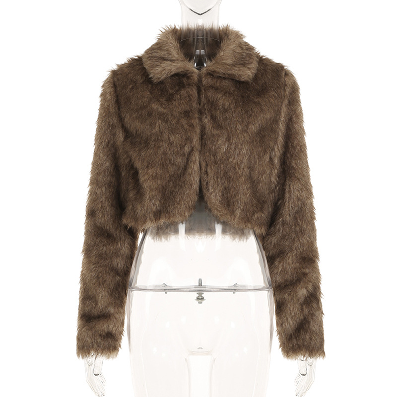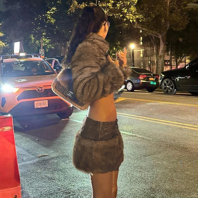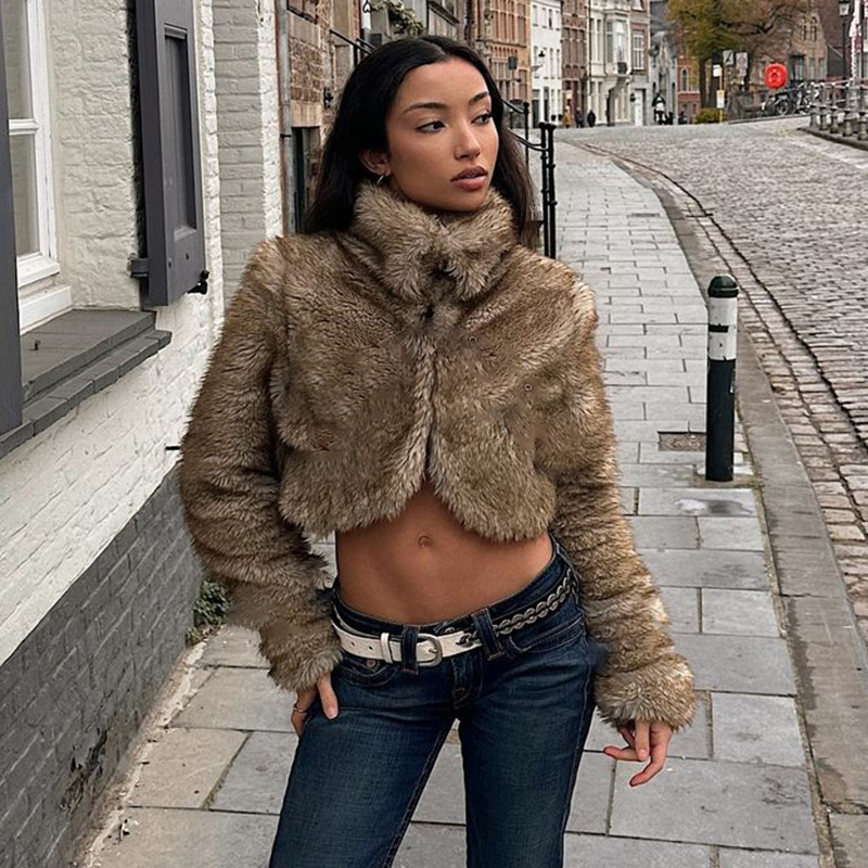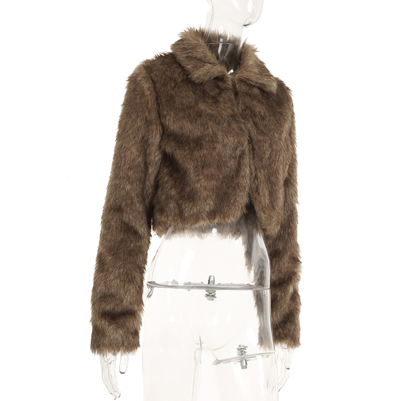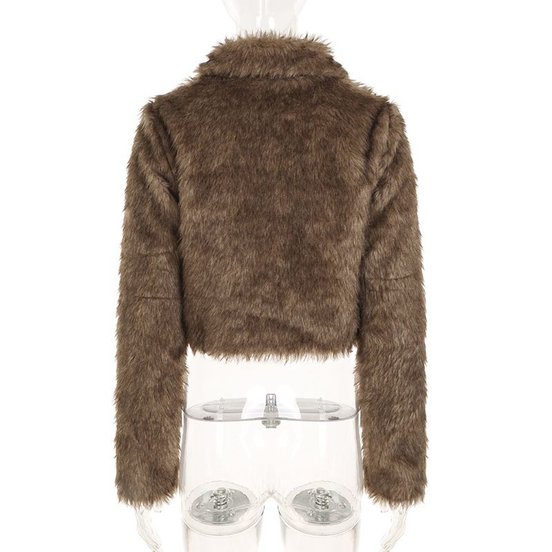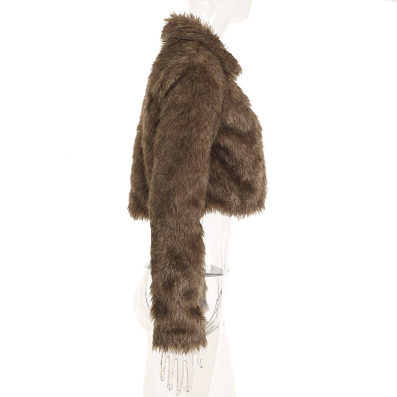 BKQU Leather Splicing Faux Fur 2 Piece Sets Women Autumn Winter Fluffy Warm Lapel Full Sleeve Crop Jacket Low Waist Mini Skirts