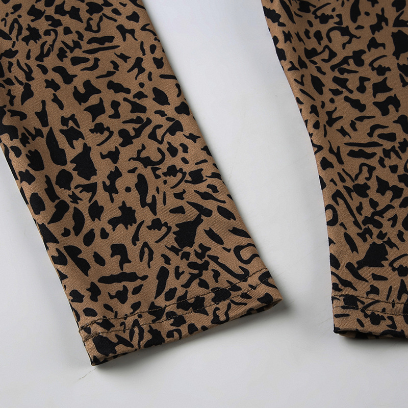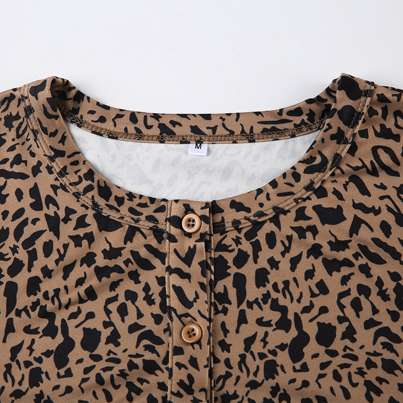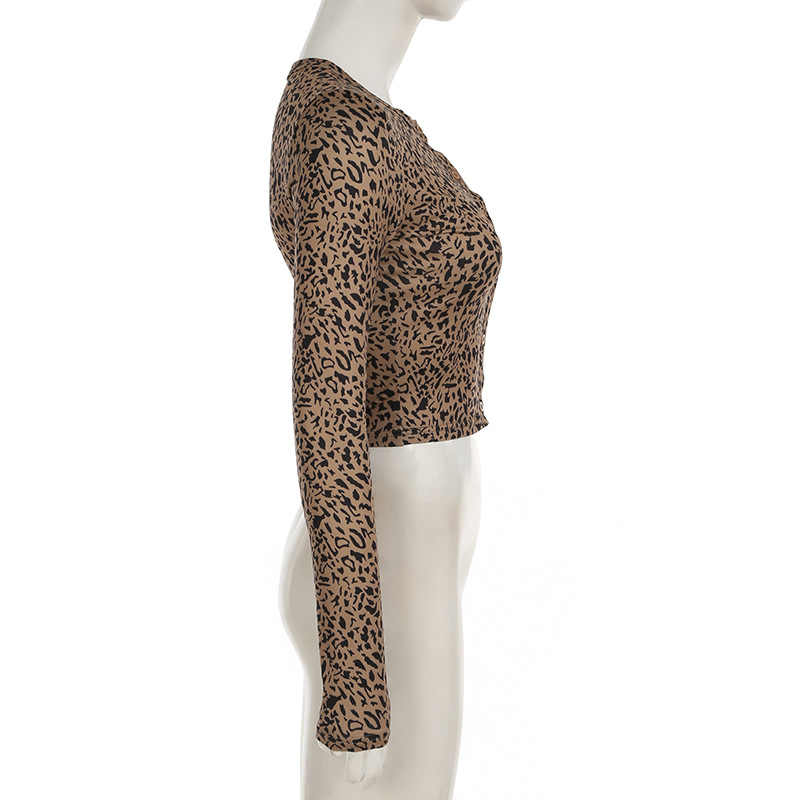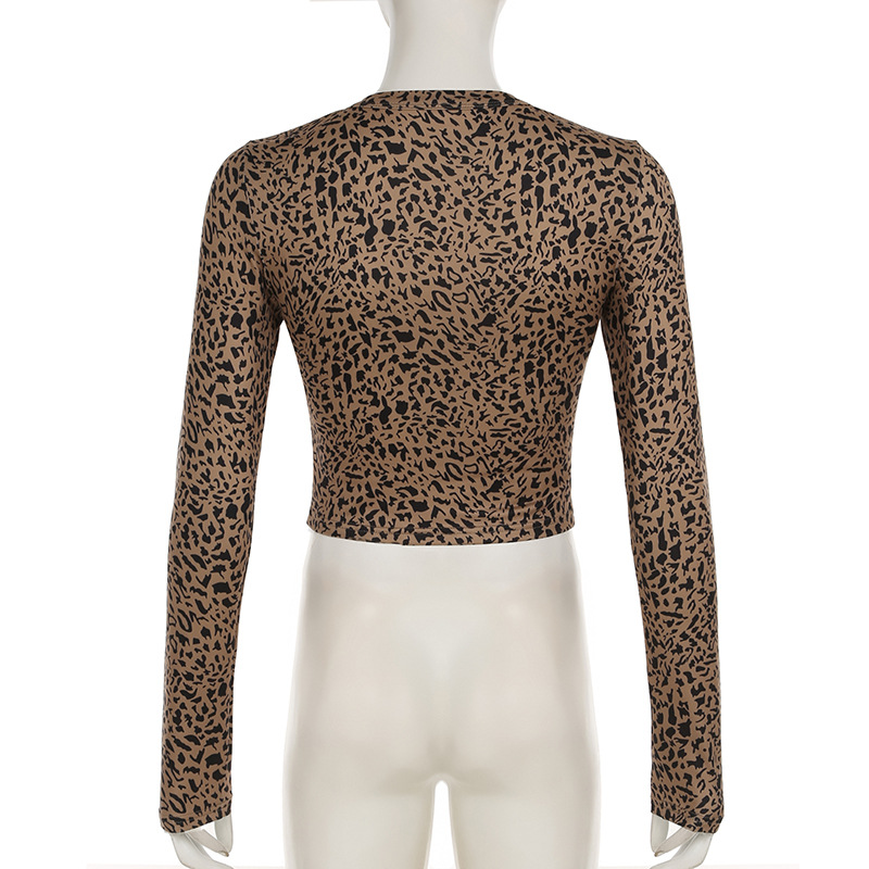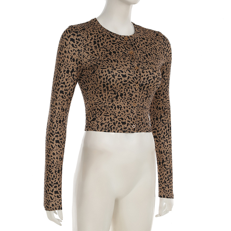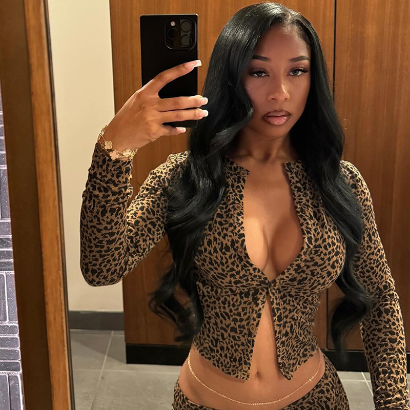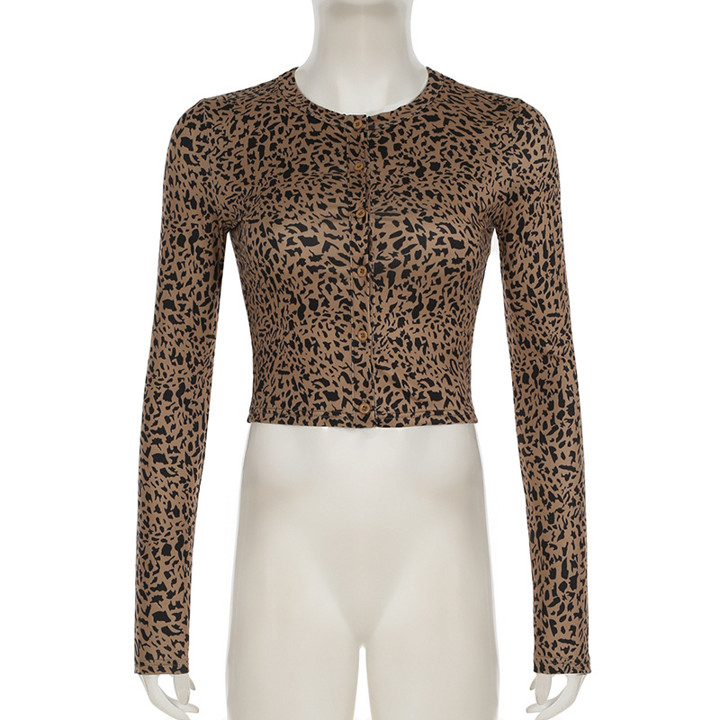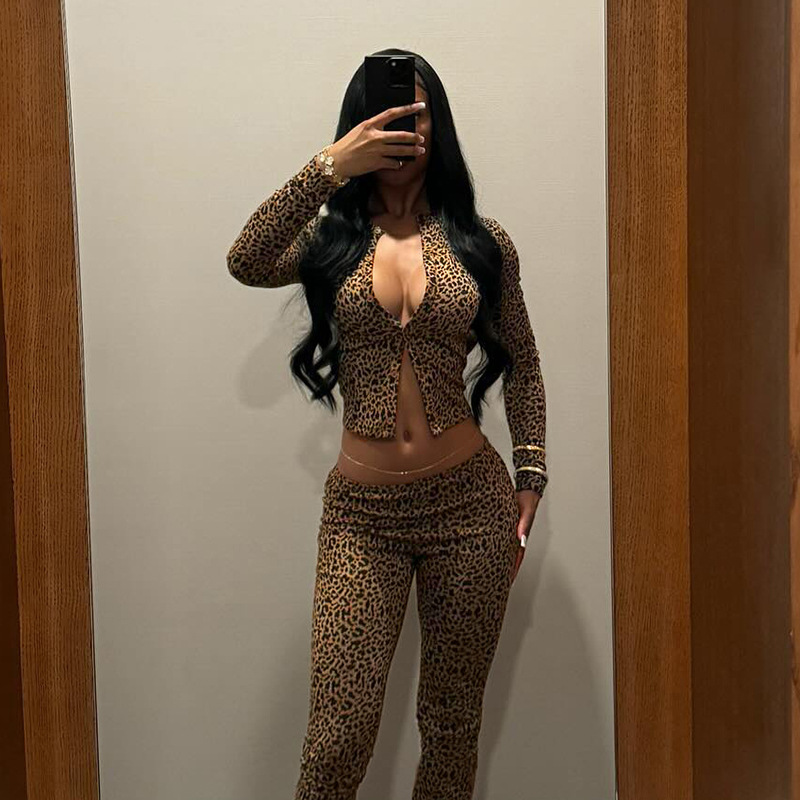BKQU Leopard Print 2 Piece Set Women Long-Sleeved Button Crop Top High Waist Leggings Stretch Sexy Midnight Club Matching Suits