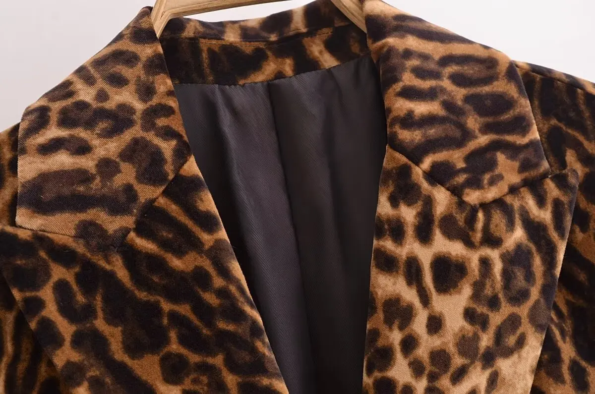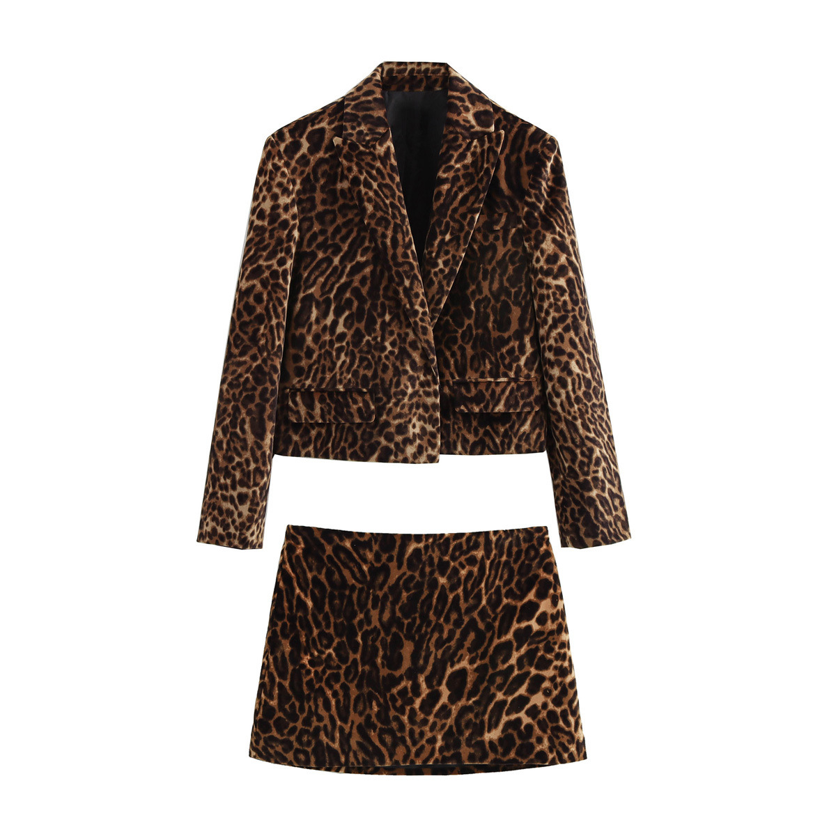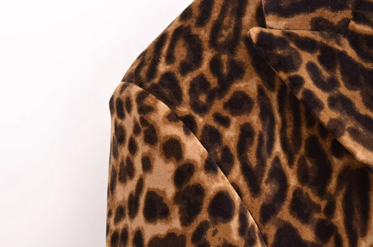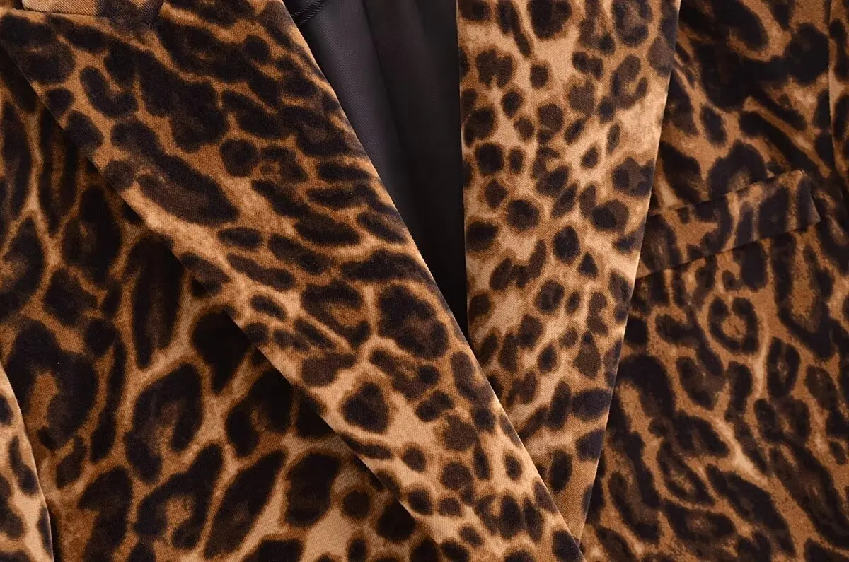 BKQU Leopard Print Blazer Skirt Suit Women Fashion Velvet Long Sleeve Crop Jacket Hip Package Mini Skirt Two Piece Lady Outfits