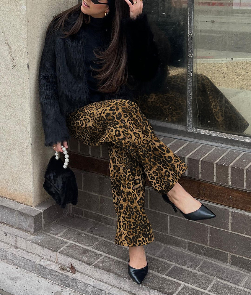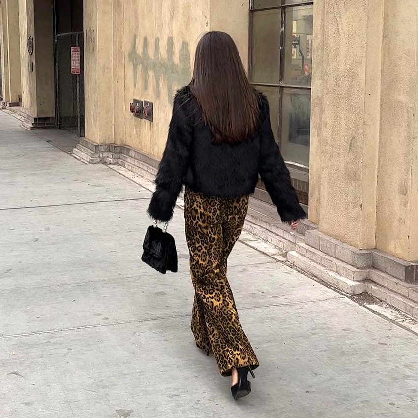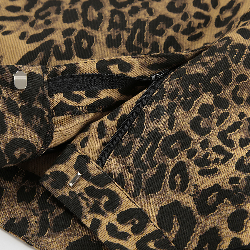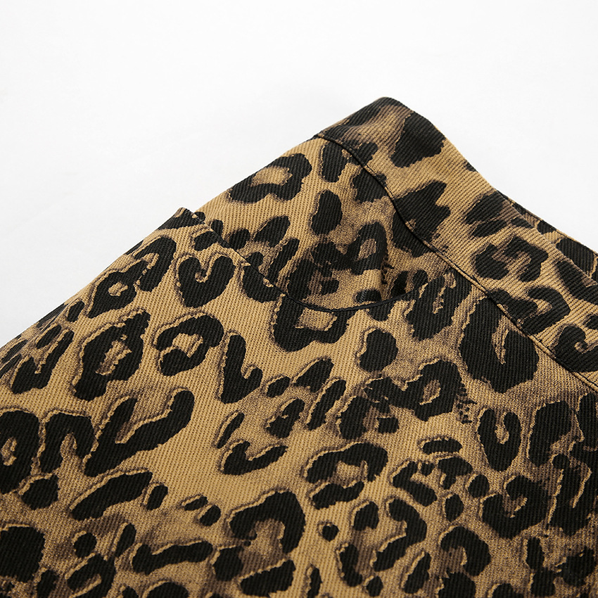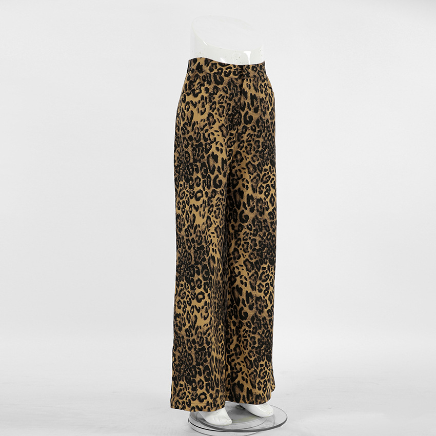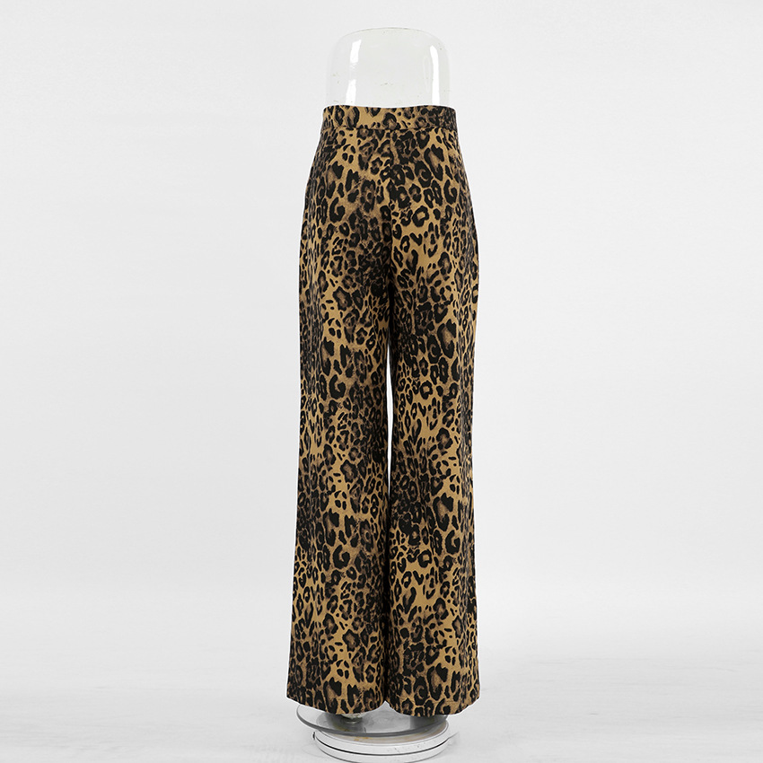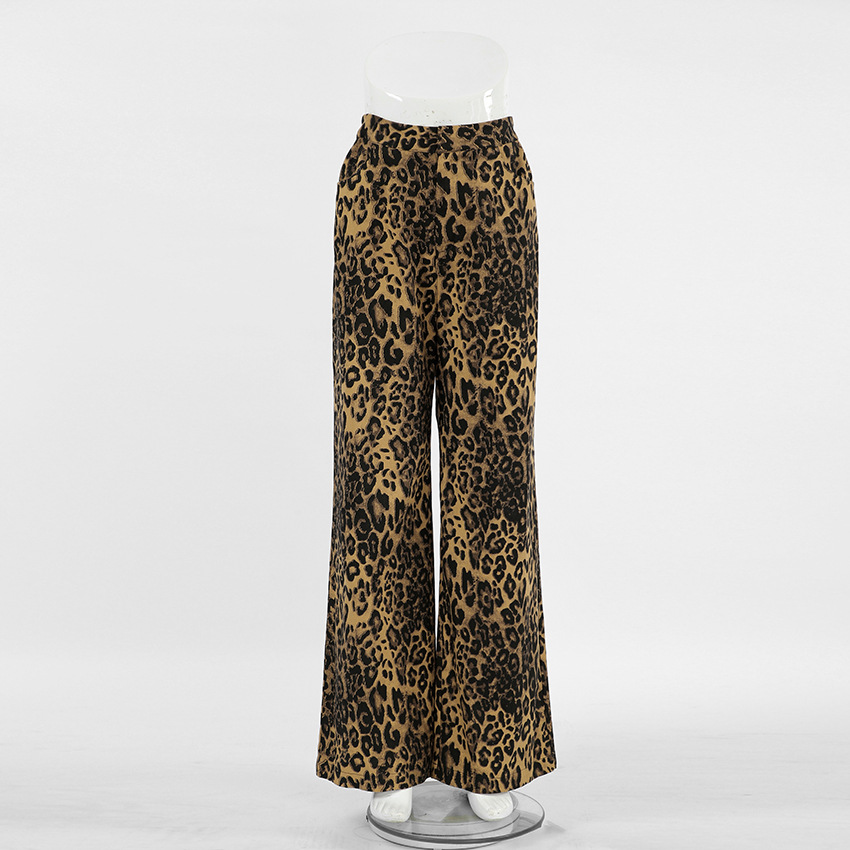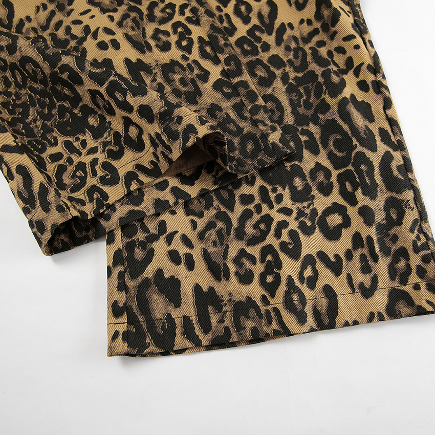 BKQU Leopard Print Wide Leg Pants Women Cotton Jeans Fashion High Waist Pocket Baggy Casual Straight Trousers Y2k Retro Street