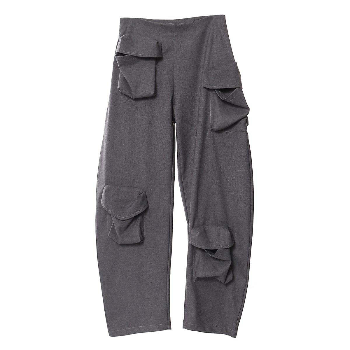 BKQU Multi Pockets Cargo Pants Women Gray Baggy Sweatpants 2025 Streetwear Fashion Low Waist Oversized Joggers Straight Trousers