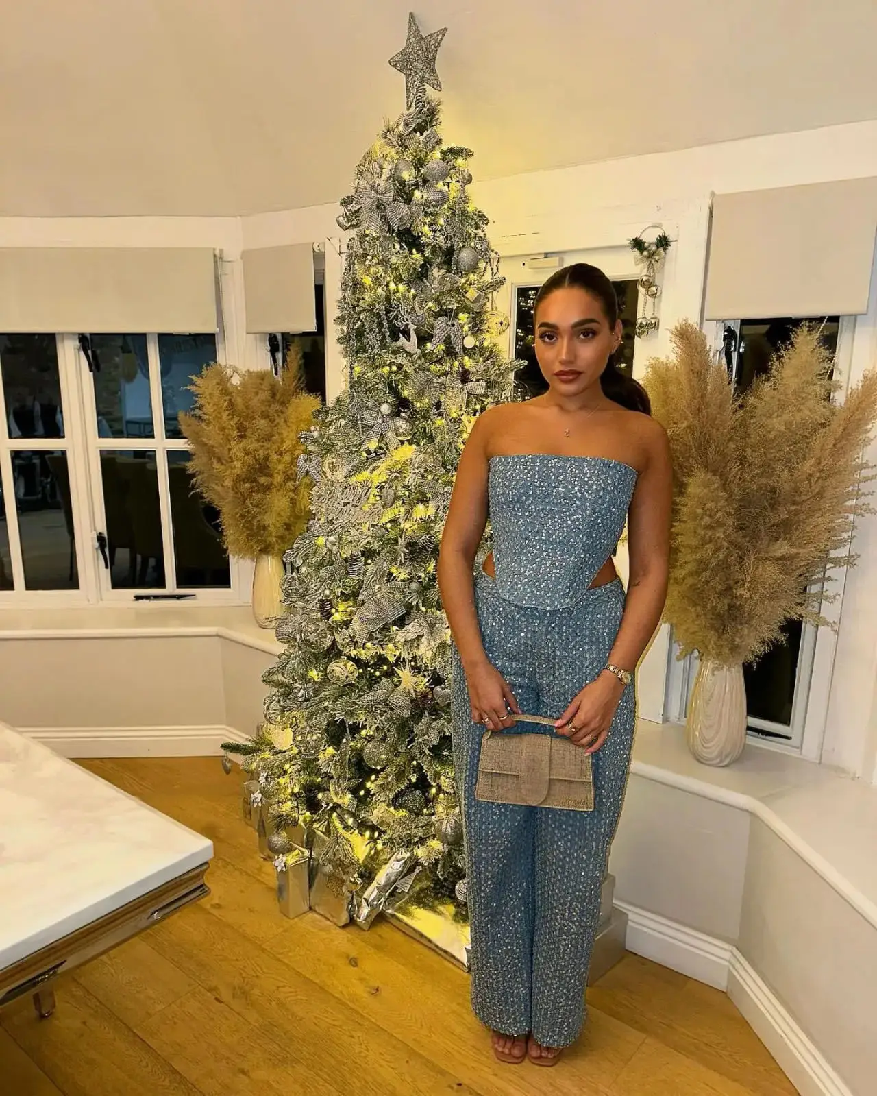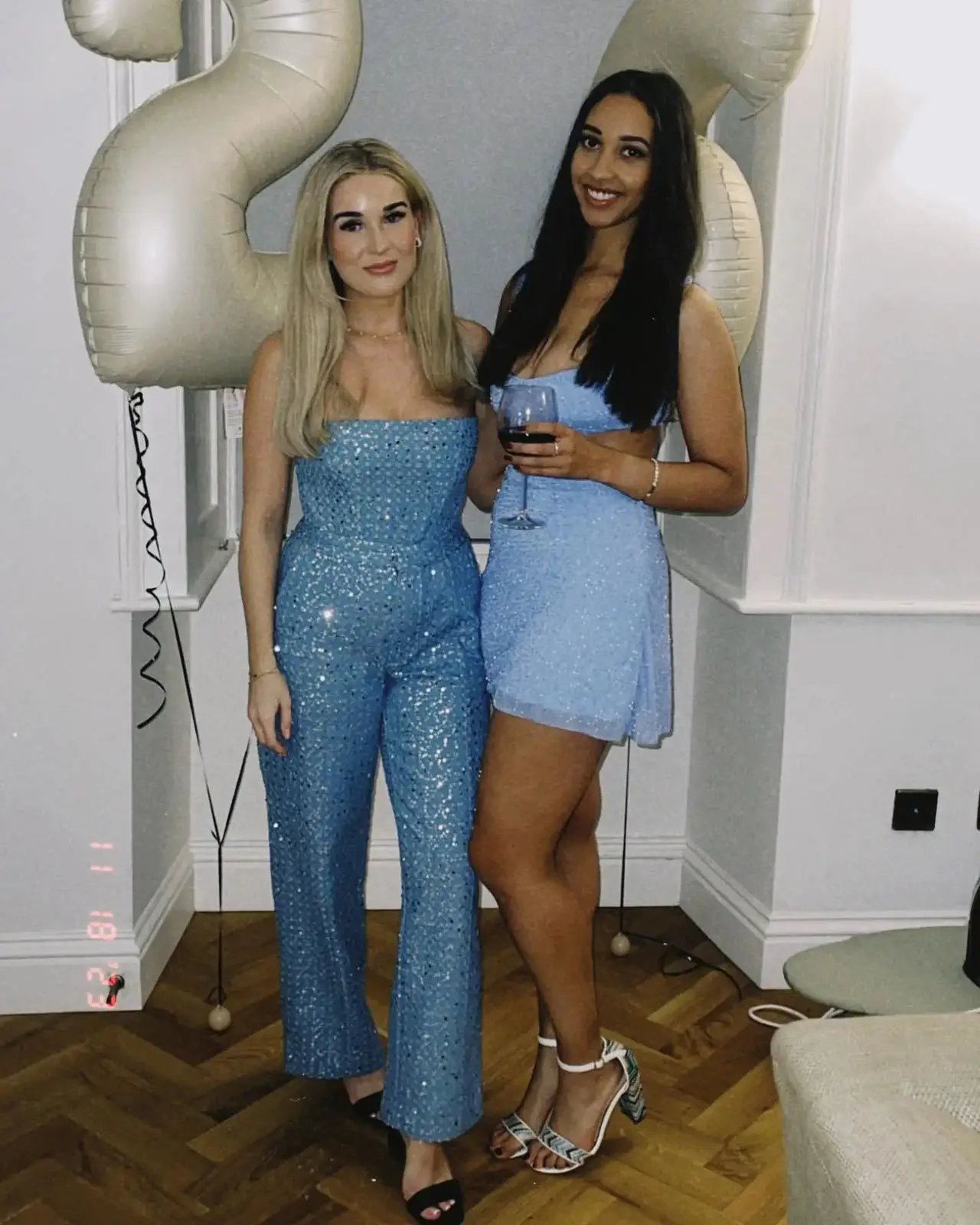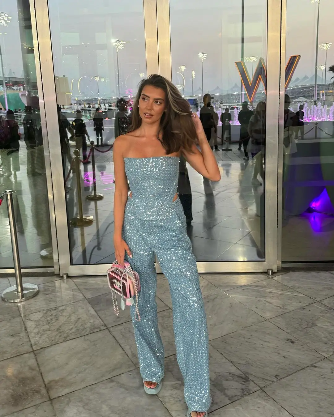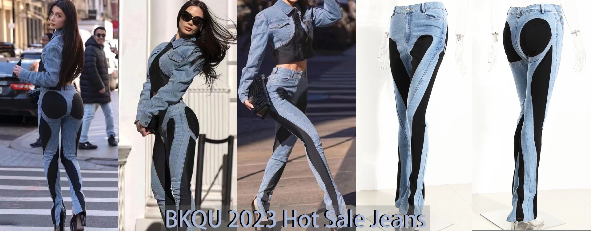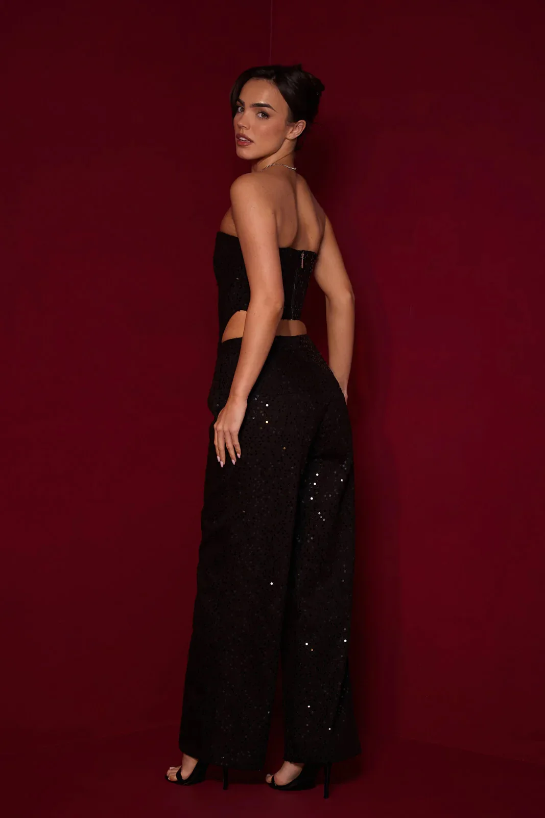 BKQU Pants Set Women Sequins Zipper Corset Tops and High Waist Wide Leg Jeans 2 Piece Sets Party Club Denim Outfits 2024 Summer