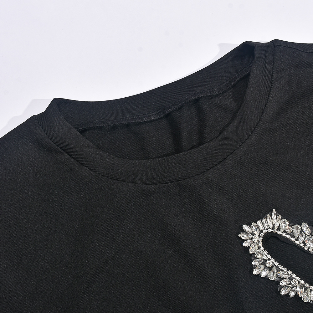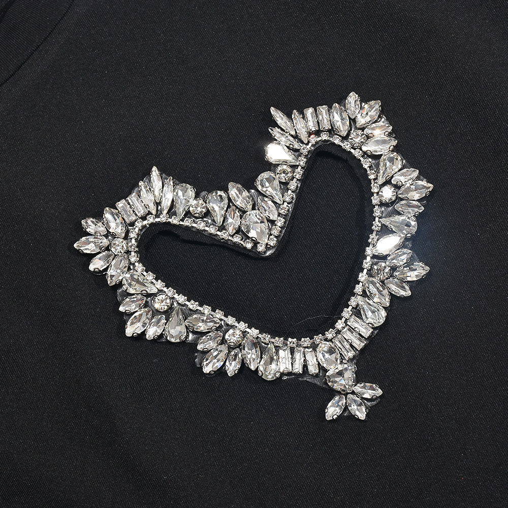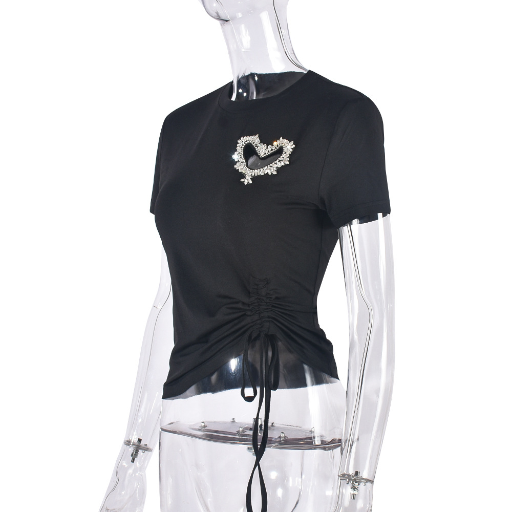 BKQU Rhinestone Fashion T-Shirt Women Y2k Tops Hollow Love Drawstring Casual O-Neck Short Sleeve Tee Tops Daily Streetwear 2025