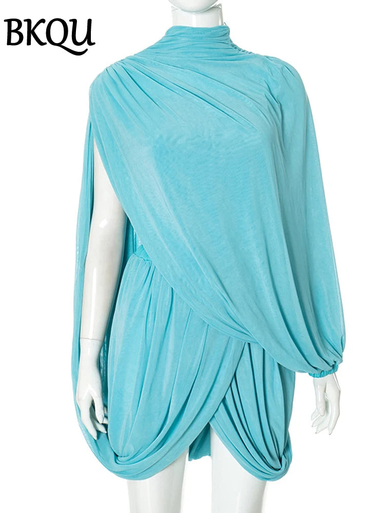 BKQU Ruched Split Skirt Two Piece Set Women Sexy Strapless Vest Long Sleeve Shawl And Mini Skirts Suit Female Party Club Outfits