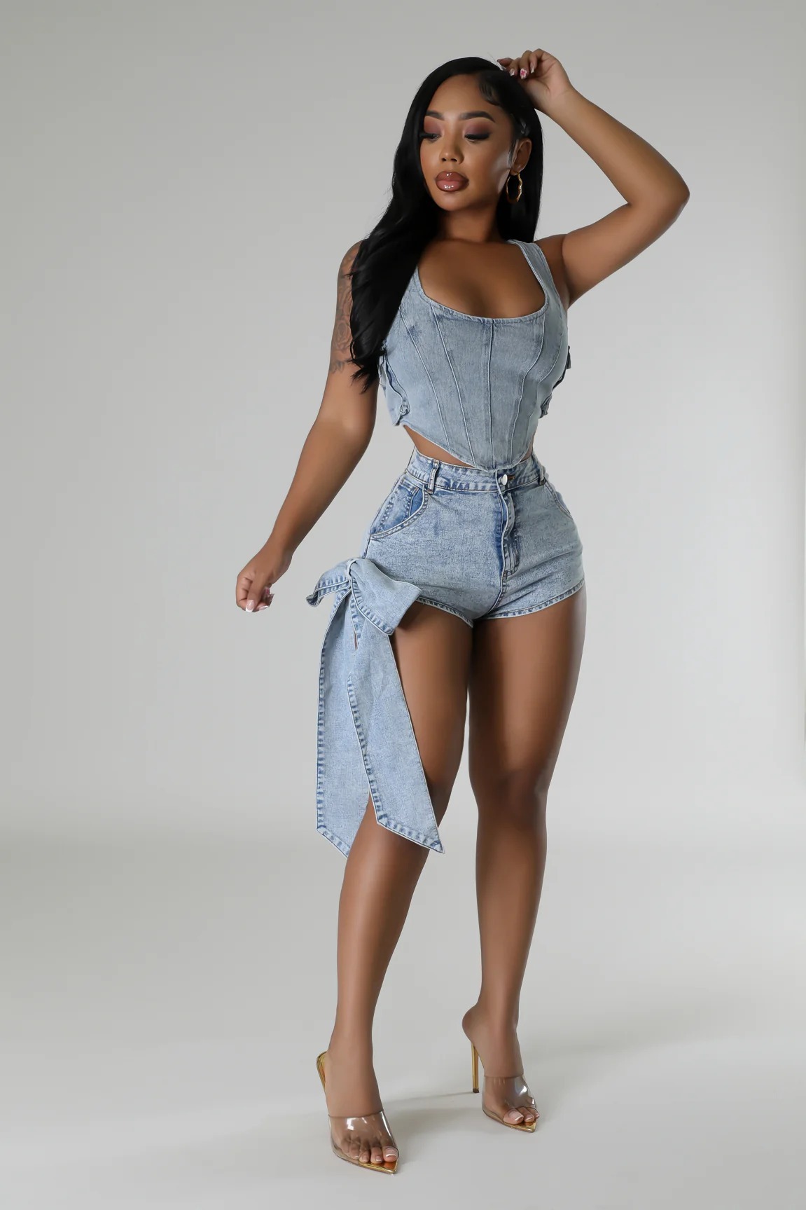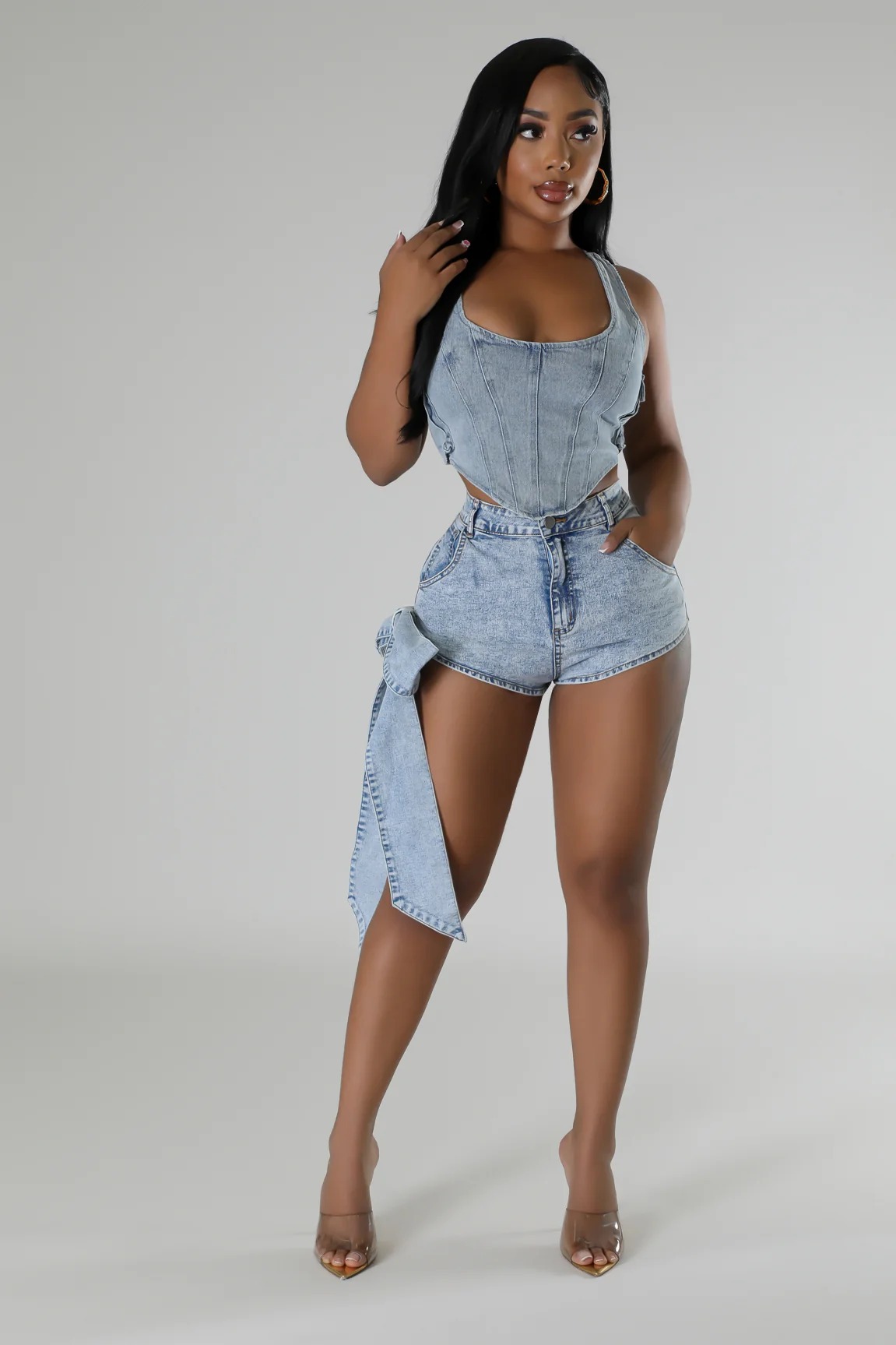 BKQU Sexy 3D Bow Denim Super Shorts Women's Summer Elastic Skinny High Waisted Vintage Blue Short Jeans Y2k American Street Pant