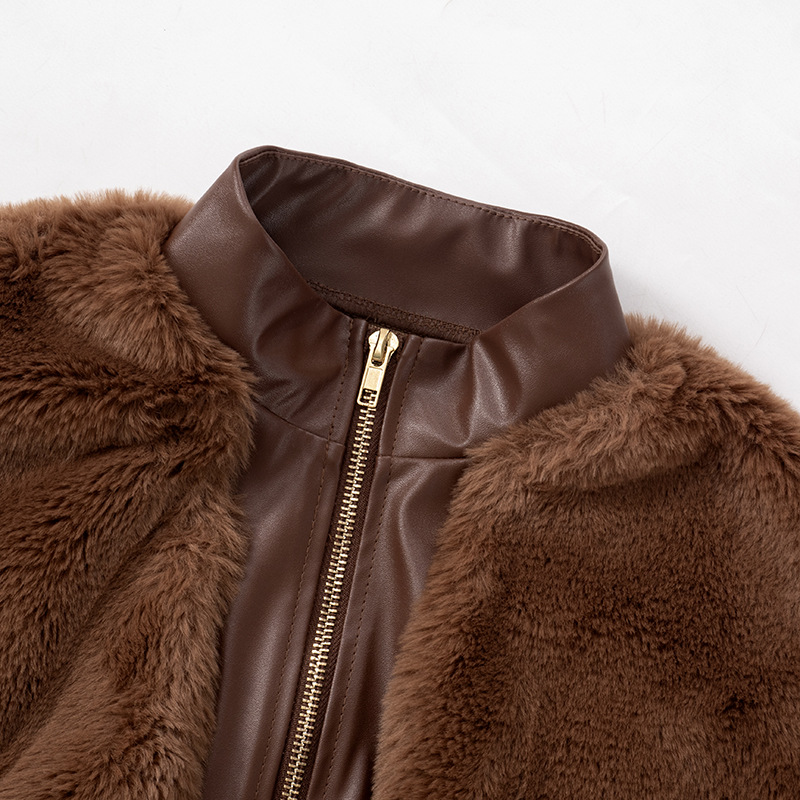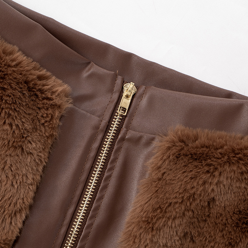 BKQU Sexy Y2K Furry Leather Skirt Suit Women Fashion Zipper Sleeveless Crop Tops Bodycon Mini Skirts Warm Elegant 2 Piece Sets