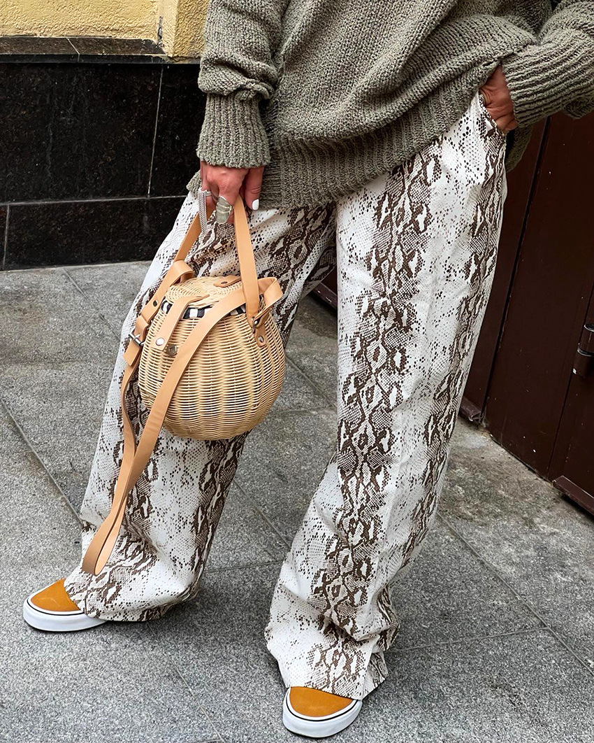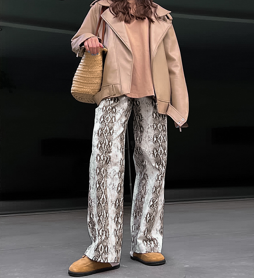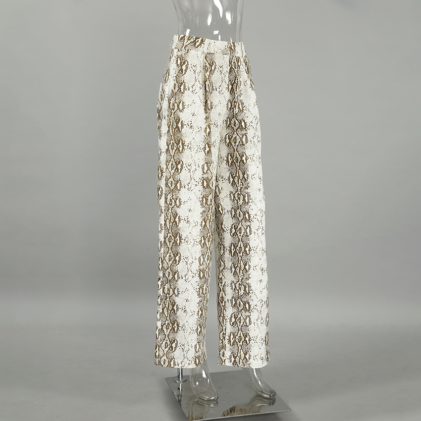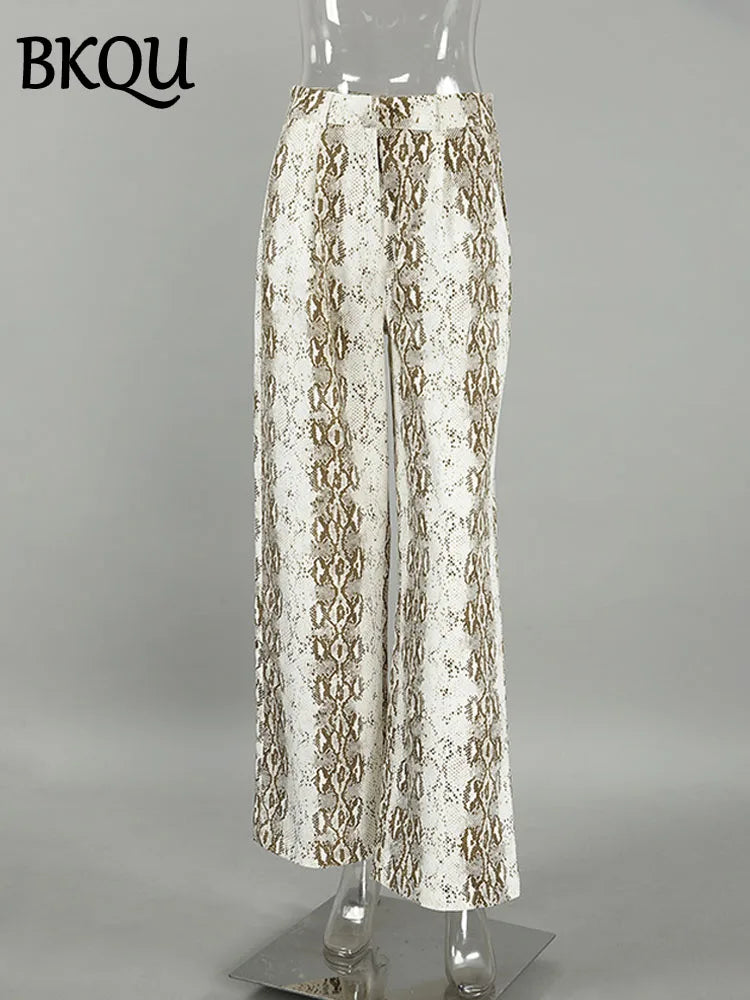 BKQU Snake Printed Fashion Straight Pants Women High Waist Pleated Loose Casual Wide Leg Trousers 2025 Spring Female Streetwear