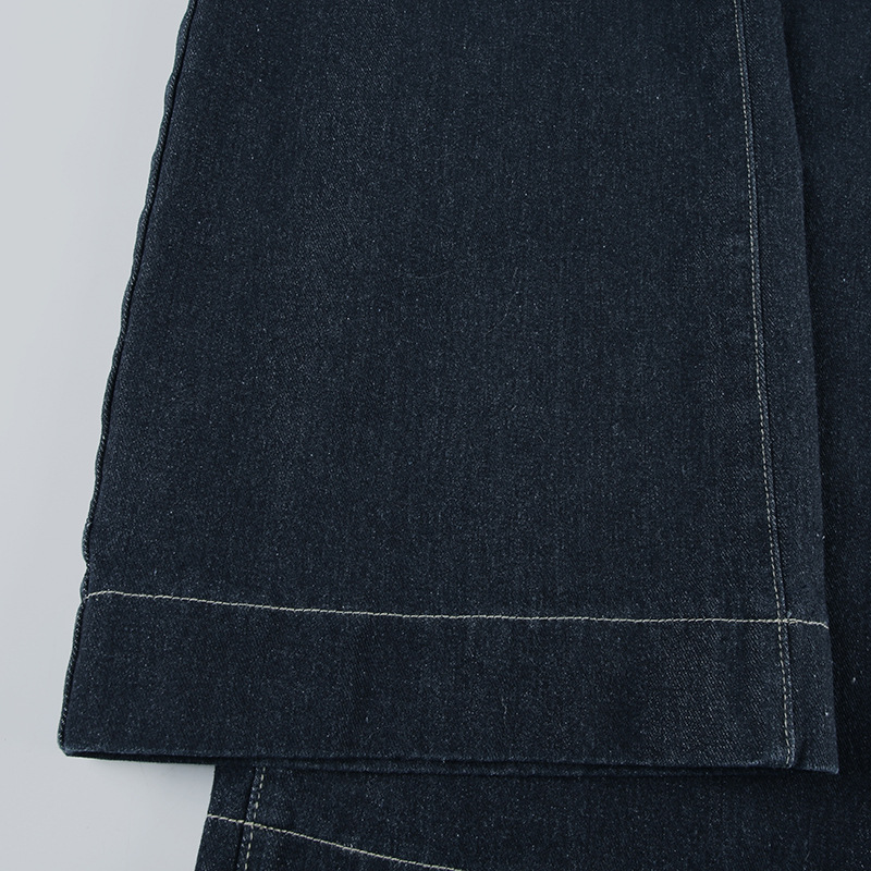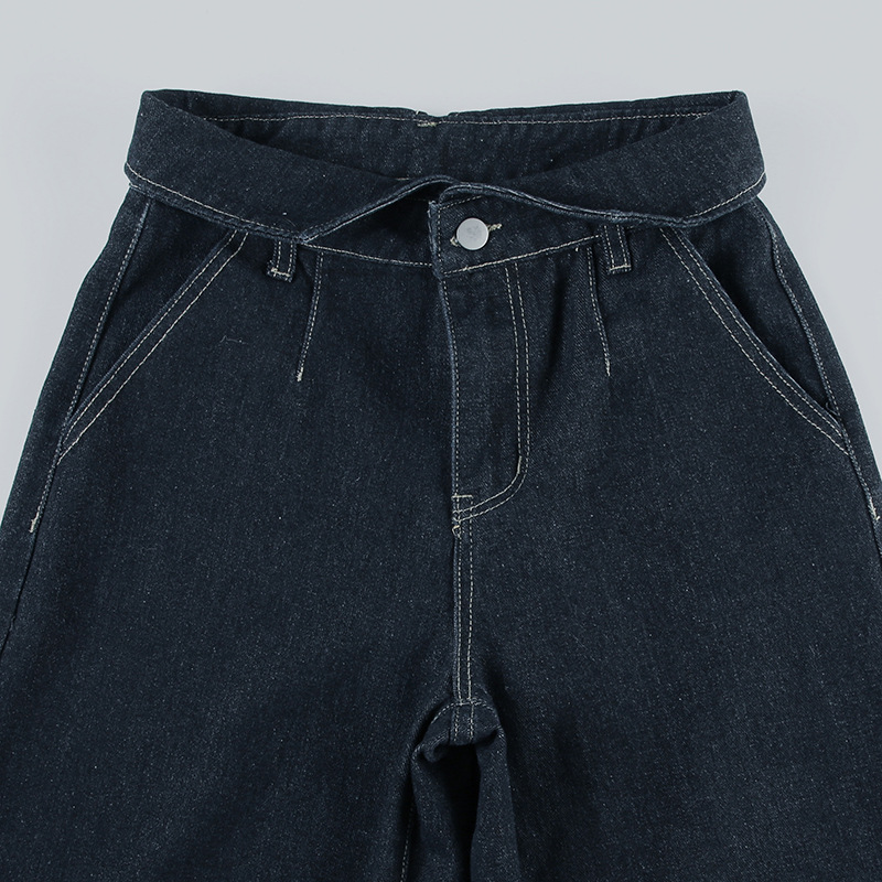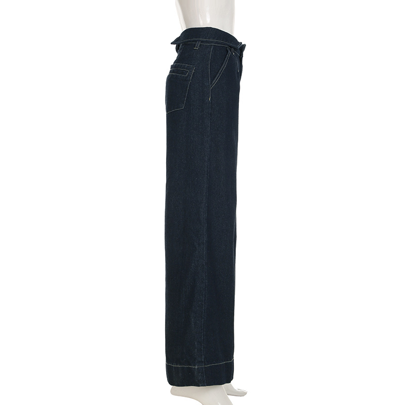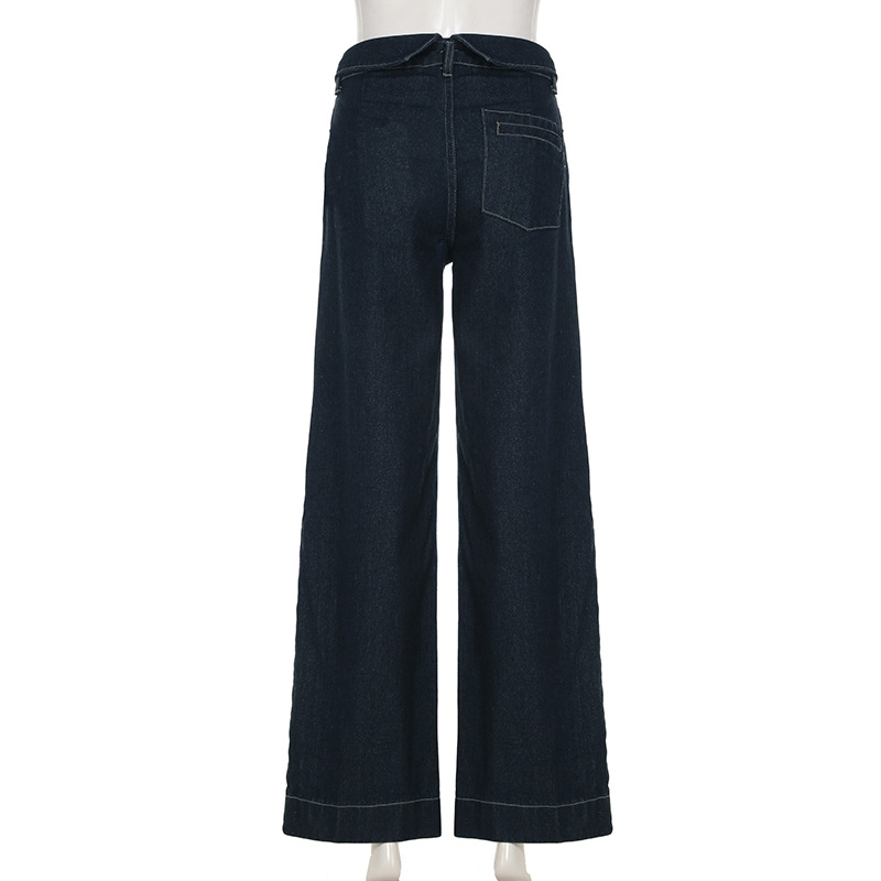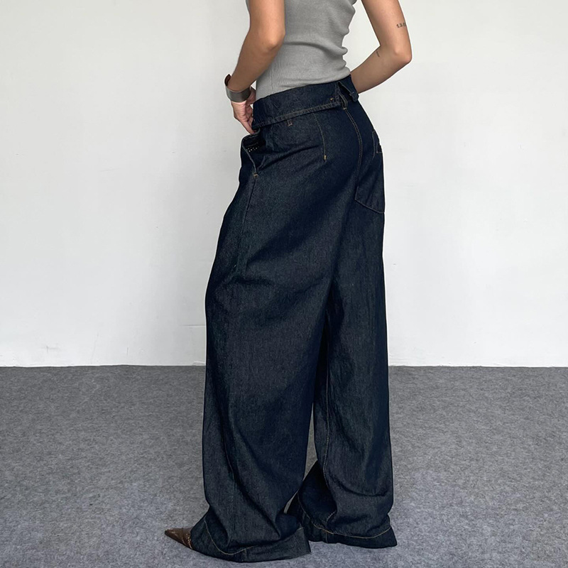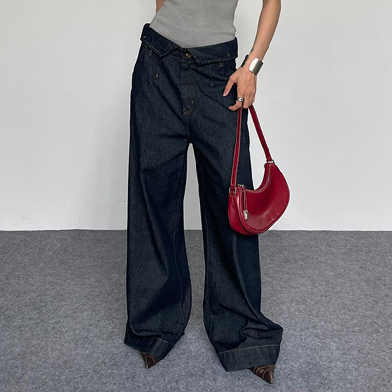 BKQU Straight Jeans Women Streetwear Y2k Fold High Waist Baggy Casual Wide Leg Harajuku Denim Trouser Vintage Grunge Jeans Pants