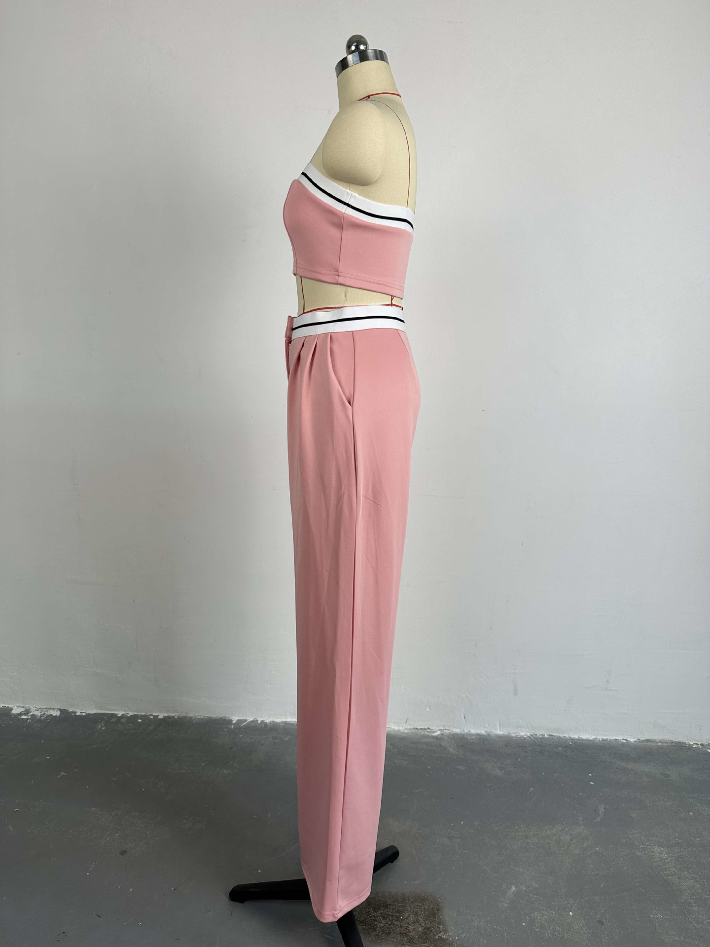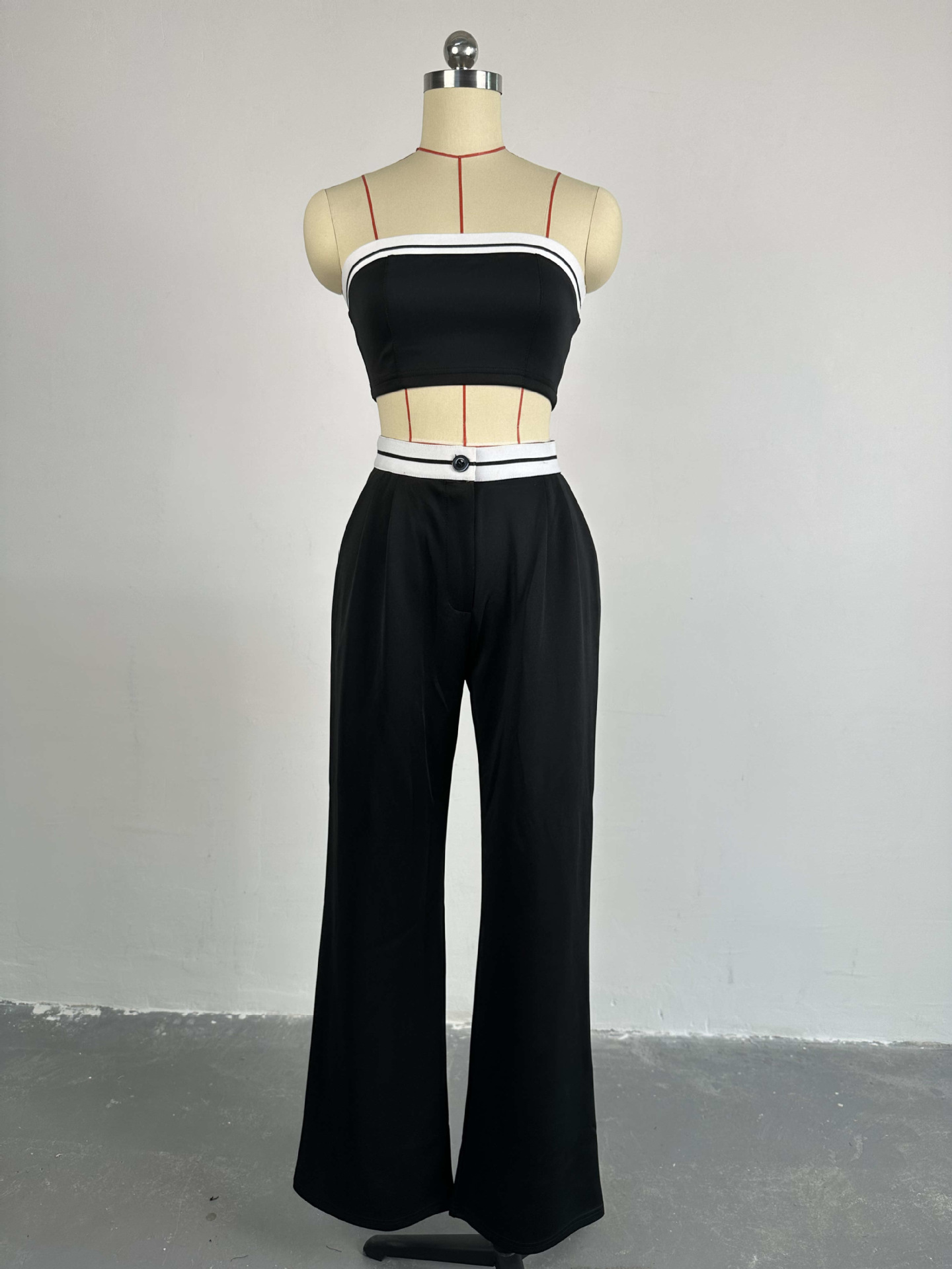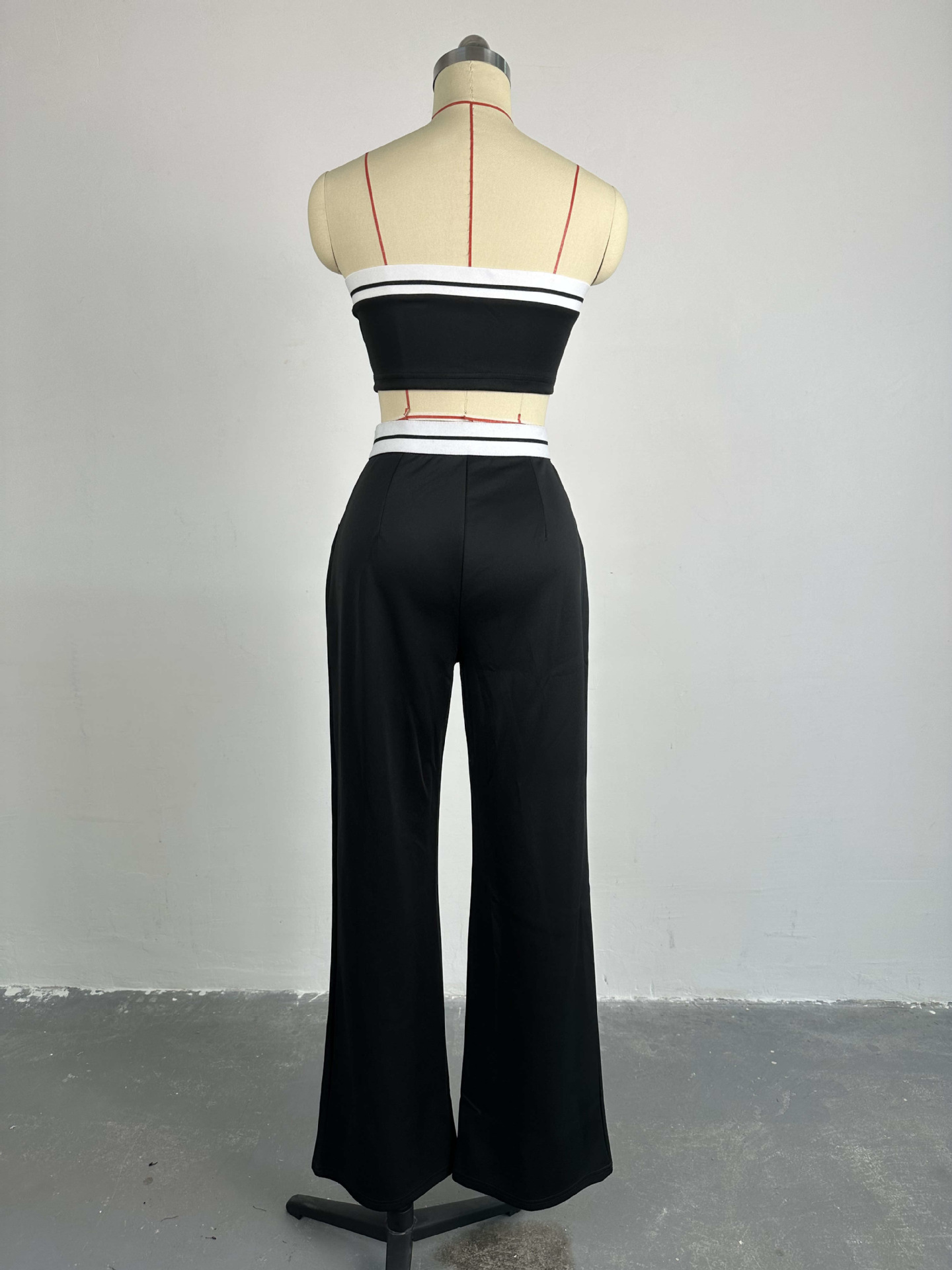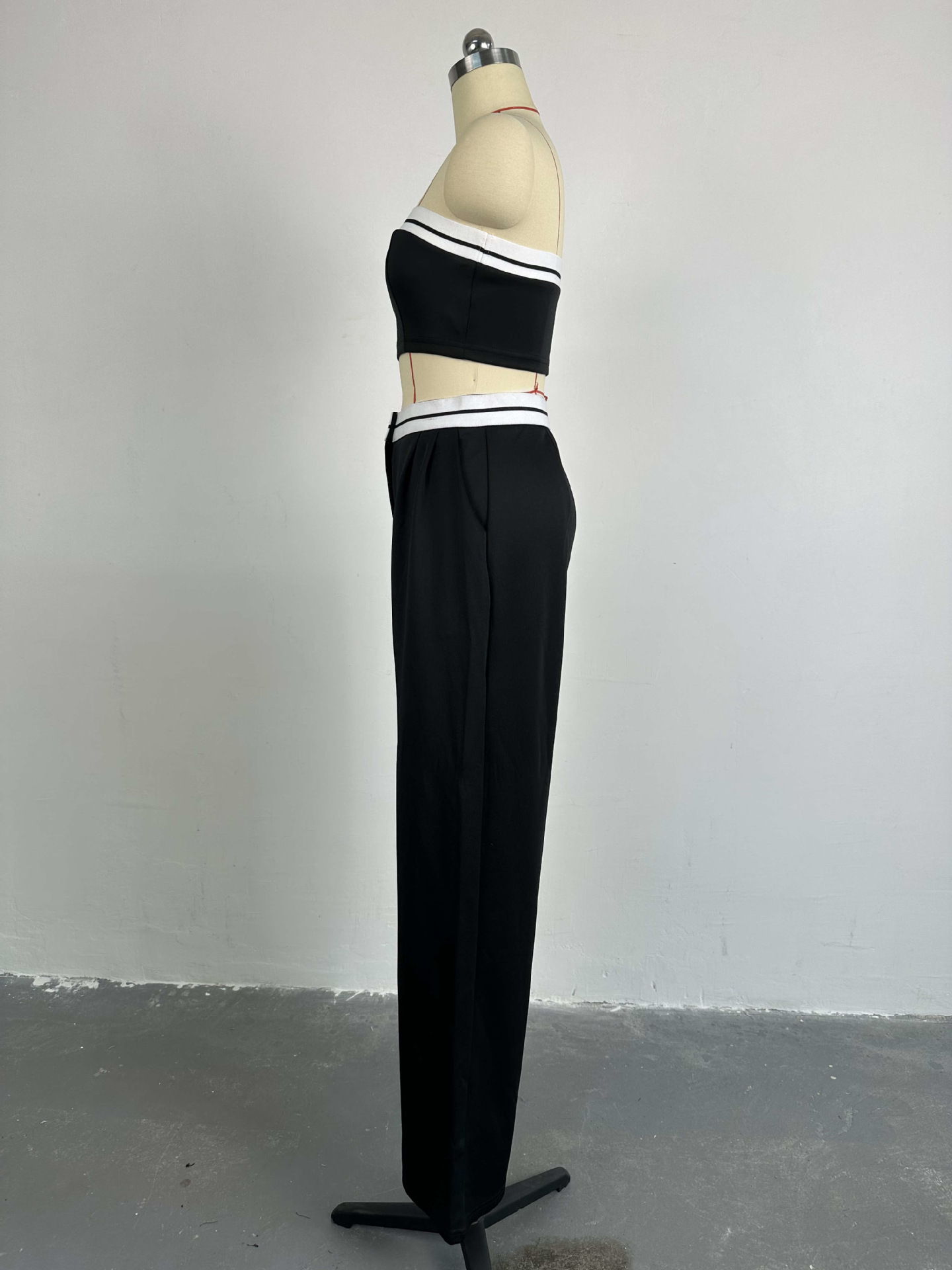 BKQU Strapless Vest Pants 2 Piece Set Women's 2025 Summer Contrast Sports Tube Bra + Wide Leg Trousers Casual Lady Street Outfit