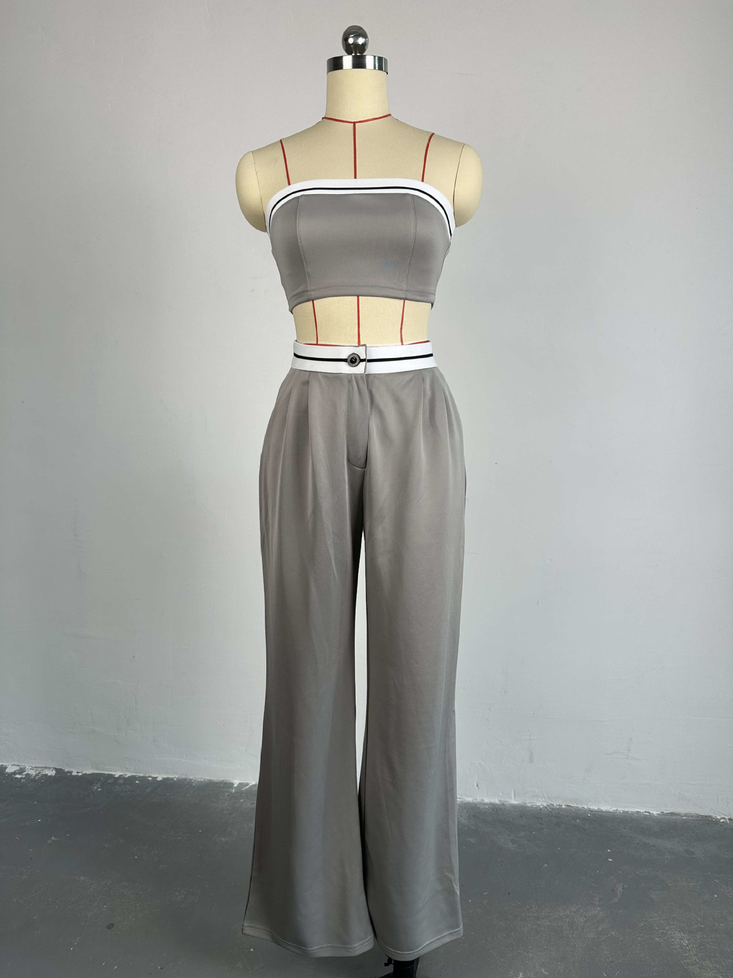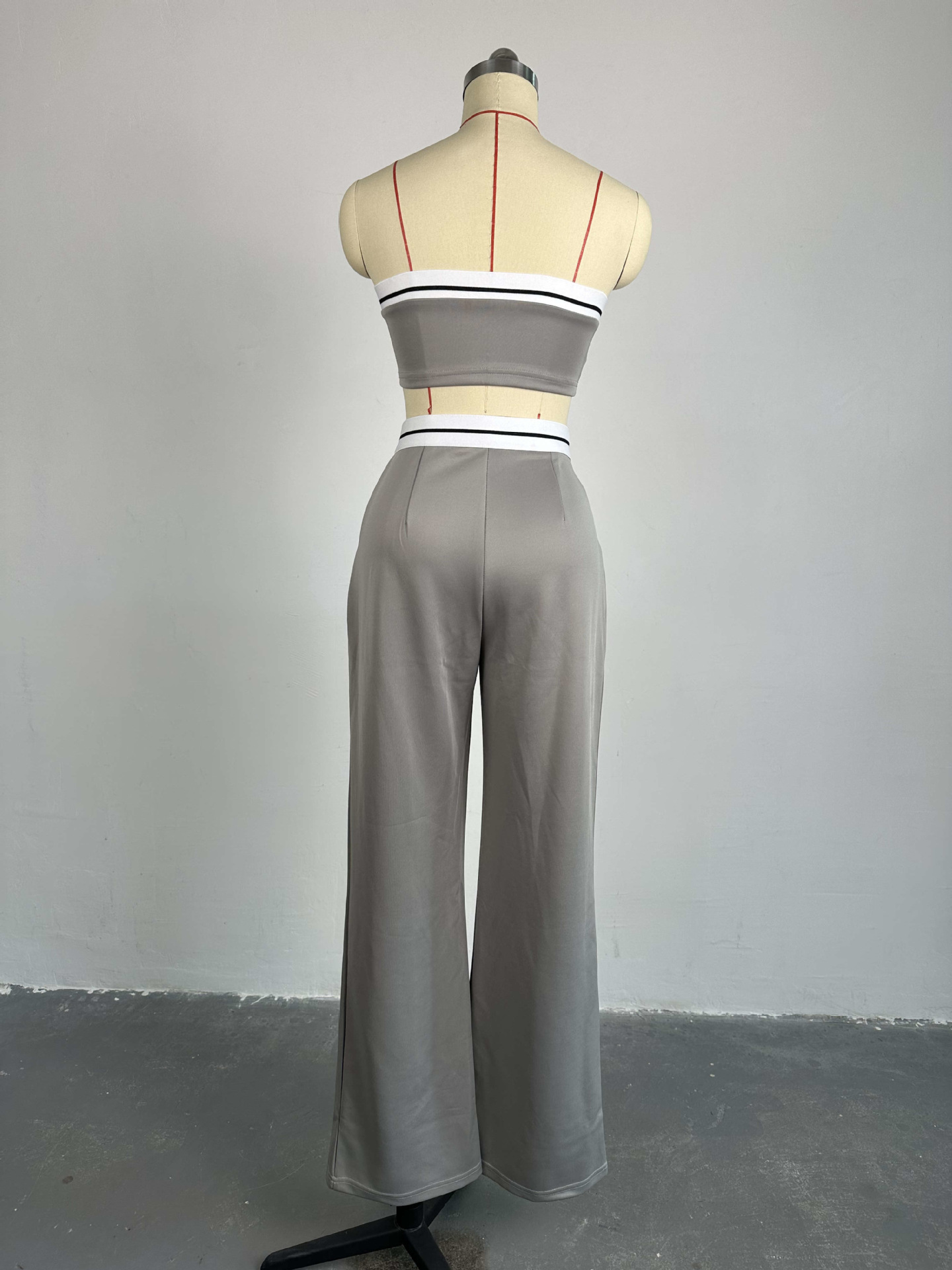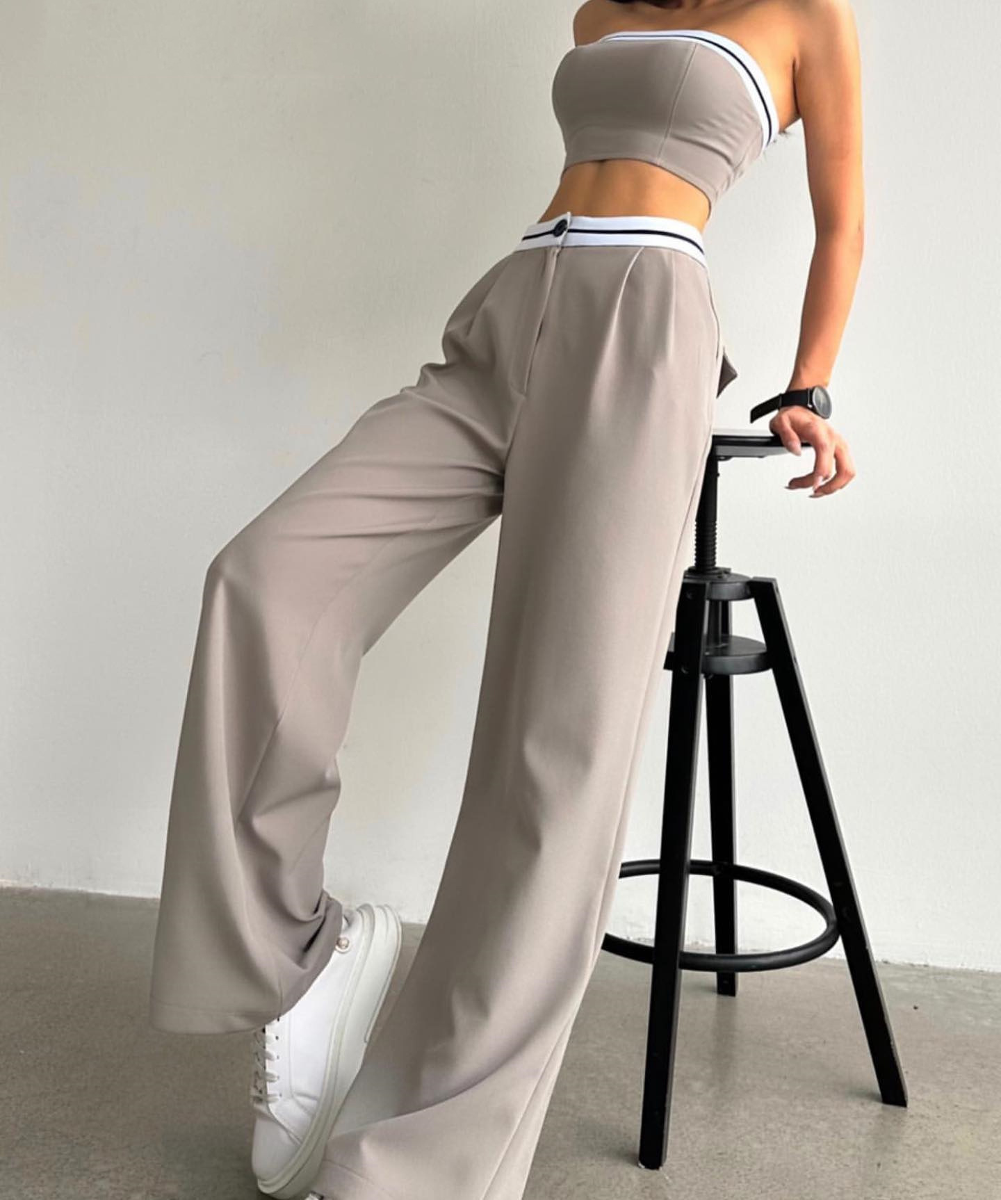 BKQU Strapless Vest Pants 2 Piece Set Women's 2025 Summer Contrast Sports Tube Bra + Wide Leg Trousers Casual Lady Street Outfit