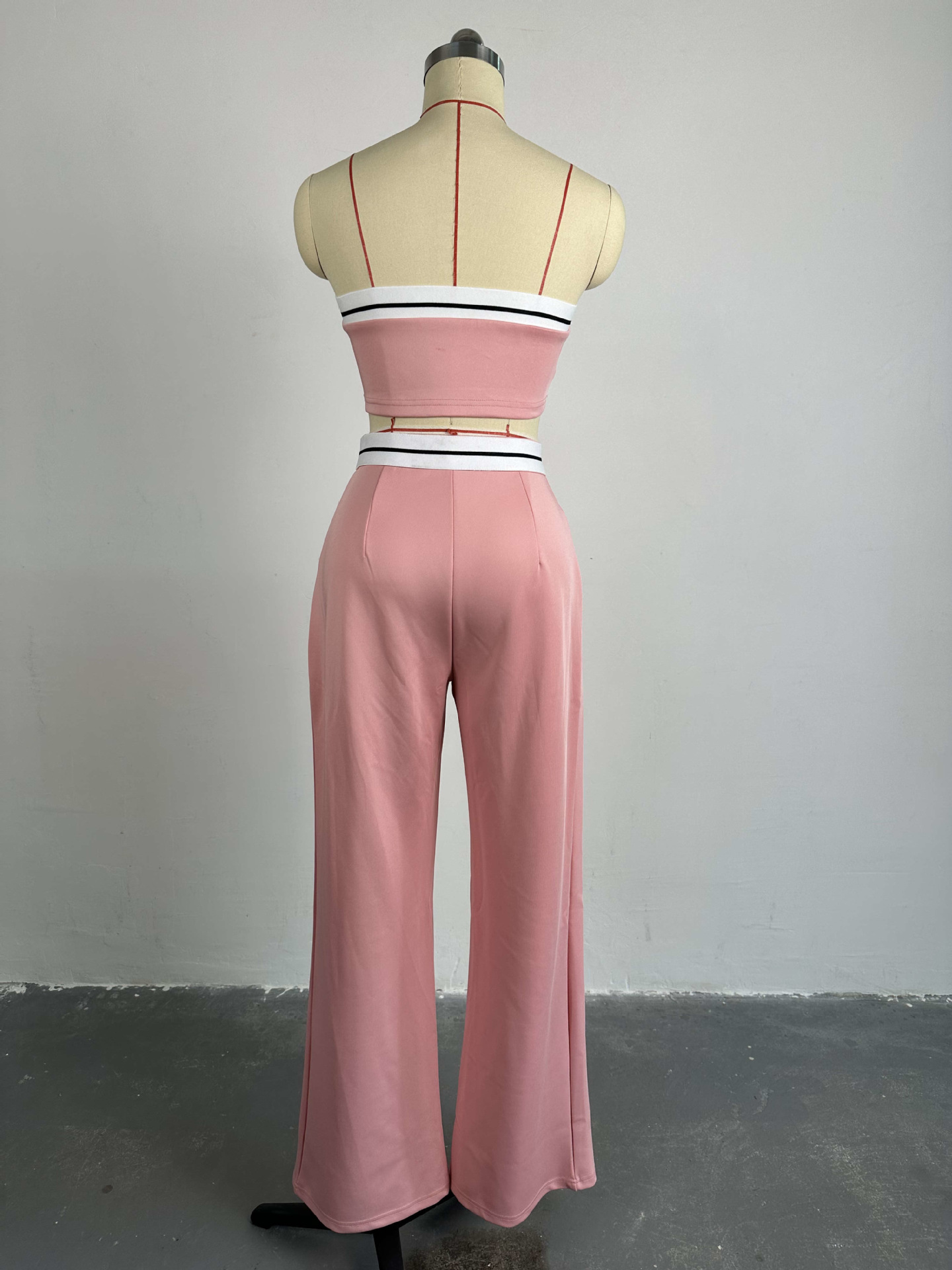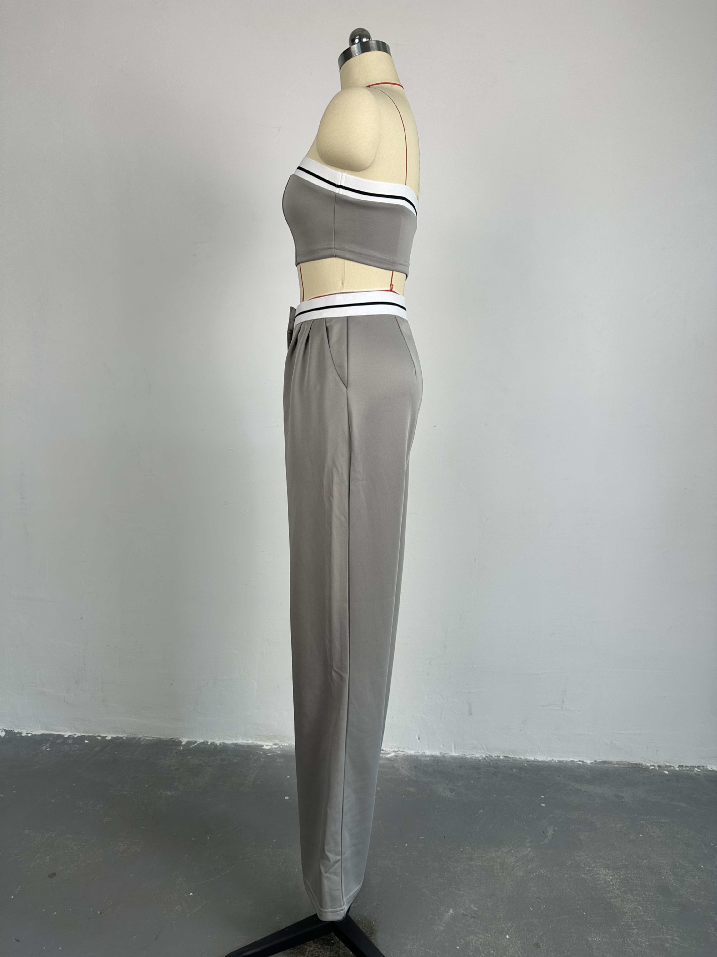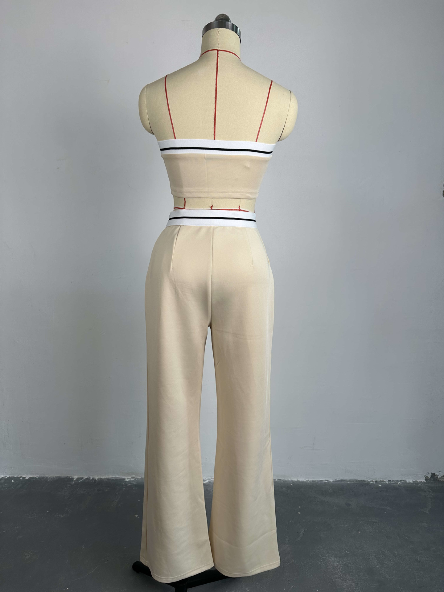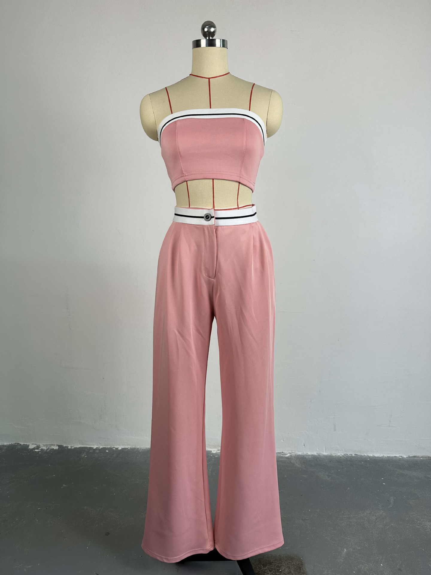 BKQU Strapless Vest Pants 2 Piece Set Women's 2025 Summer Contrast Sports Tube Bra + Wide Leg Trousers Casual Lady Street Outfit