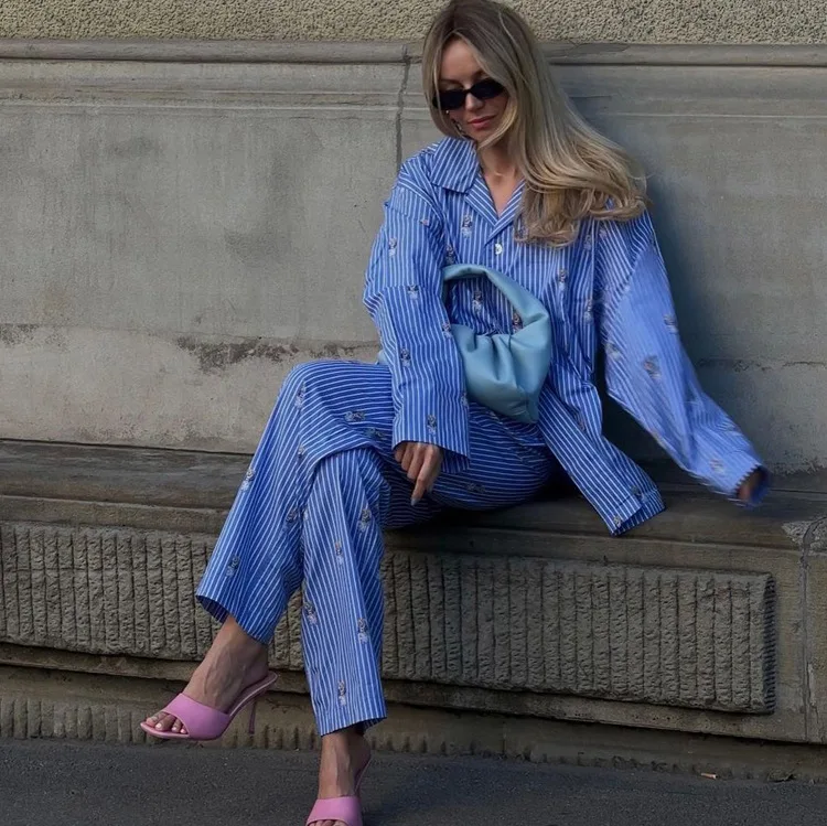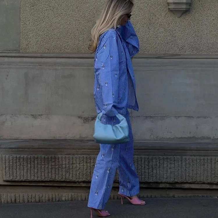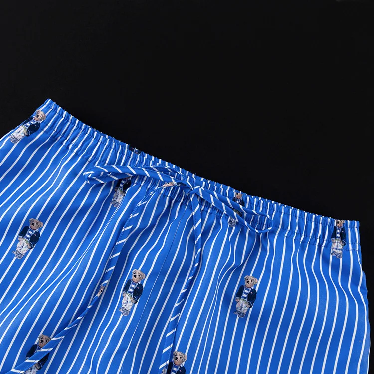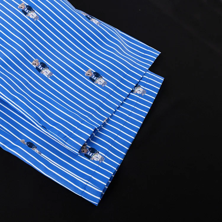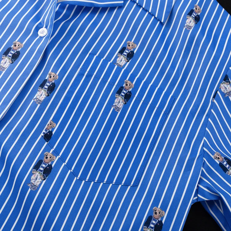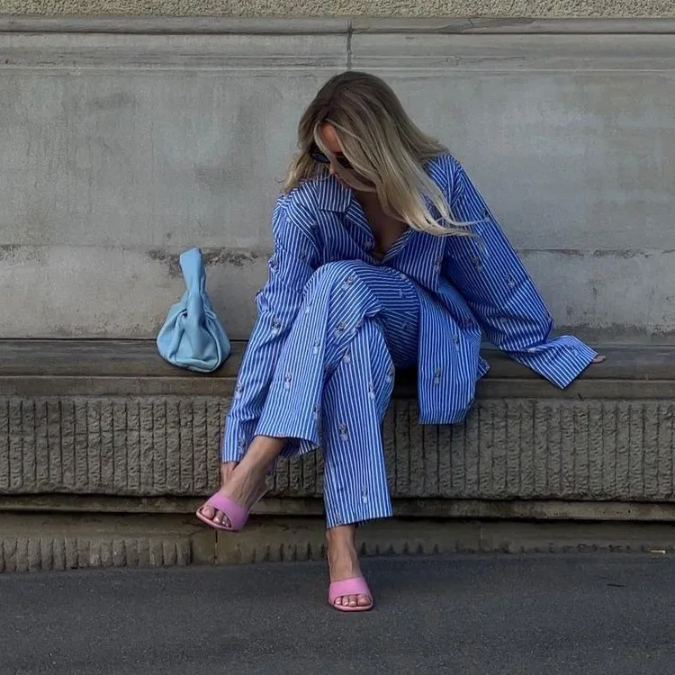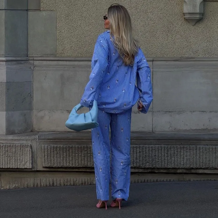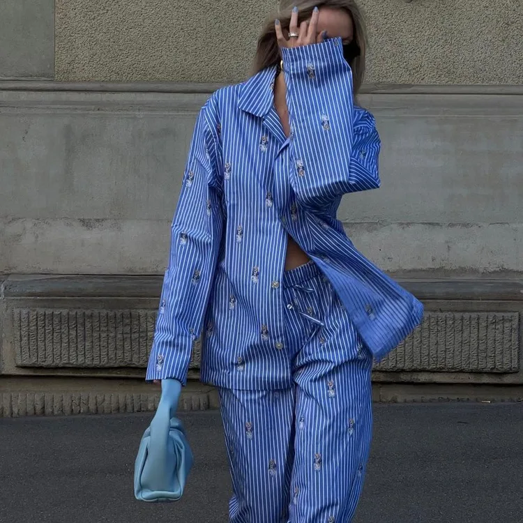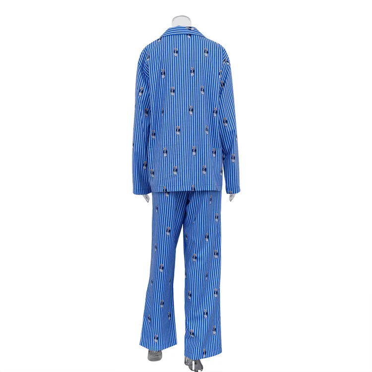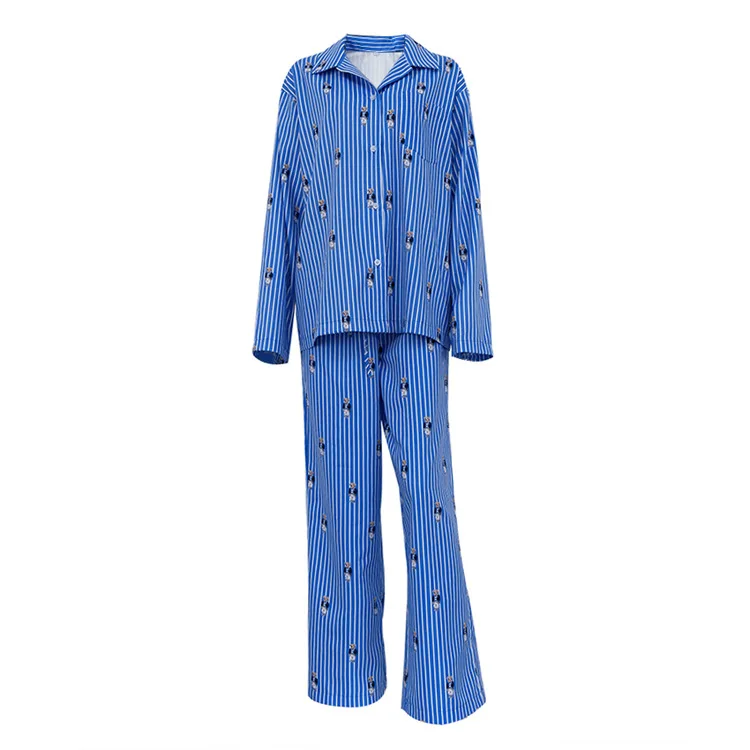 BKQU Striped Pants Set Women Fashion Cartoon Printed Long Sleeve Loose T shirts and High Waist Wide Leg Pant Two Piece Sets 2024
