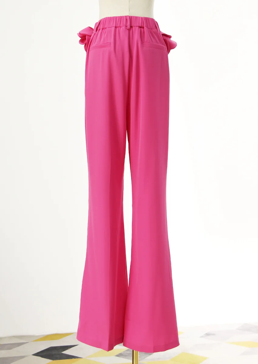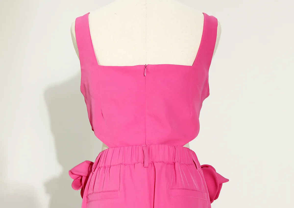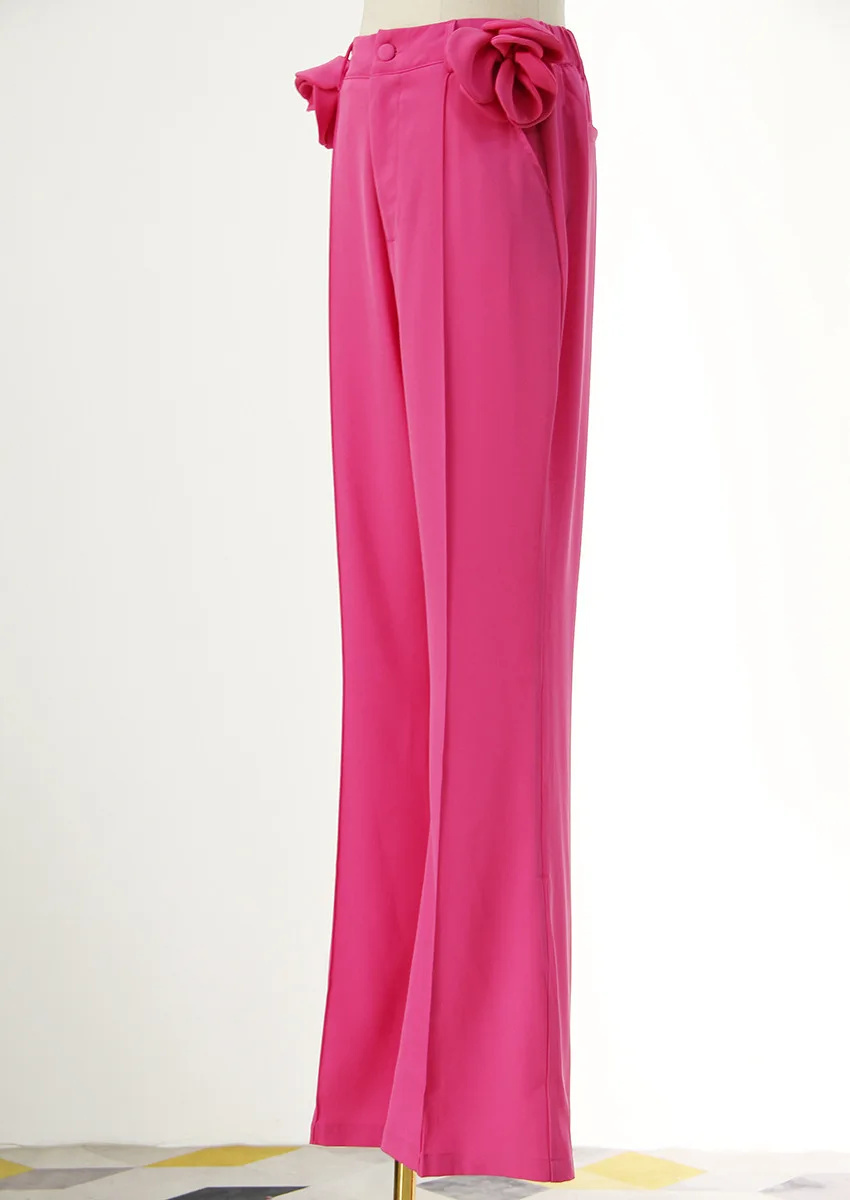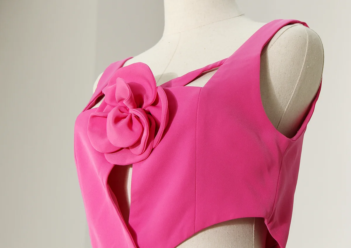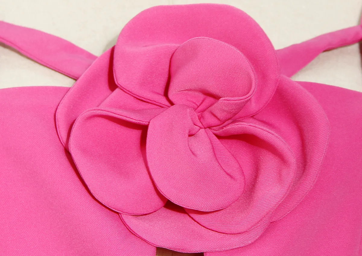 BKQU Trendy Pants Two Pieces Set Women 3D Floral Sexy Hollow Out Vest High Waist Flare Trousers Sets Elegant Lady Party Outfits