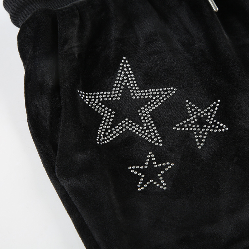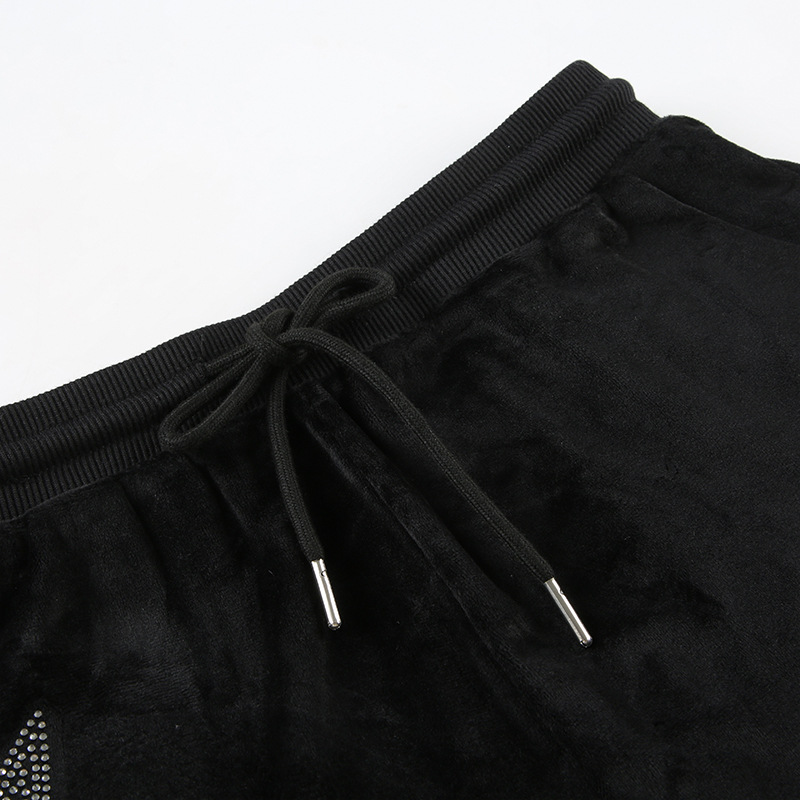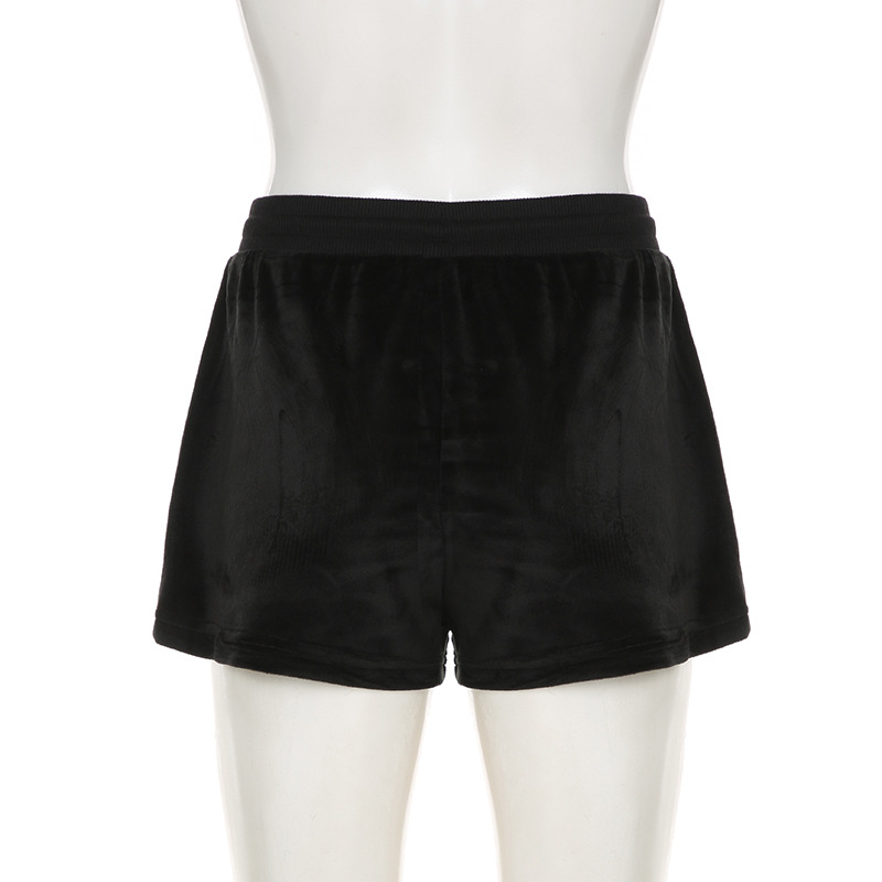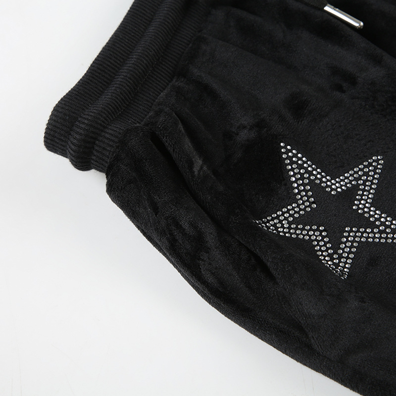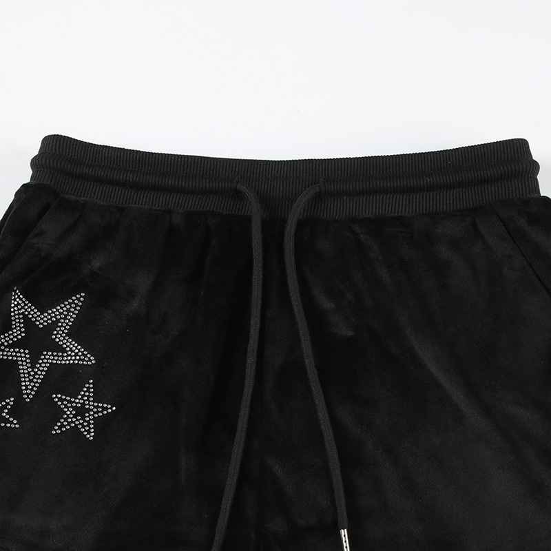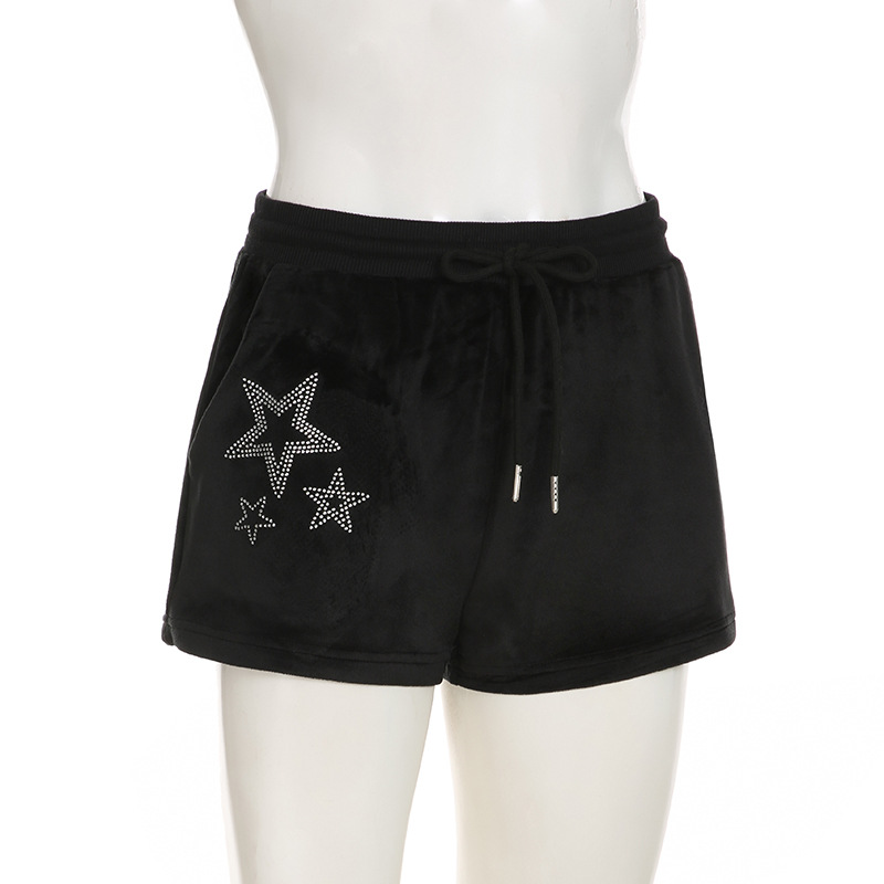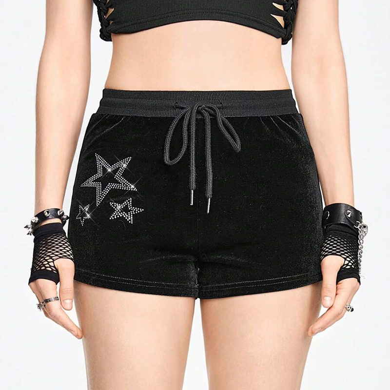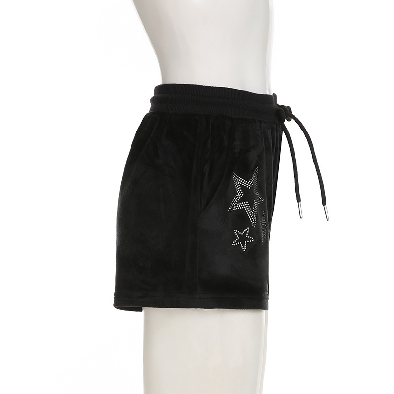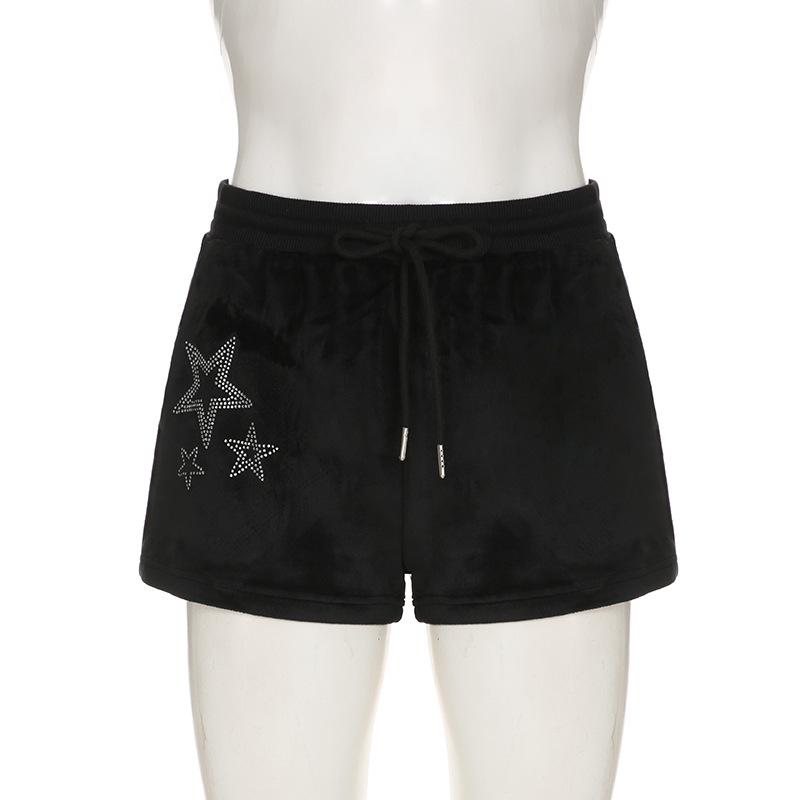BKQU Velvet Y2k Shorts Women Star Rhinestone Black Drawstring Casual Shorts Low Waist Elastic Spicy Girl 2025 Fashion Streetwear