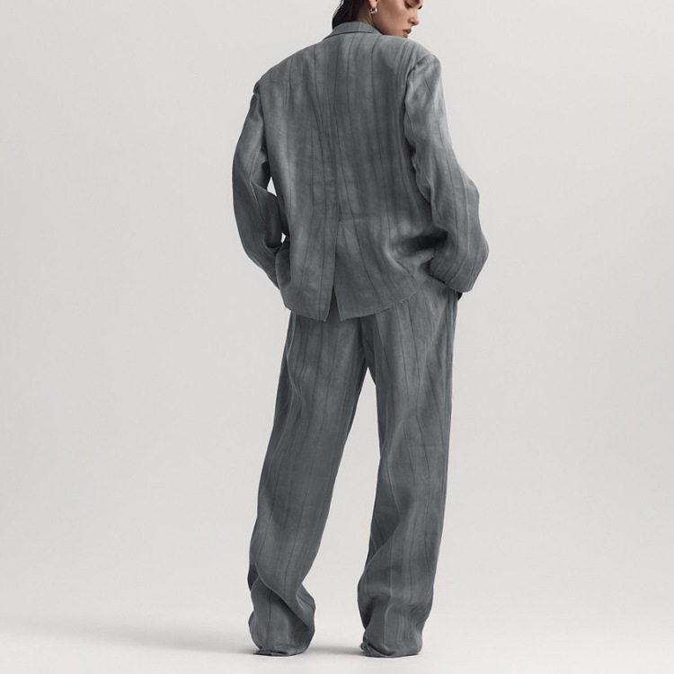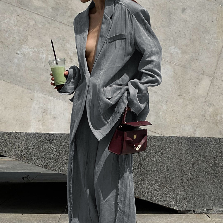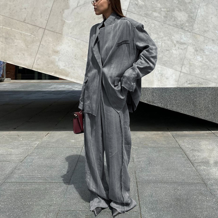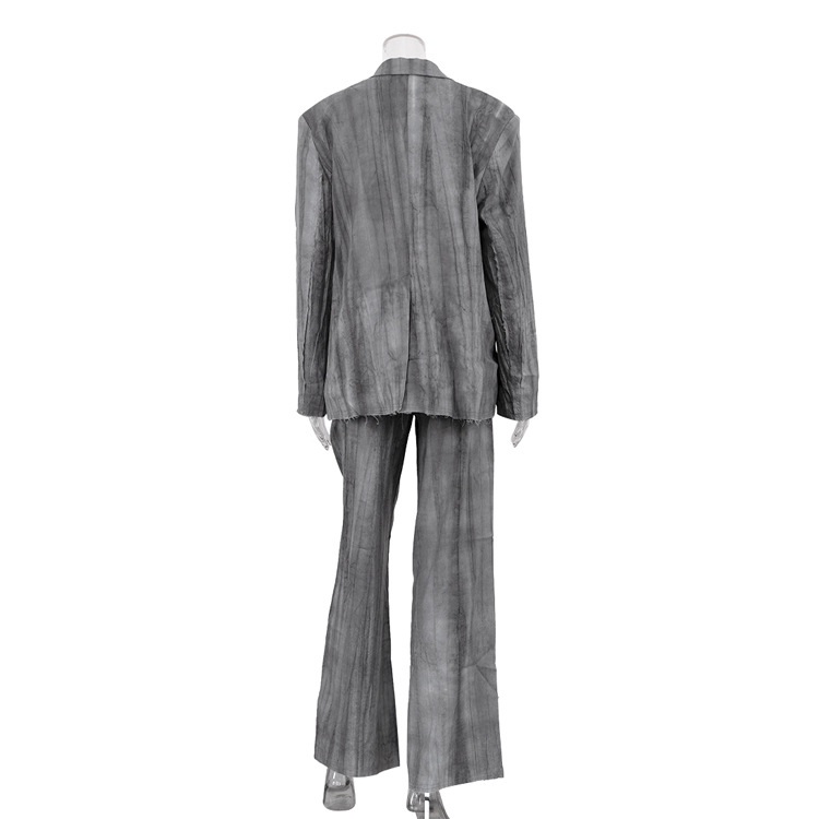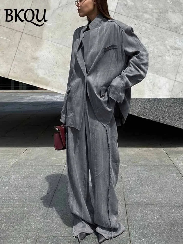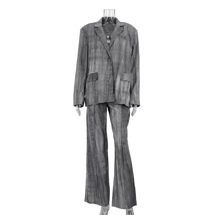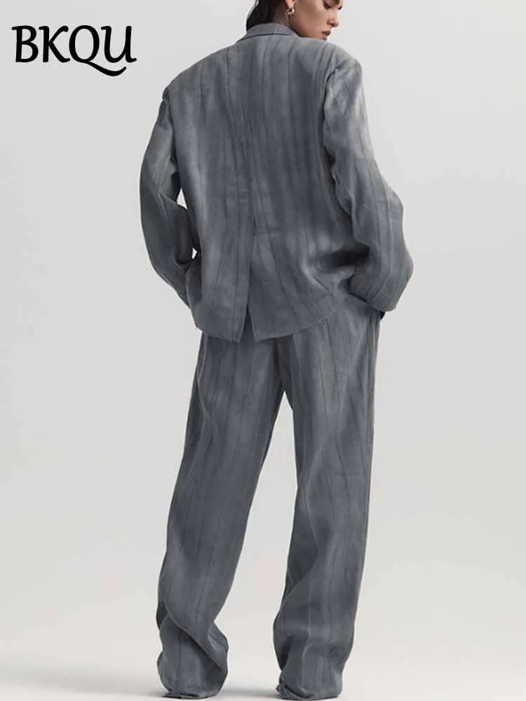 BKQU Vintage Tie-dye 2 Piece Sets Women Fashion Long Sleeve Blazer Coat Loose Wide Leg Pants Matching Set Female Casual Outfits