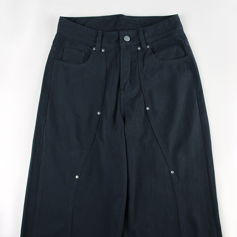 BKQU Wide Leg Cargo Jeans Women Low Waist Hollow Out Y2K Punk Baggy Pockets Straight Denim Pants Vintage Hip Hop Streetwear 2024