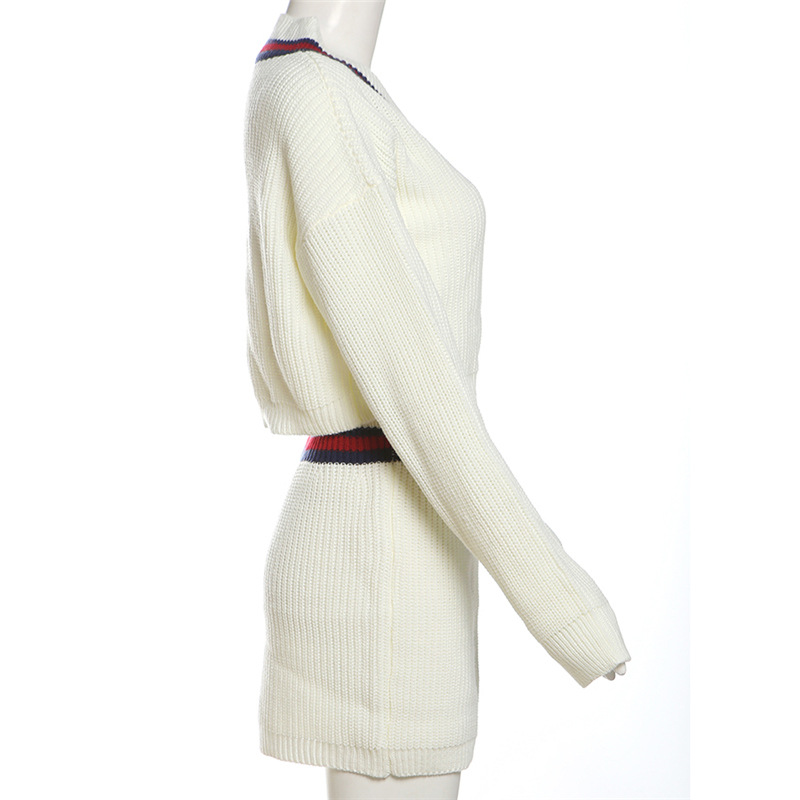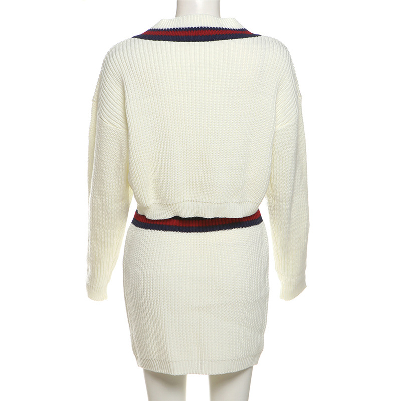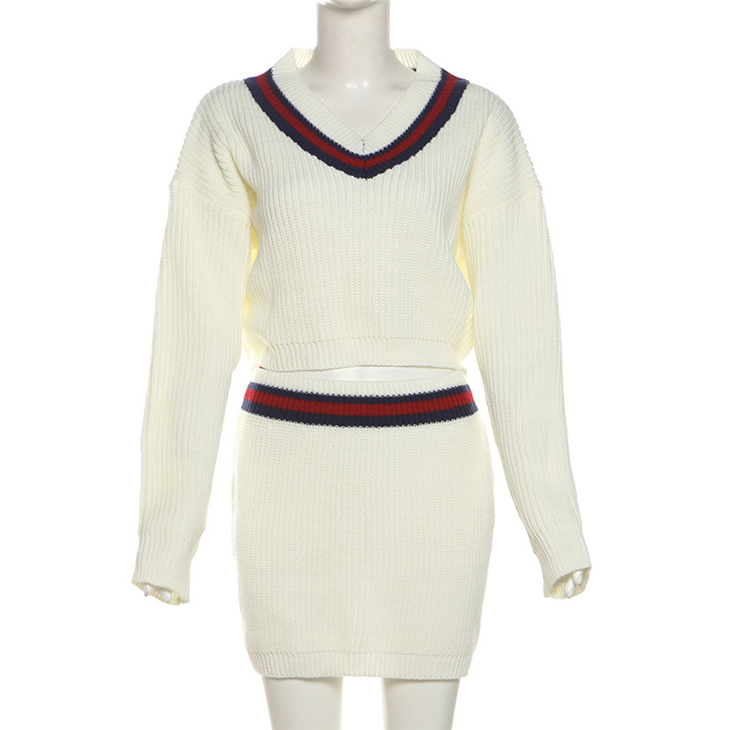 BKQU Women Knitted Two Piece Set Casual Long Sleeve V-Neck Pullover Sweater+Mini Skirts Fashion Contrast Color Warm Outfits 2024