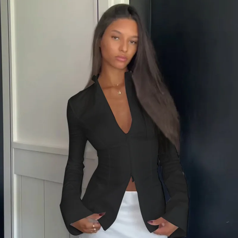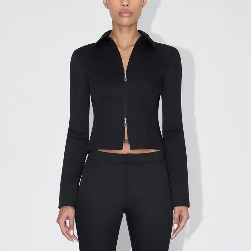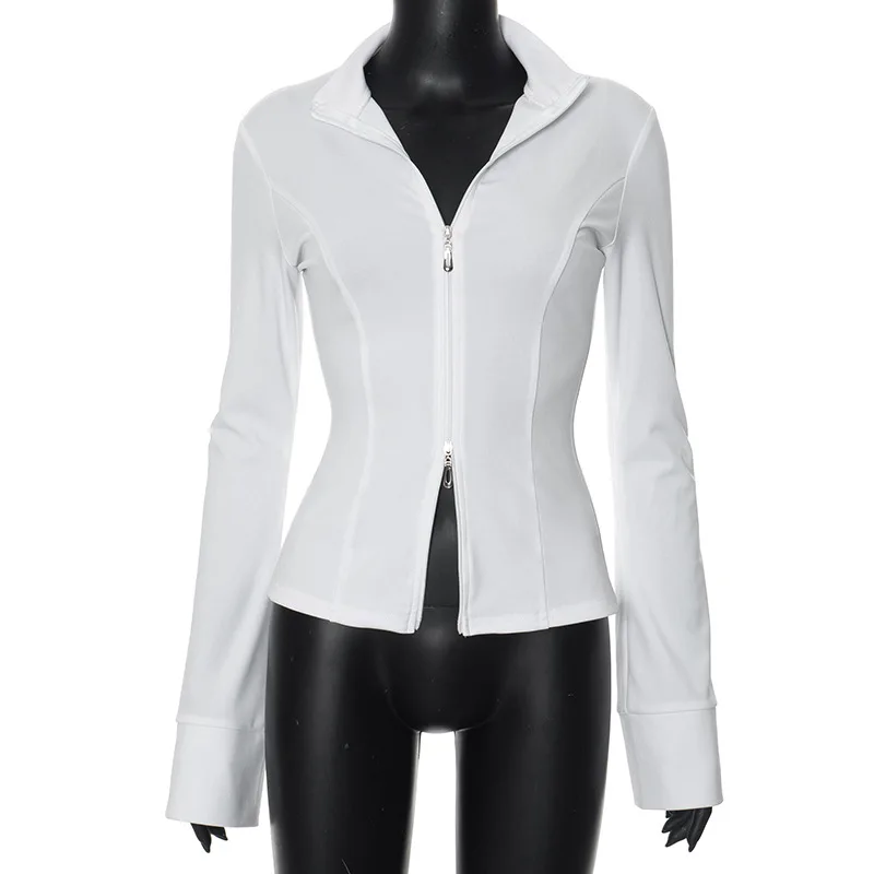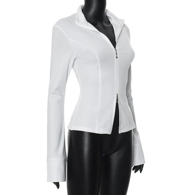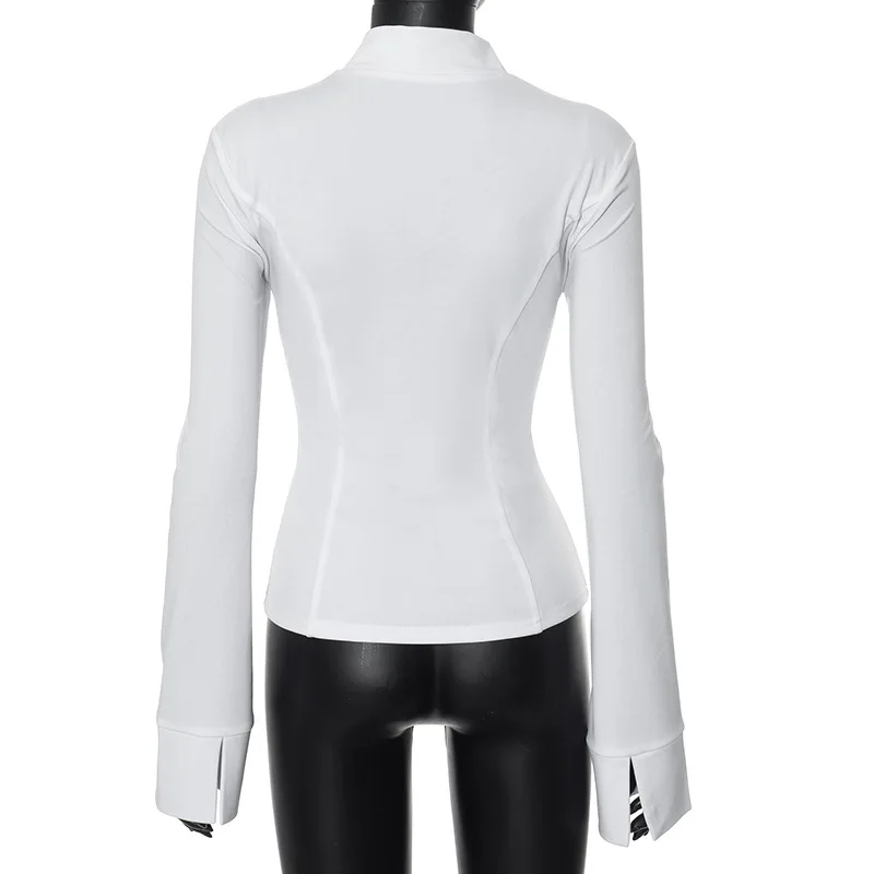BKQU Zipper Long Sleeve Slim Fit T-Shirt Women Autumn Clothes Fashion Sexy Y2K Stand Collar Basic Tops Pullover Streetwear 2024