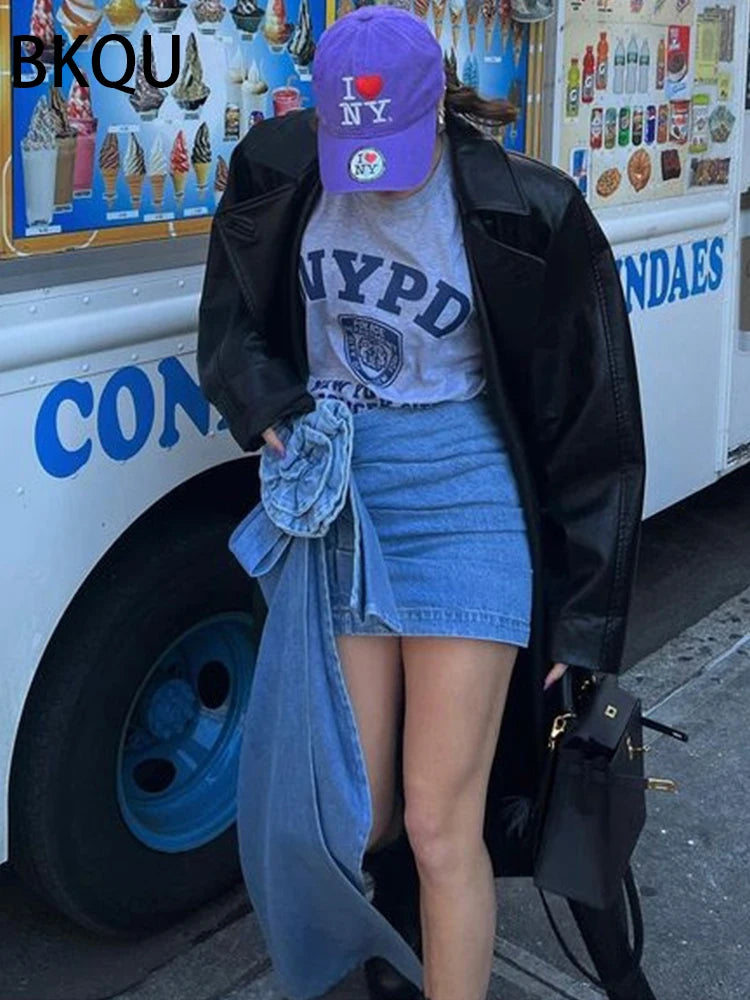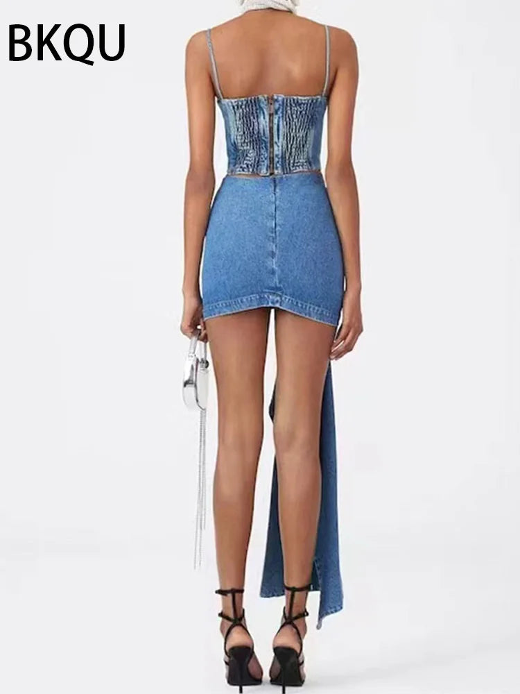 BKUQ 2024 New 3D Three-dimensional Rose Blue Denim Skirts Women Irregular Hem Patchwork Fashion Zipper High Waist Y2k Mini Skirt